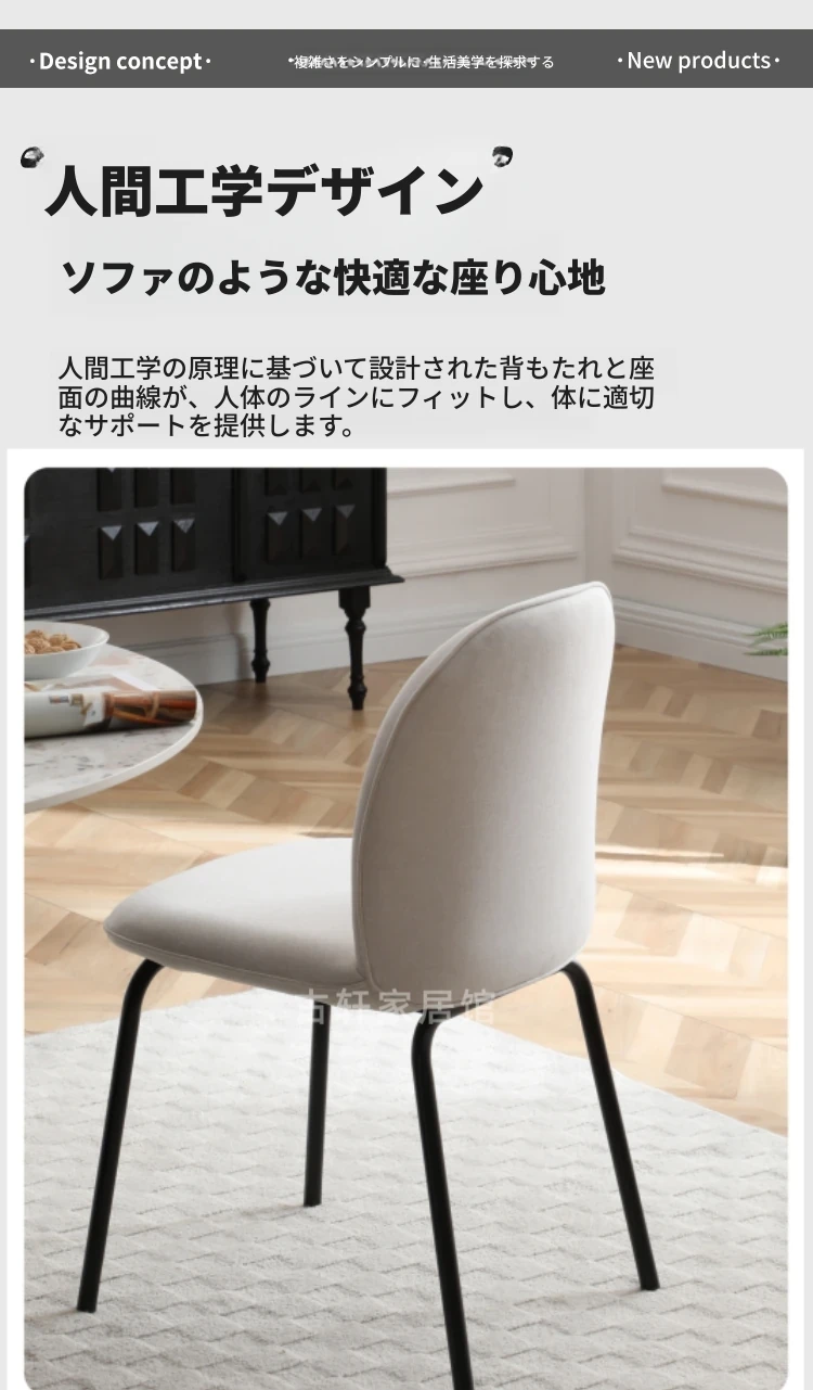 デンマーク製北欧モダン簡約デザインのダイニングチェア!快適な背もたれとソフトな布張りで、あなたの食卓をおしゃれに演出。イタリアンミニマリズムを感じる極上の座り心地をお楽しみください。