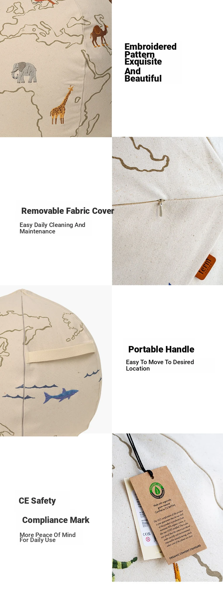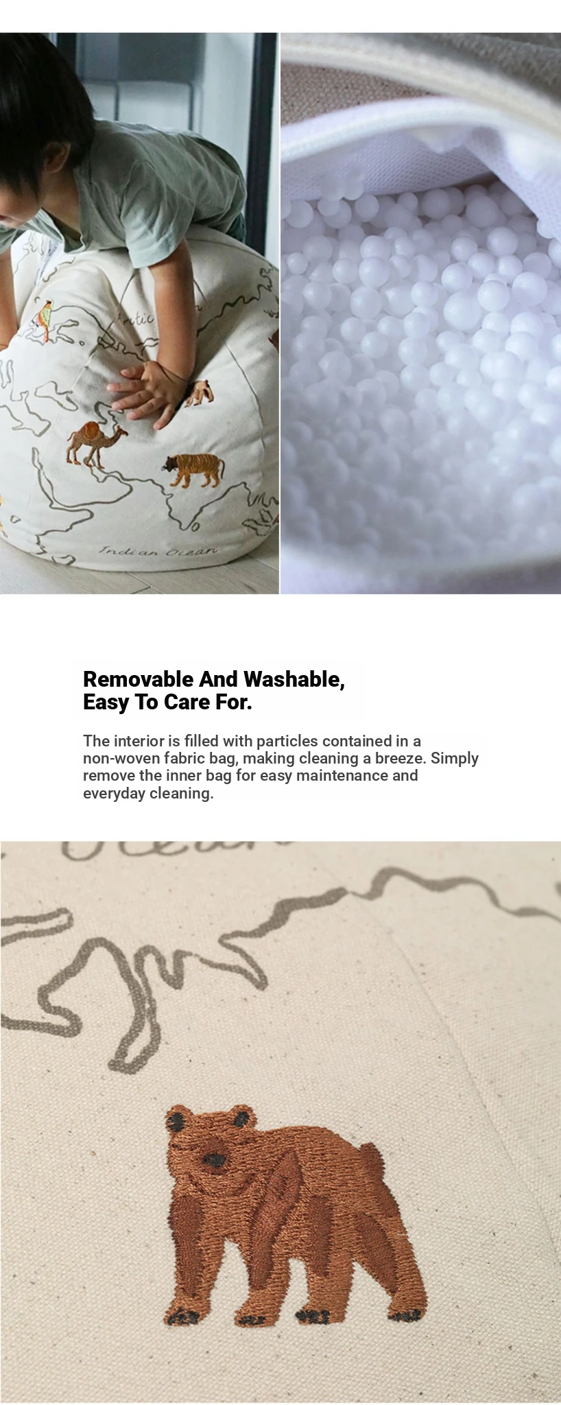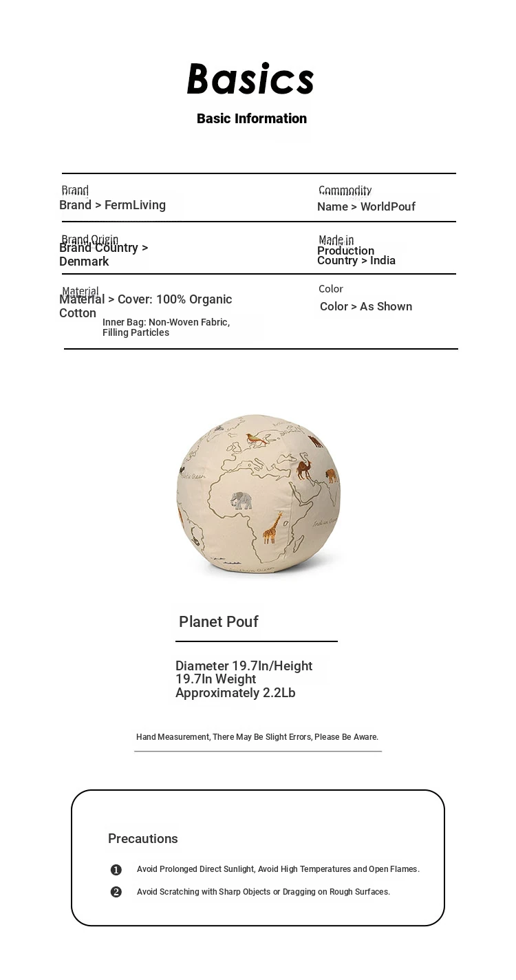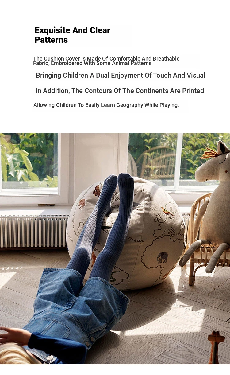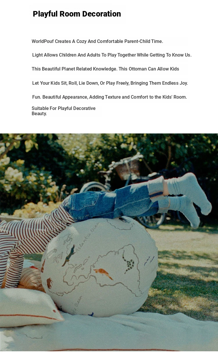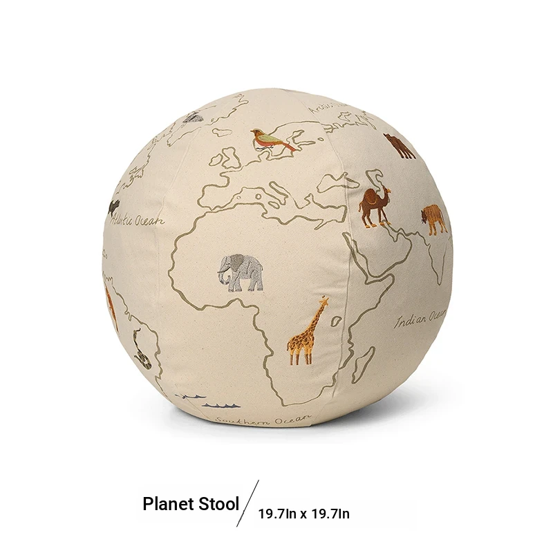 Danish Imported Ferm Living Embroidered Planet Pouf - Children's Lazy Sofa Stool with Removable Cover, Perfect Footrest and Versatile Low Ottoman