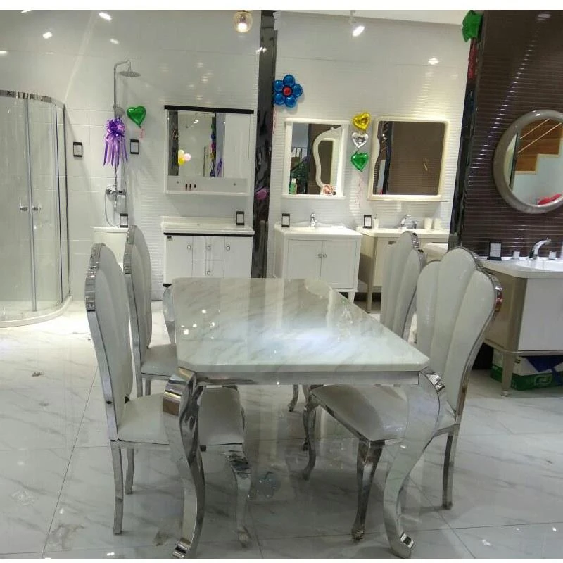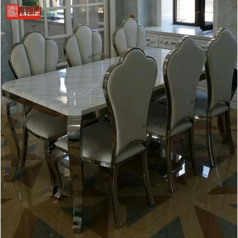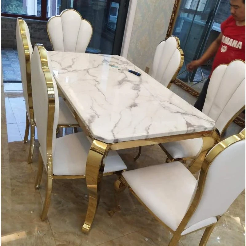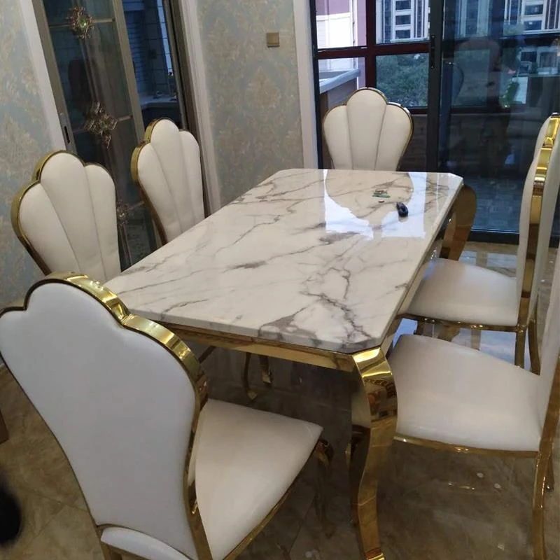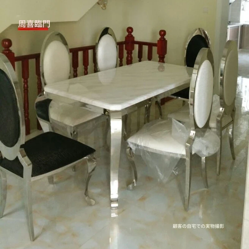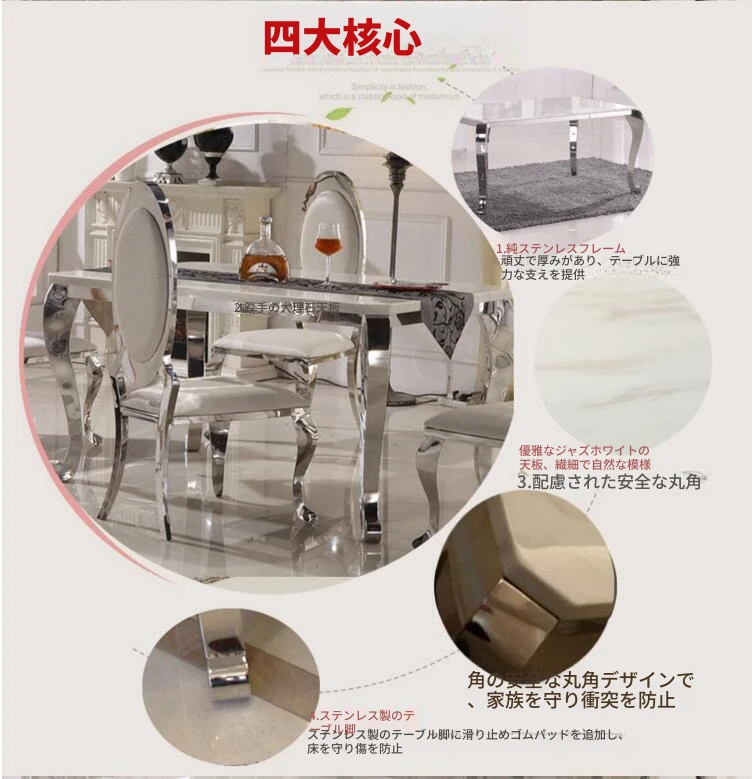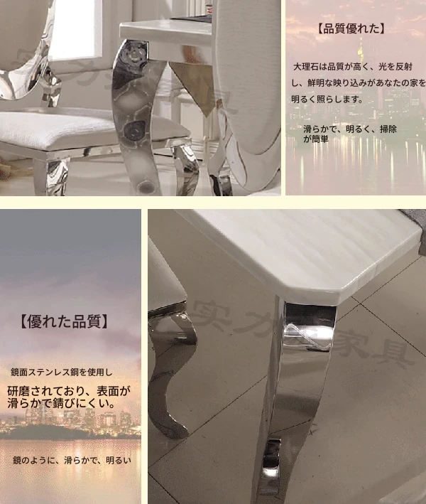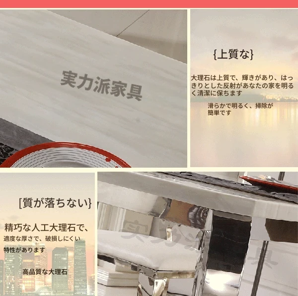 高級大理石天板のアメリカンスタイル長方形ダイニングテーブルセット - 小さなスペースに最適な洗練されたデザインで、家庭の食卓を華やかに彩ります。