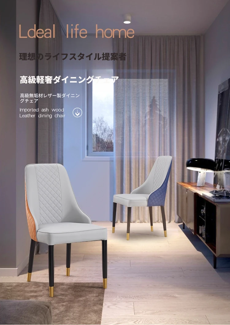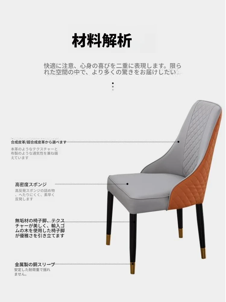 軽やかな高級感漂う背もたれ付きダイニングチェア。シンプルでモダンなデザイン、北欧スタイルの実木とレザーを使用し、家での食事やホテルのようなリラックスタイムに最適です。快適さとスタイルを兼ね備えた一品をぜひ!