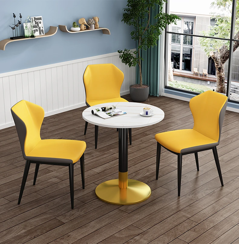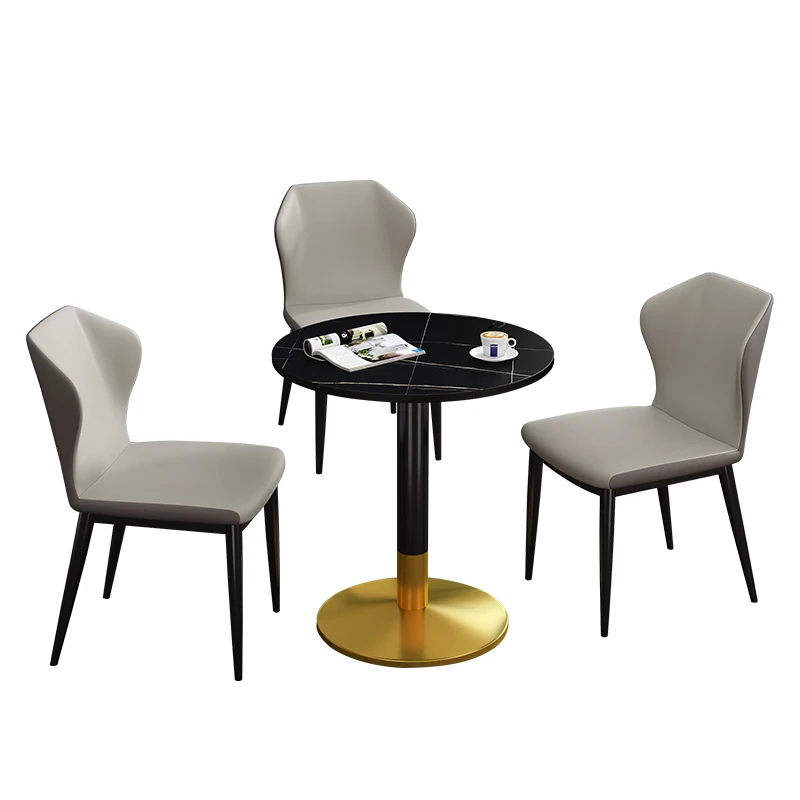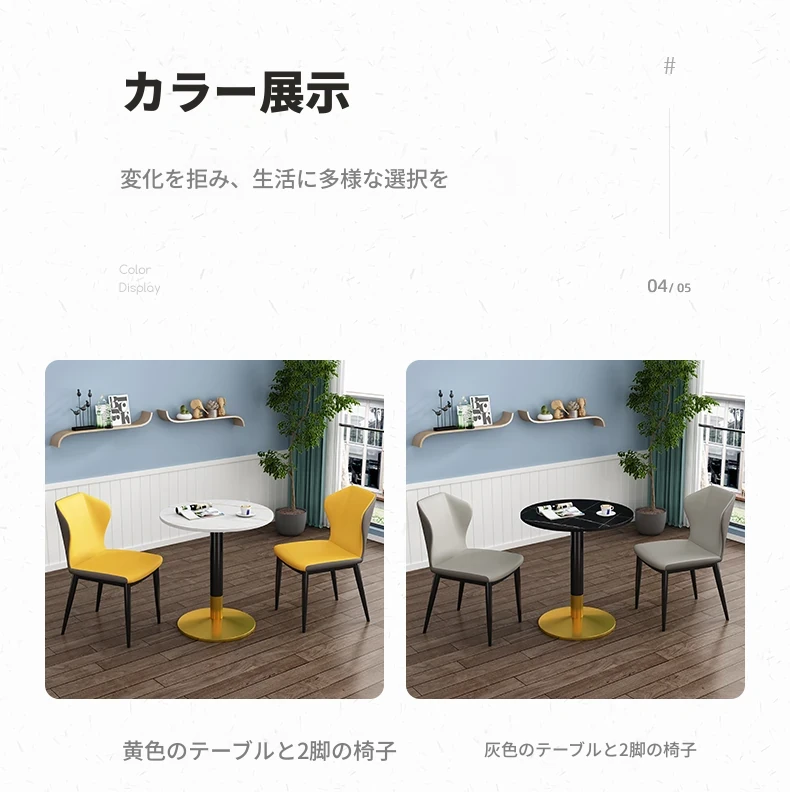 オフィスのリラックス空間に最適!軽やかでシンプルなラウンドテーブルとチェアのセット。お洒落なカフェや商談にぴったりの接待テーブル。洗練されたデザインで、あなたのビジネスシーンを格上げします!