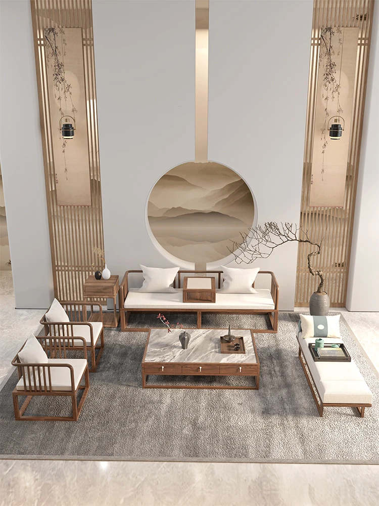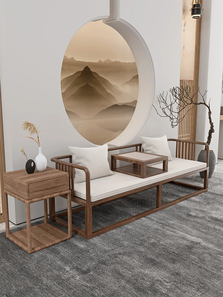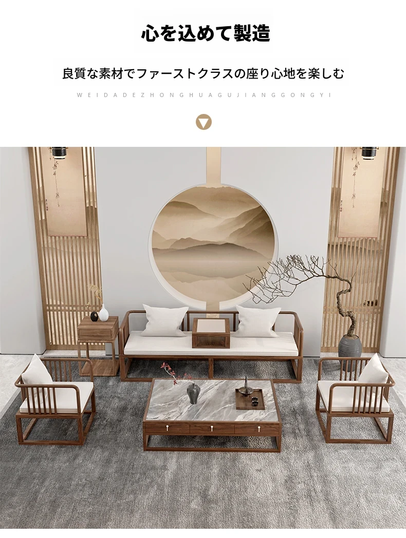新中式実木製ロハンソファ - 売り出し中の豪華なロビー用、ホテルや美容院に最適な接待用椅子。高級感溢れるデザインで、心地よいひとときを提供します。