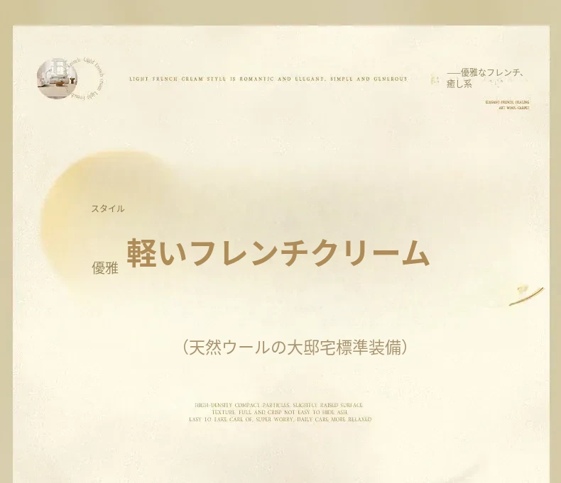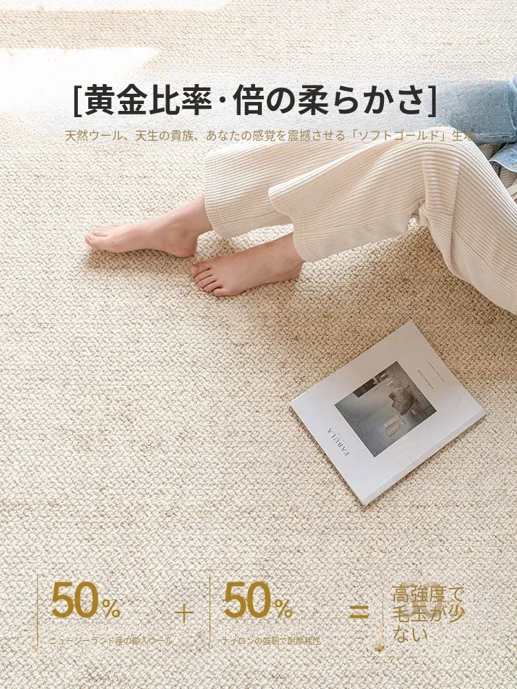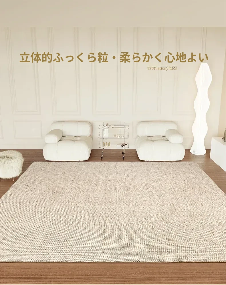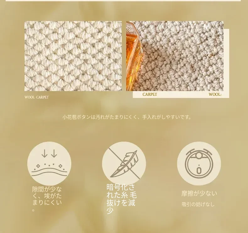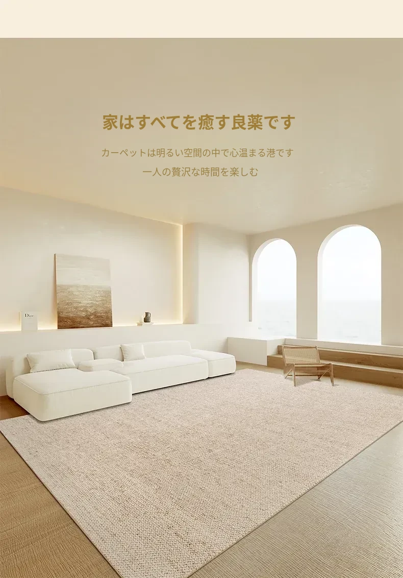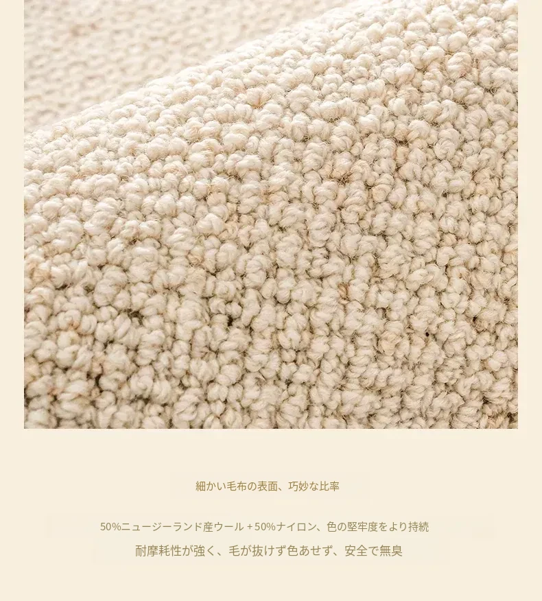 視覚と味覚を楽しむ!ニュージーランド産ウールカーペット - 高級感あふれるフランス風クリームスタイルで、汚れに強く、和の美しさを兼ね備えたリビングの必需品。