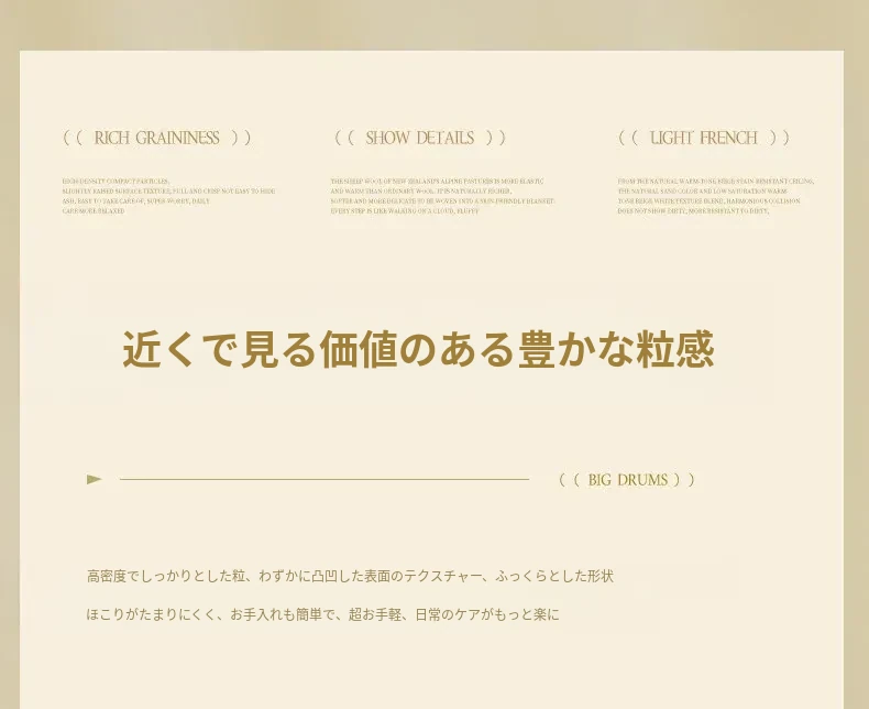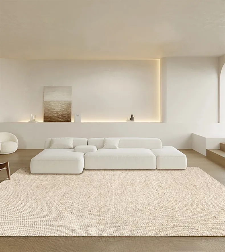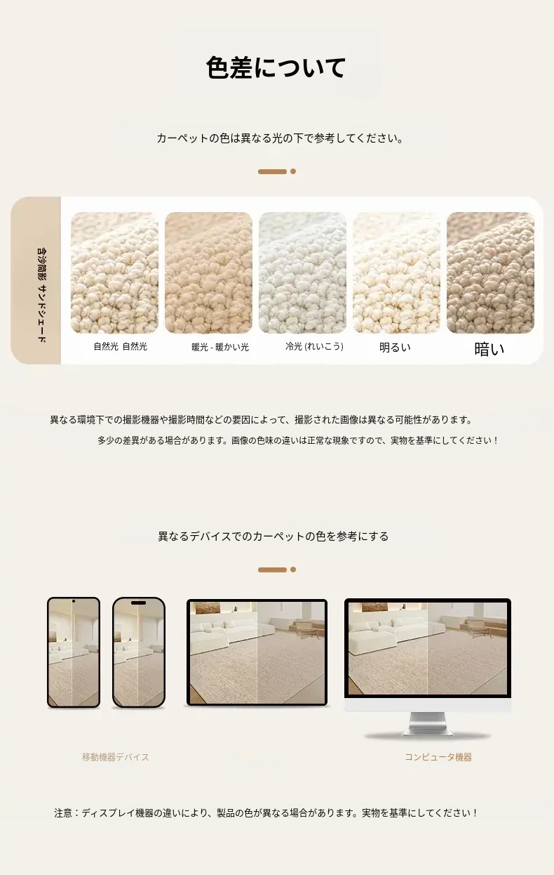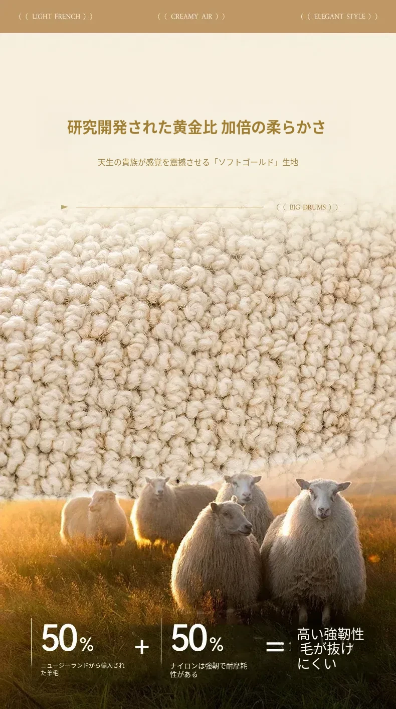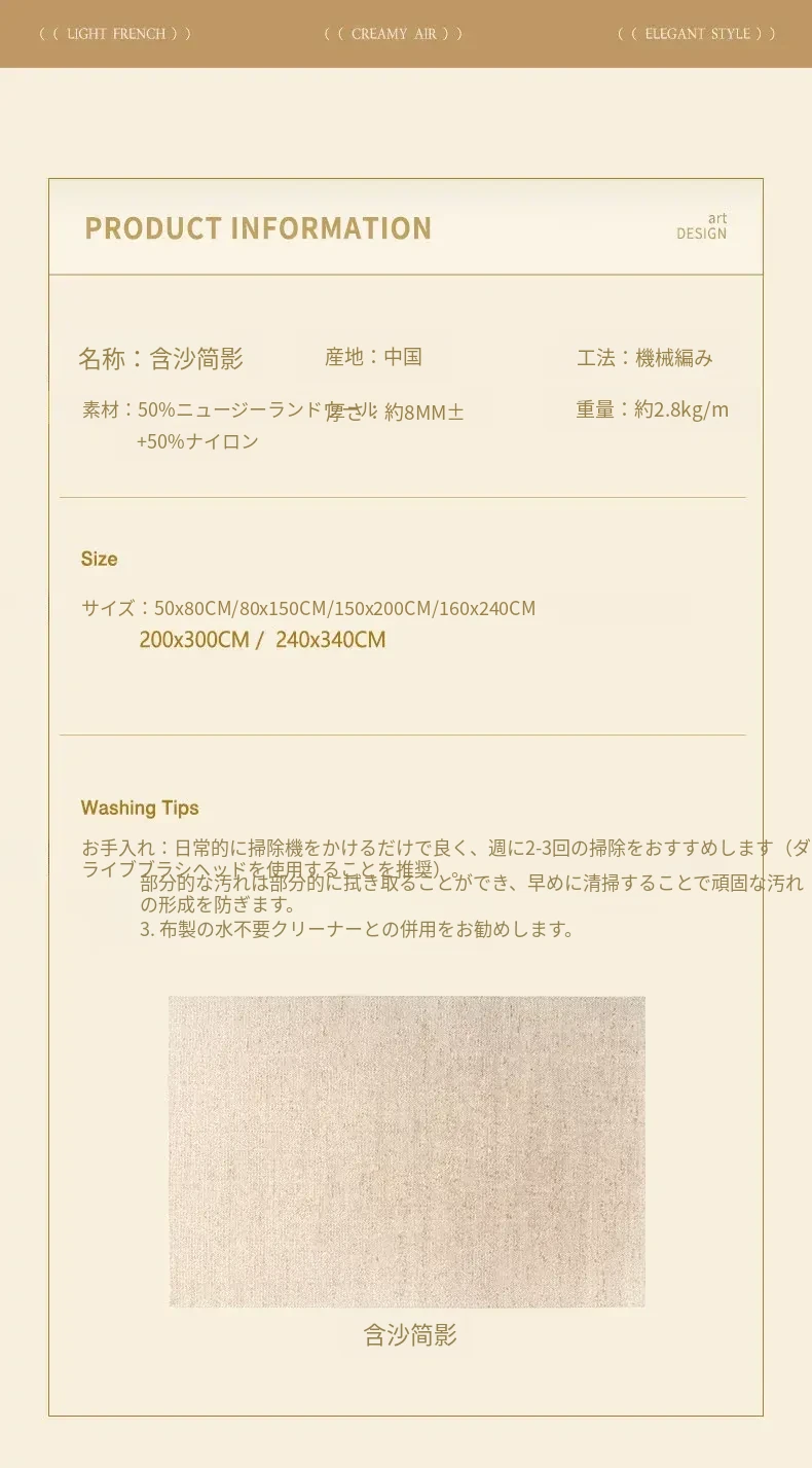 視覚と味覚を楽しむ!ニュージーランド産ウールカーペット - 高級感あふれるフランス風クリームスタイルで、汚れに強く、和の美しさを兼ね備えたリビングの必需品。