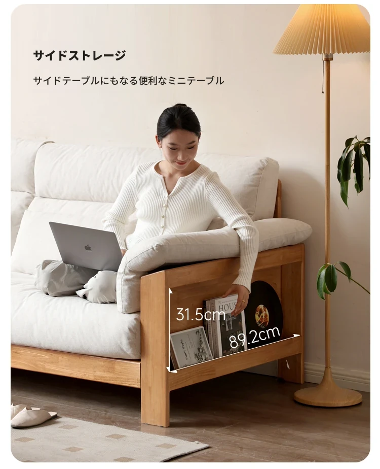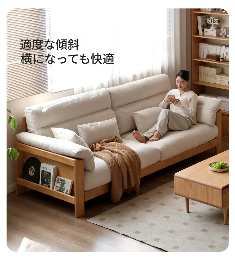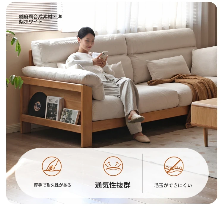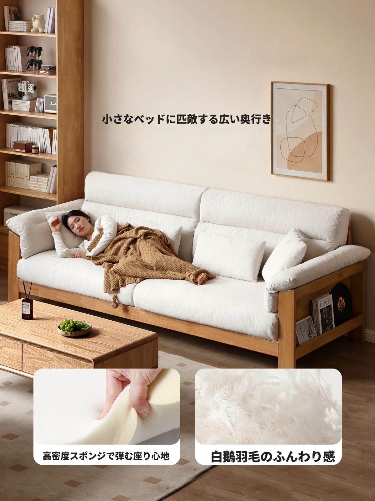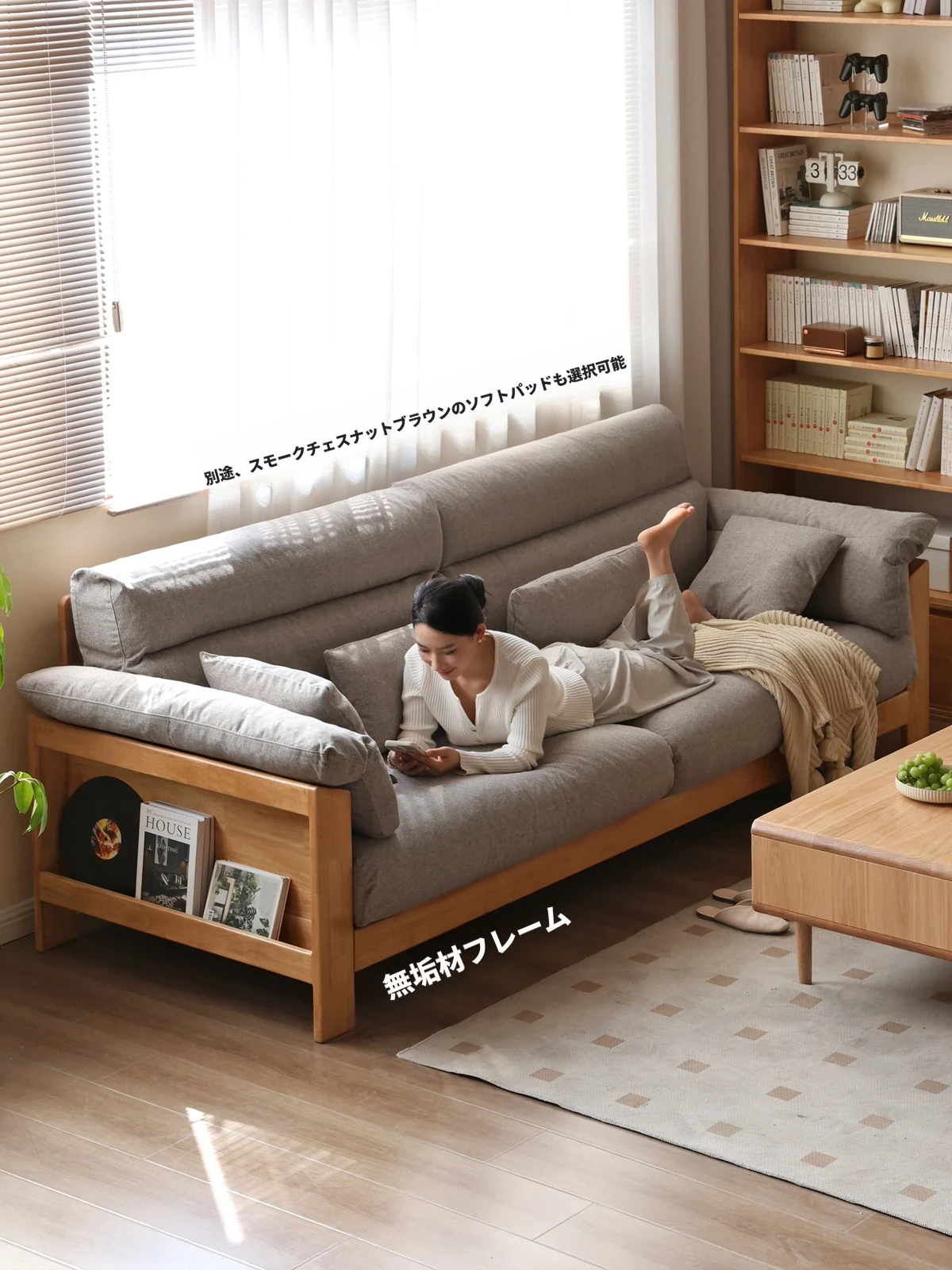 【注目商品】源氏木语x维莎無垢材ソファー 小型リビングに最適!天然木の直線美 新中式デザインの3人掛けソファー