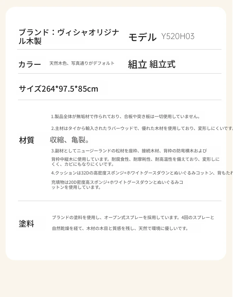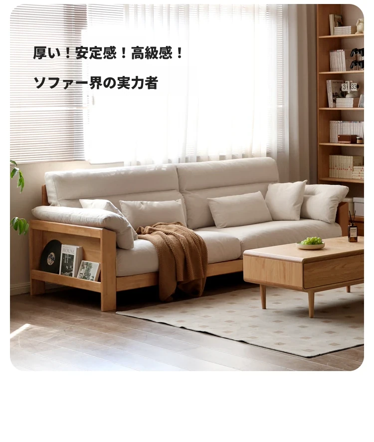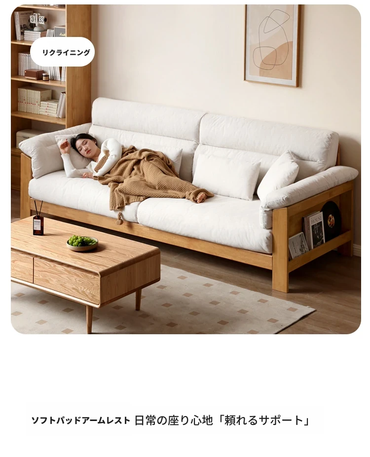 (ナチュラルカラー)2.64m大型三人掛けソファ【ペアホワイト】(2640*975*850MM)