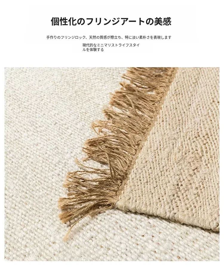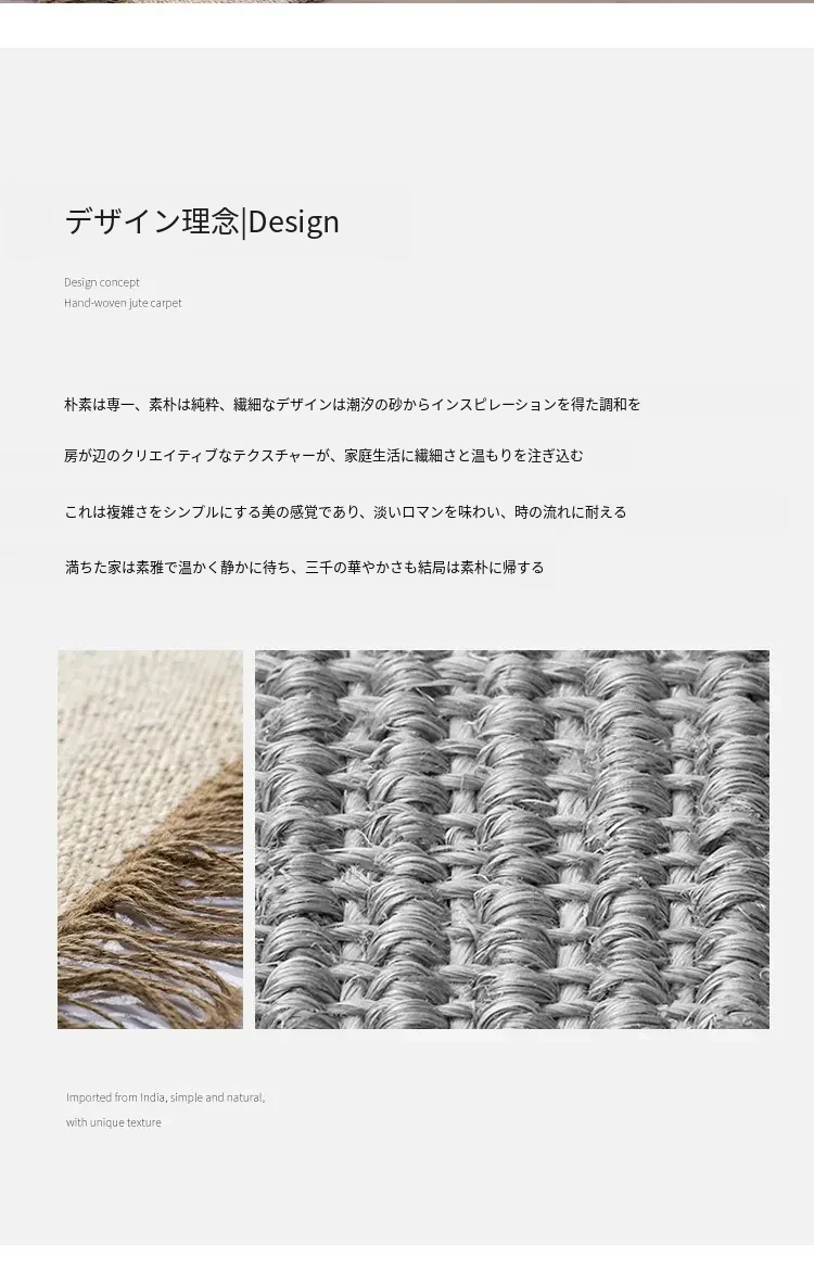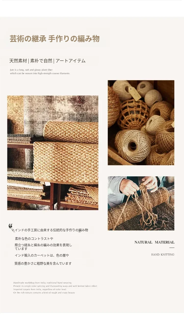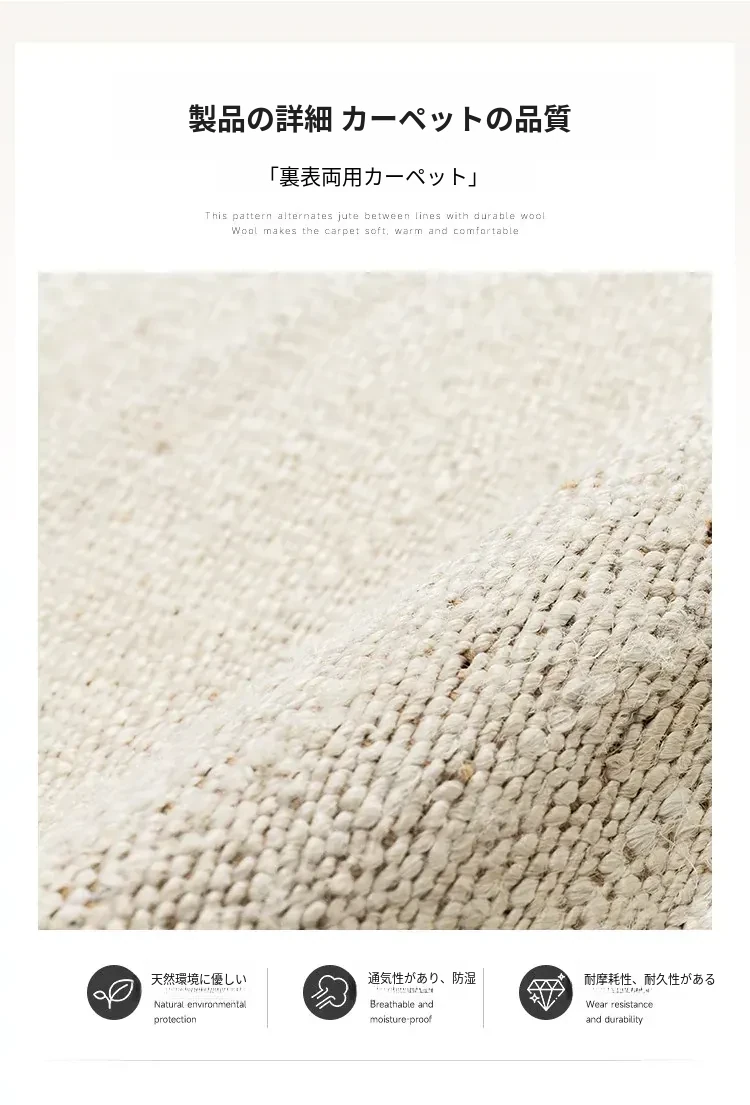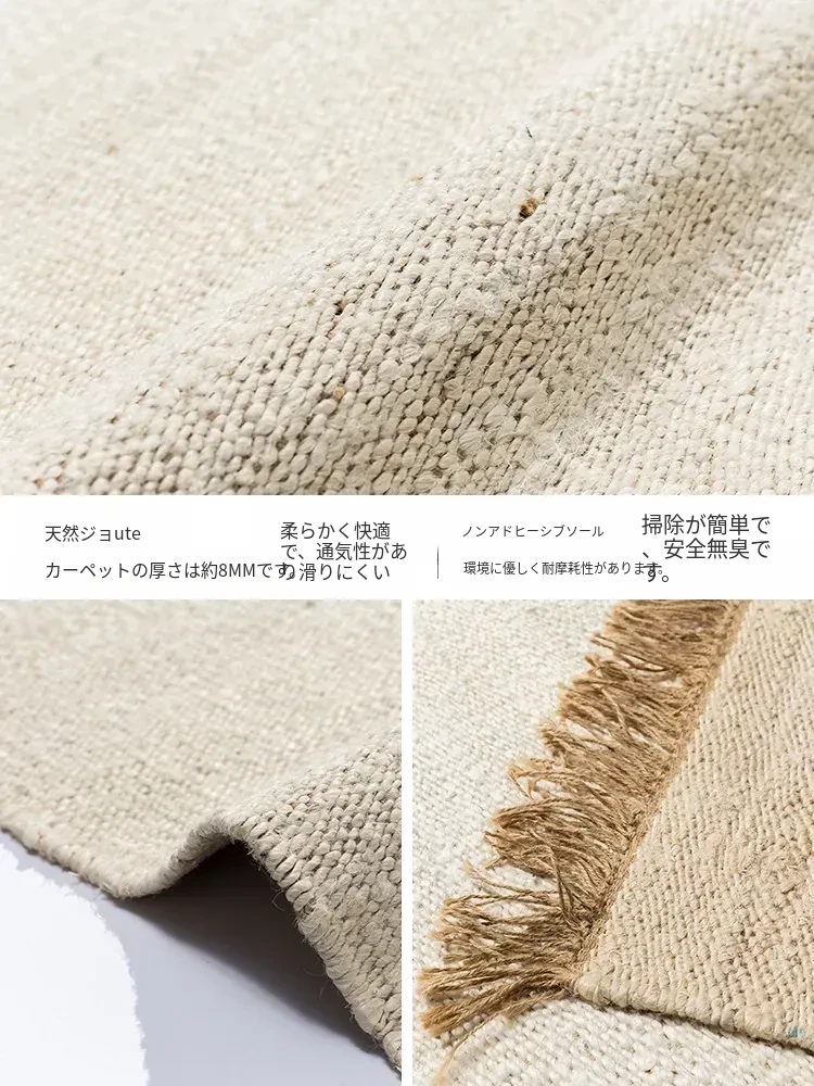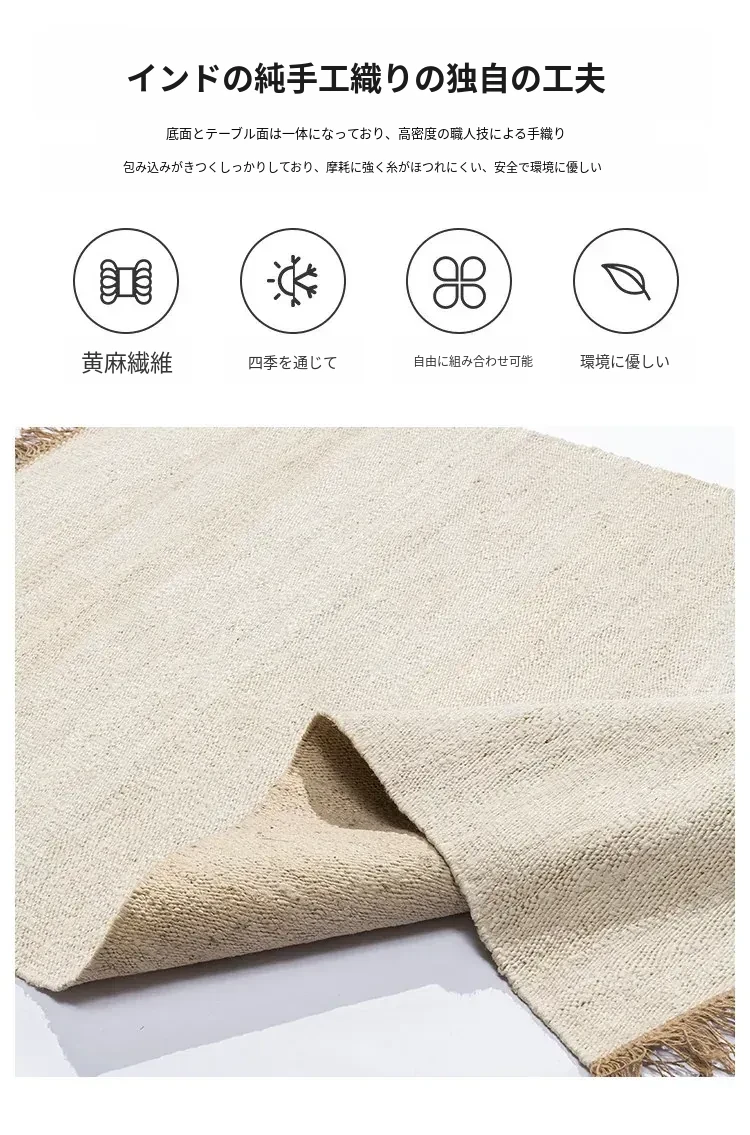 視覚的な美味しさを引き立てる、ノーグルー高級感溢れるホワイトカーペット。和風デザインの輸入手作りジュート製コーヒーテーブルマット。家のリビングにぴったり!