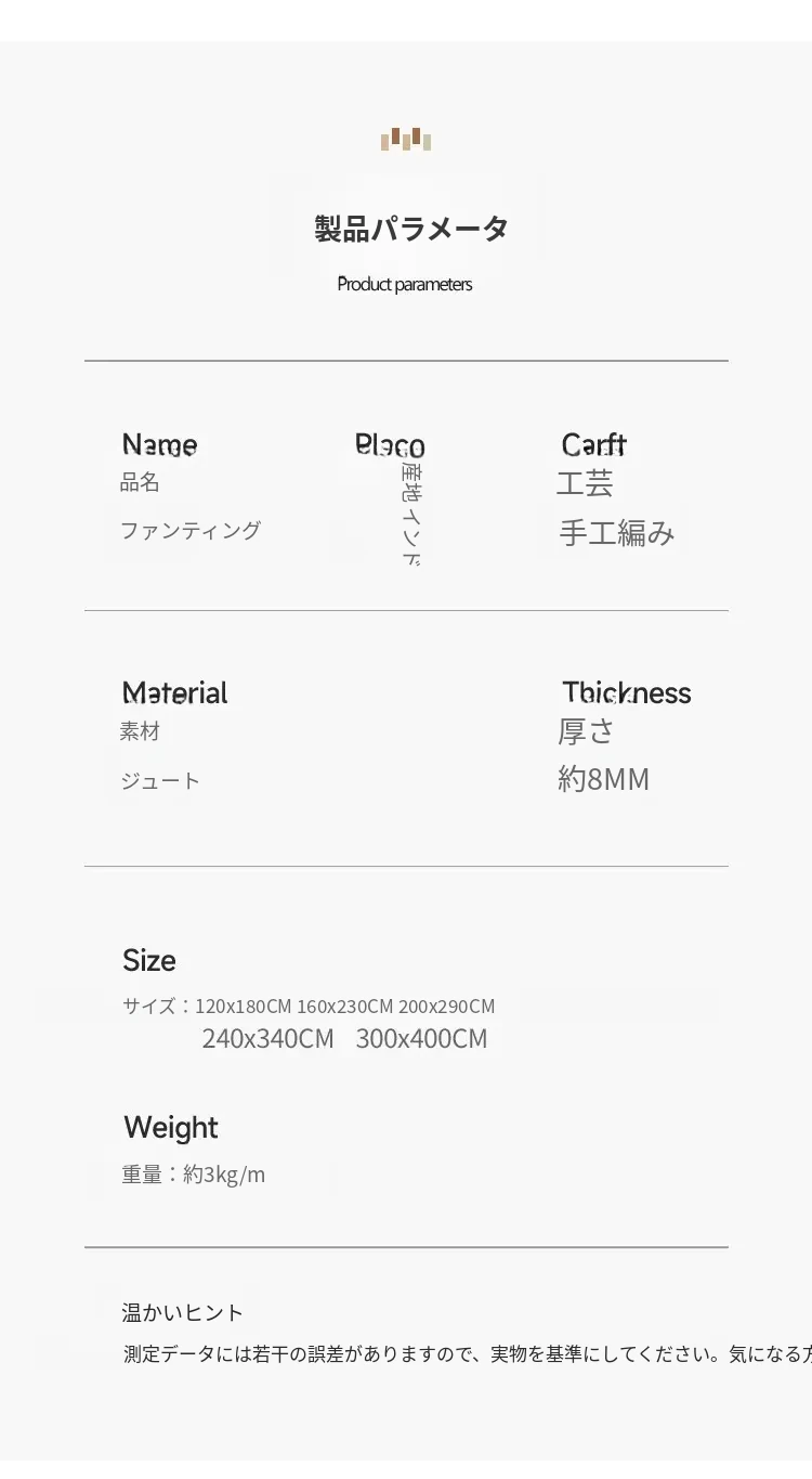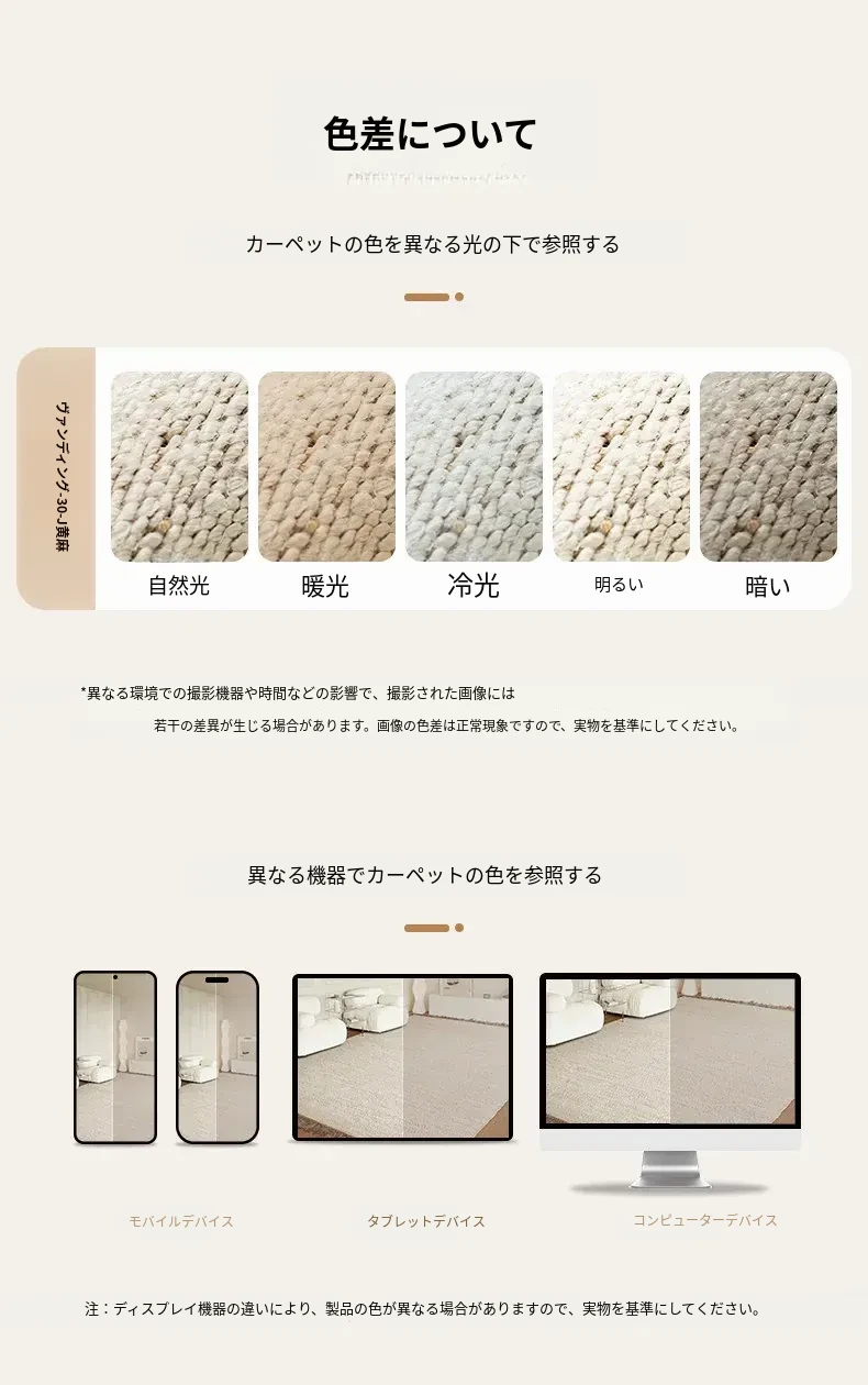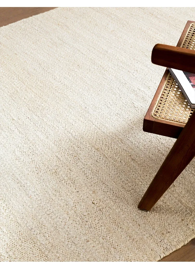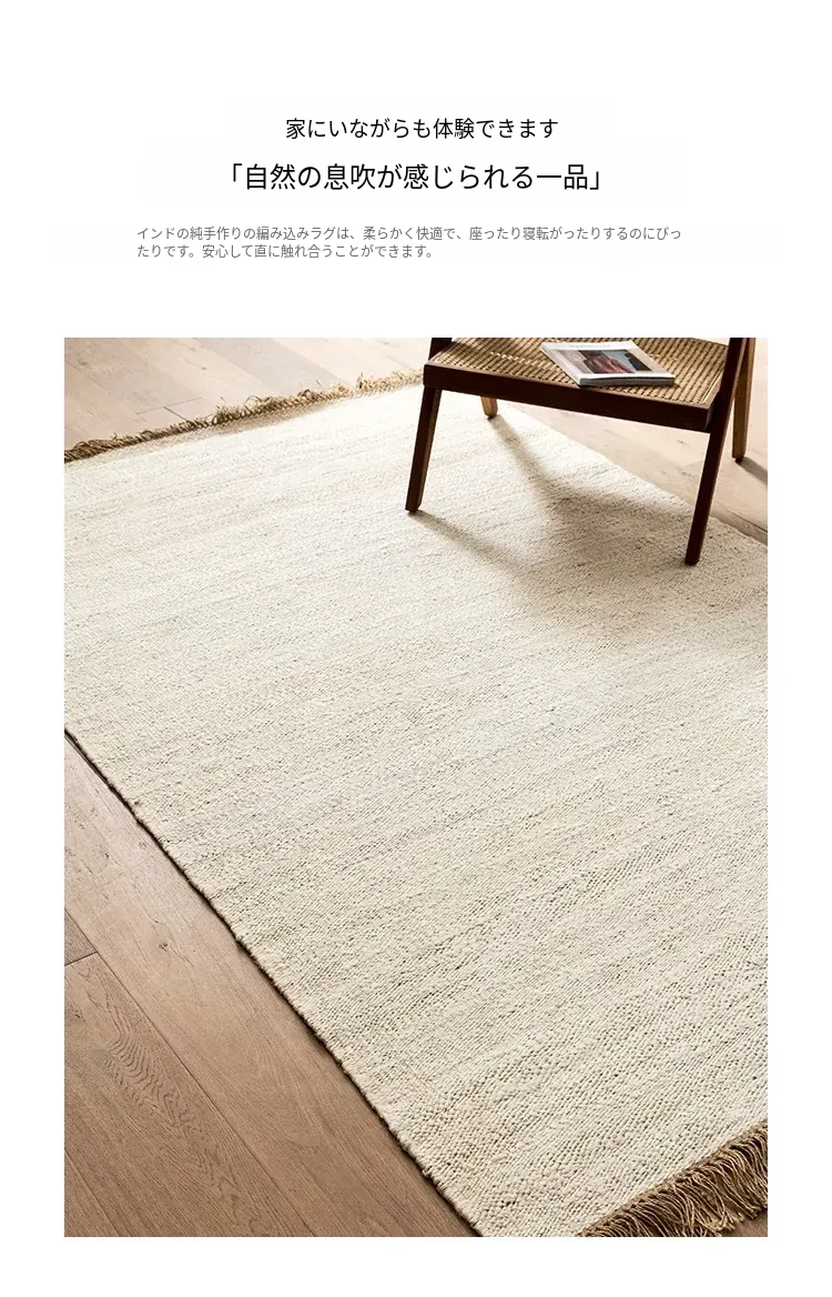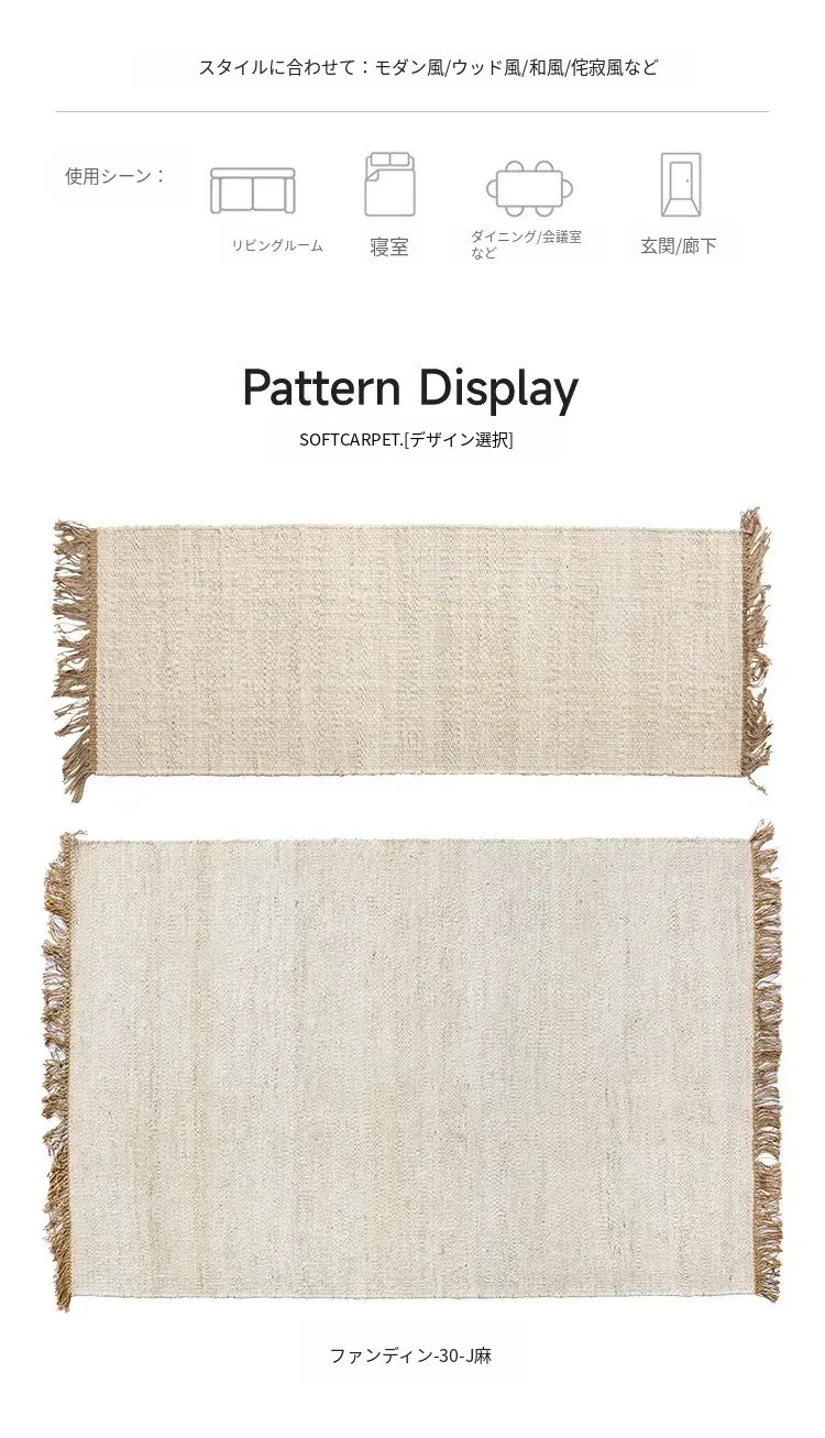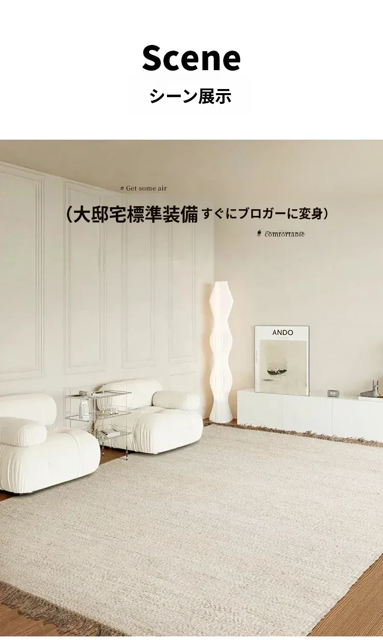 視覚的な美味しさを引き立てる、ノーグルー高級感溢れるホワイトカーペット。和風デザインの輸入手作りジュート製コーヒーテーブルマット。家のリビングにぴったり!