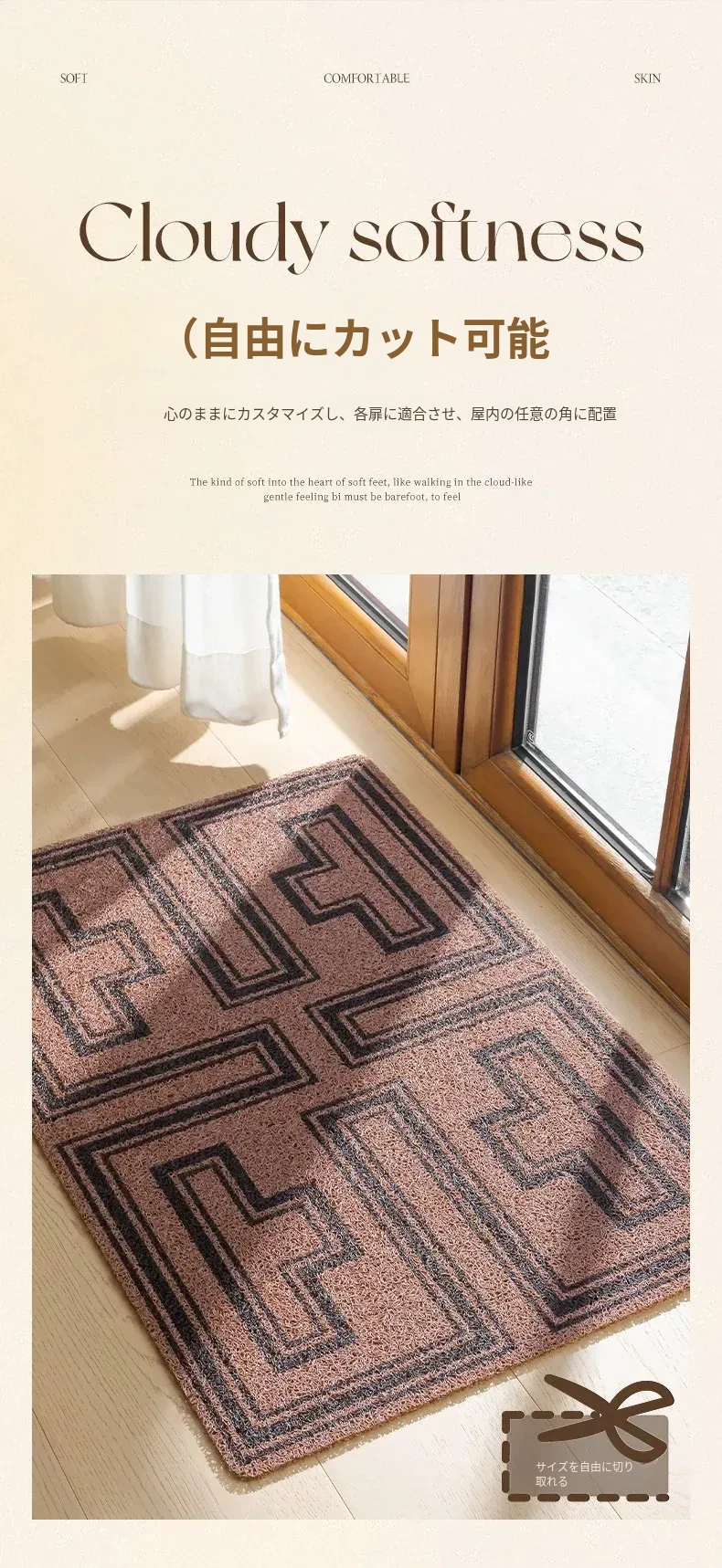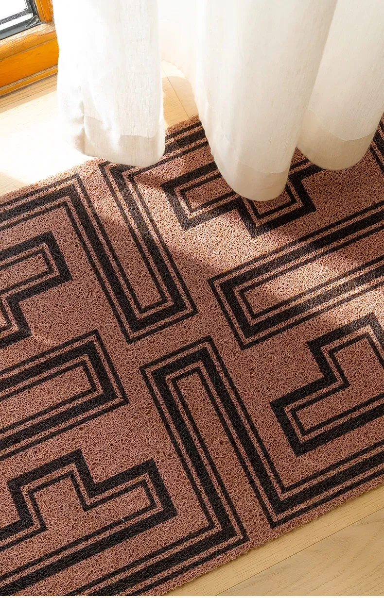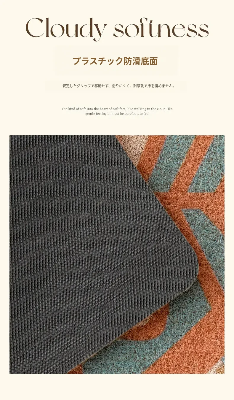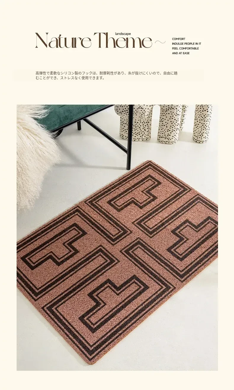 高級感あふれるアメリカンレトロスタイルの玄関マット!洗濯可能でお手入れ簡単、自由にカットできるから、あなたの家にぴったりフィット。耐汚性に優れたシルクループデザインで、毎日快適にお迎えします。