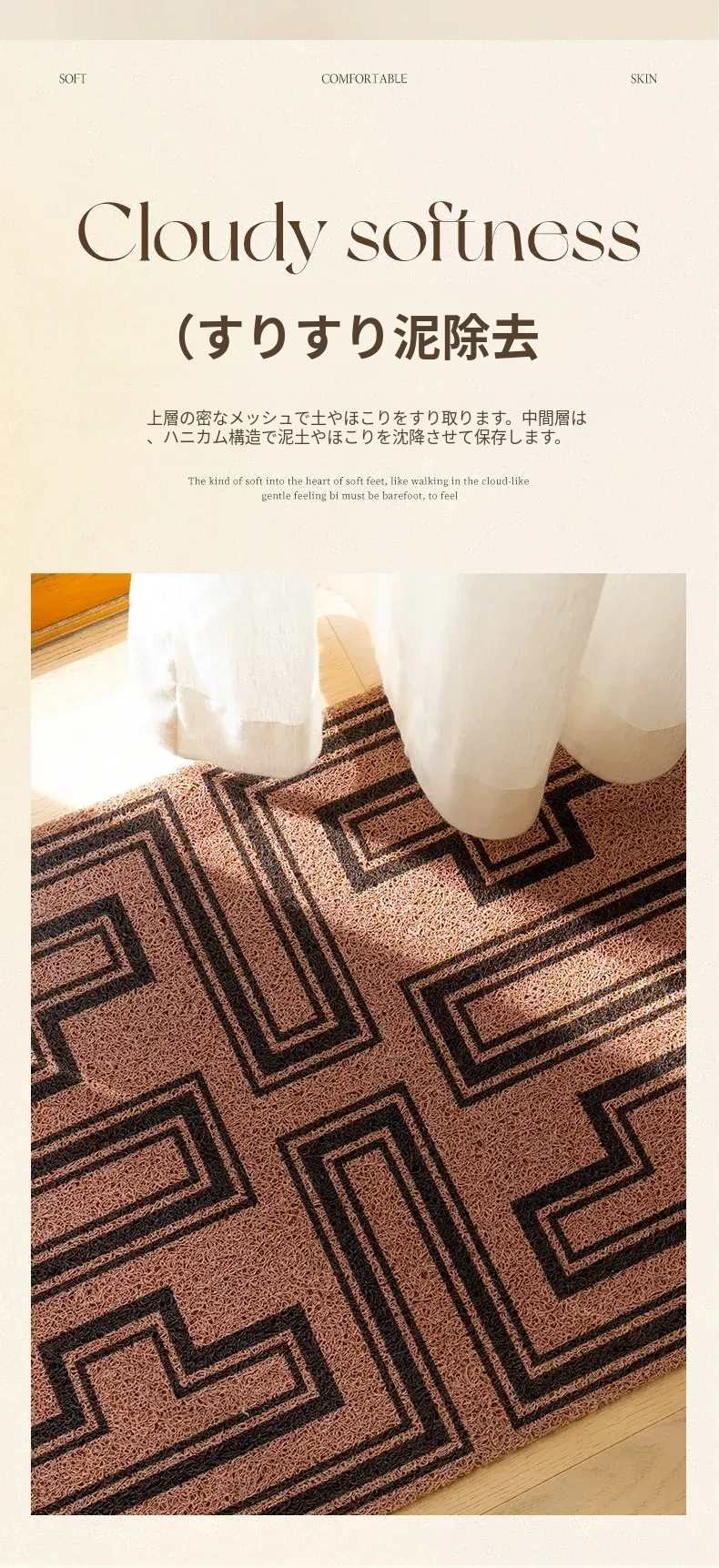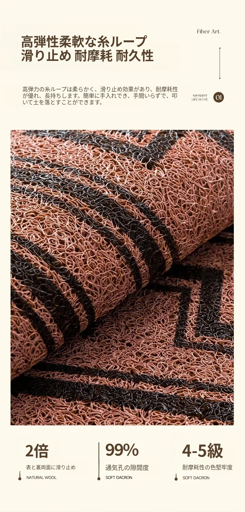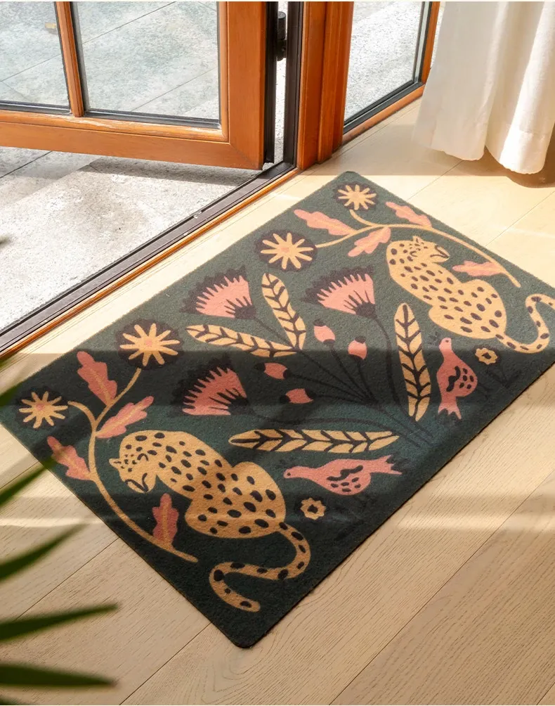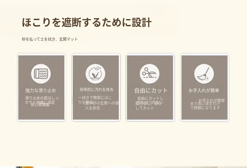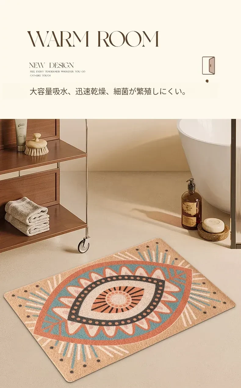 高級感あふれるアメリカンレトロスタイルの玄関マット!洗濯可能でお手入れ簡単、自由にカットできるから、あなたの家にぴったりフィット。耐汚性に優れたシルクループデザインで、毎日快適にお迎えします。