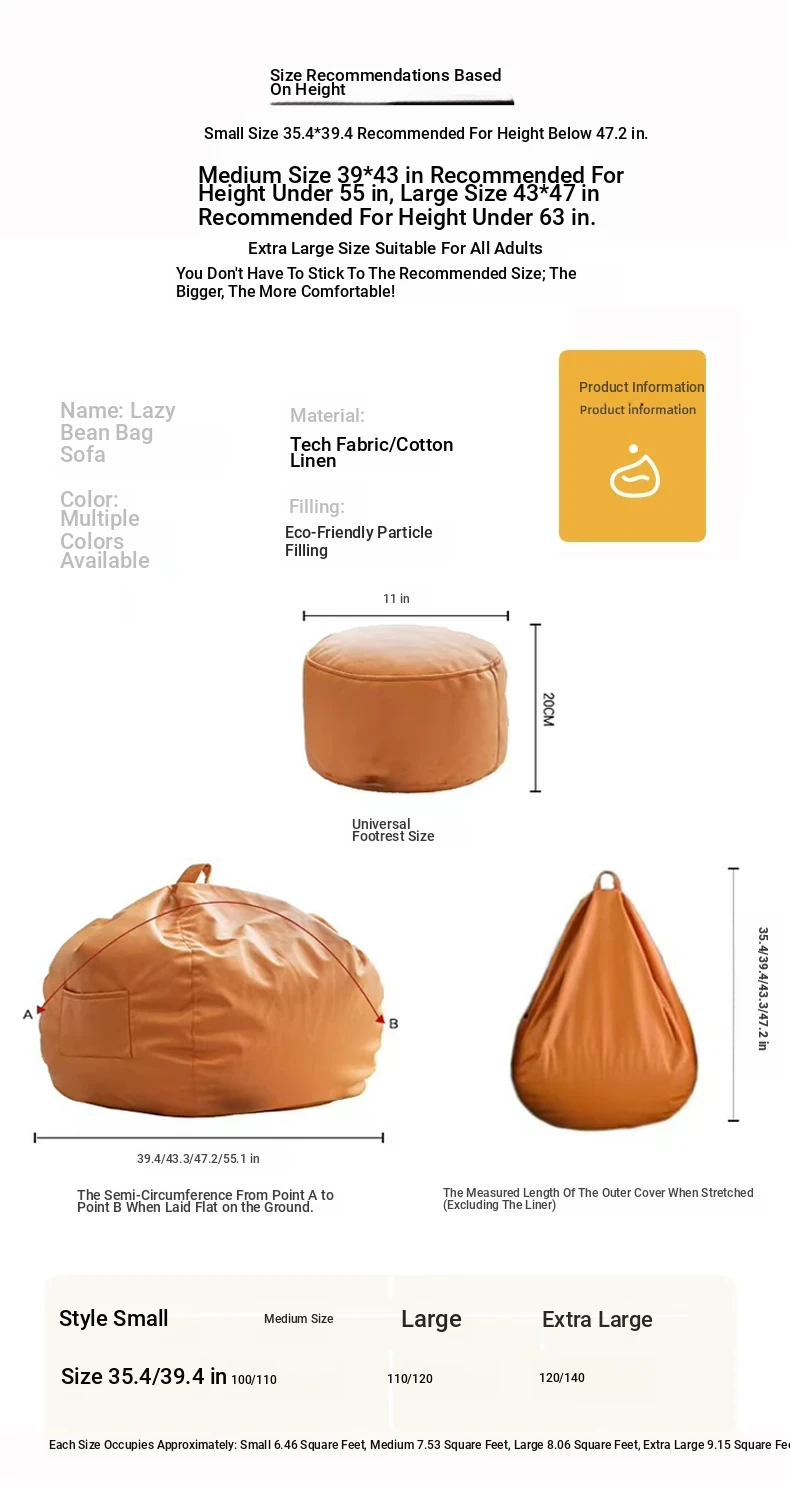 EPP Bean Bag Chair - Comfortable Lazy Sofa for Living Room, Bedroom, and Balcony, Perfect for Tatami or Kids’ Naptime - Relaxing Single-Seat Lounger