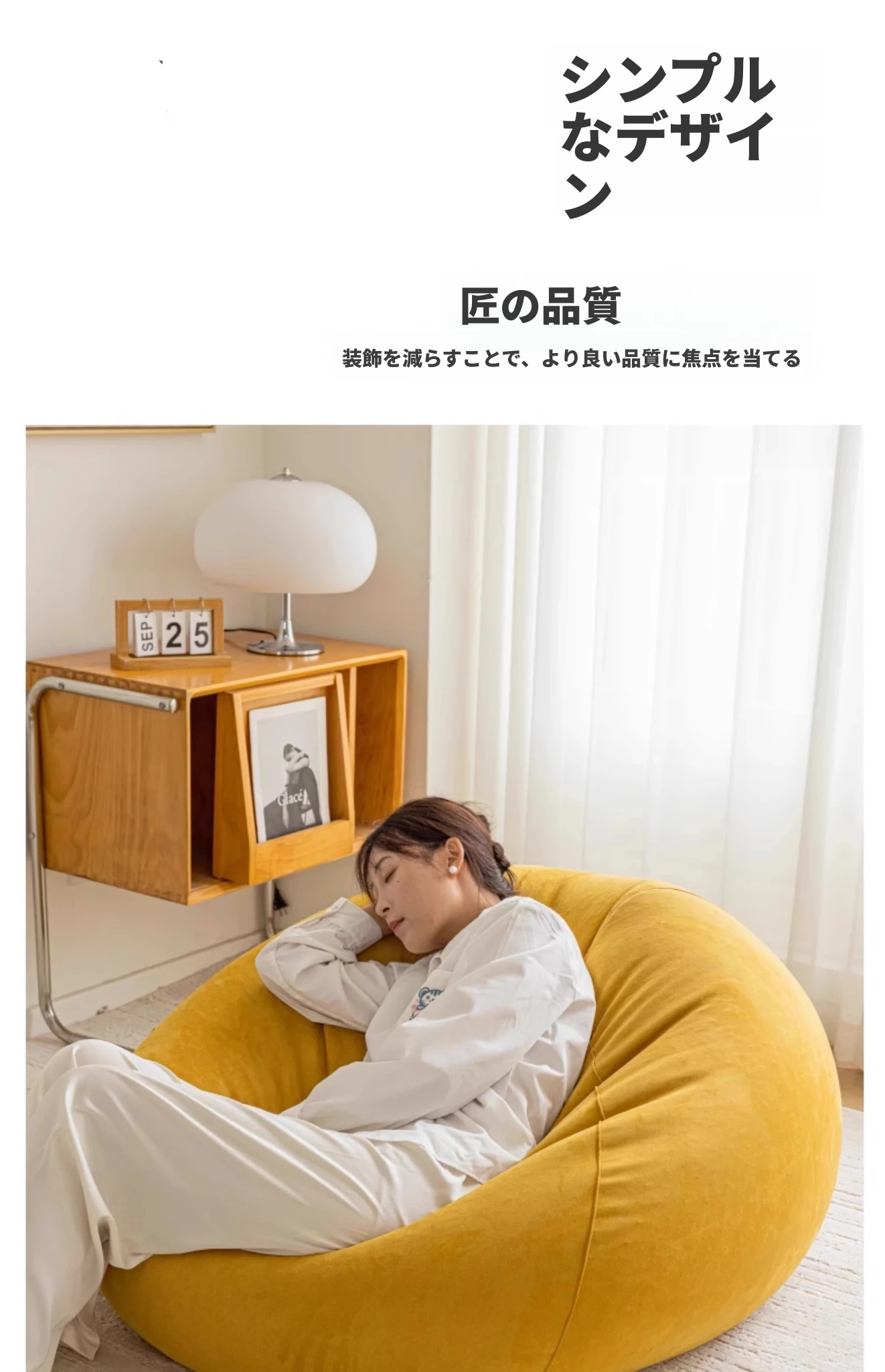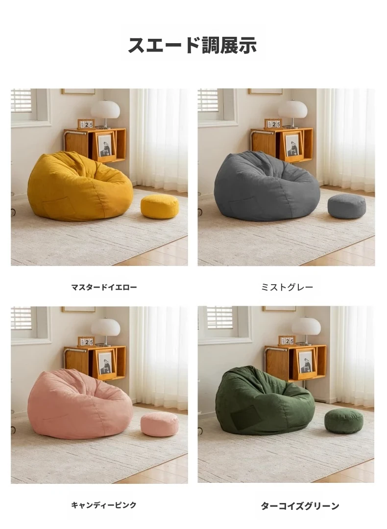 マスタードイエロー-肌触りの良いスエード-EPP充填 付属フットスツールクッション