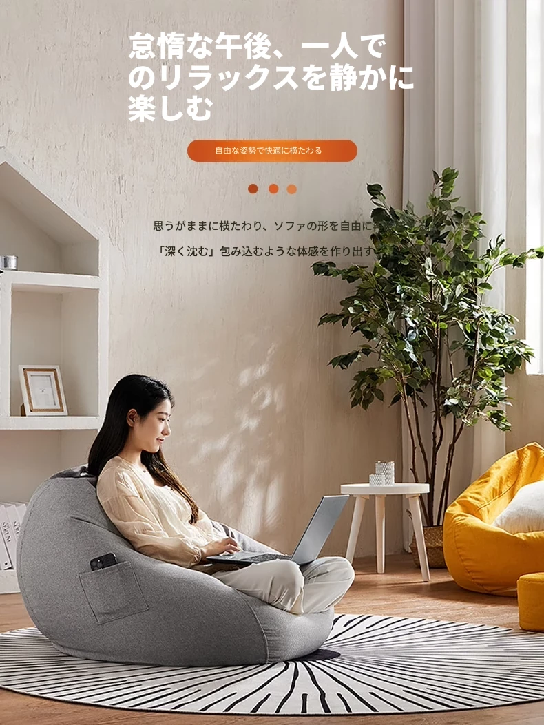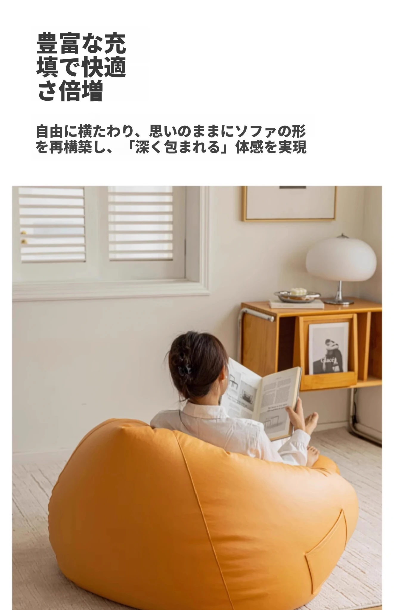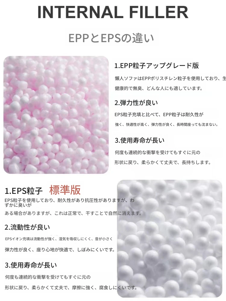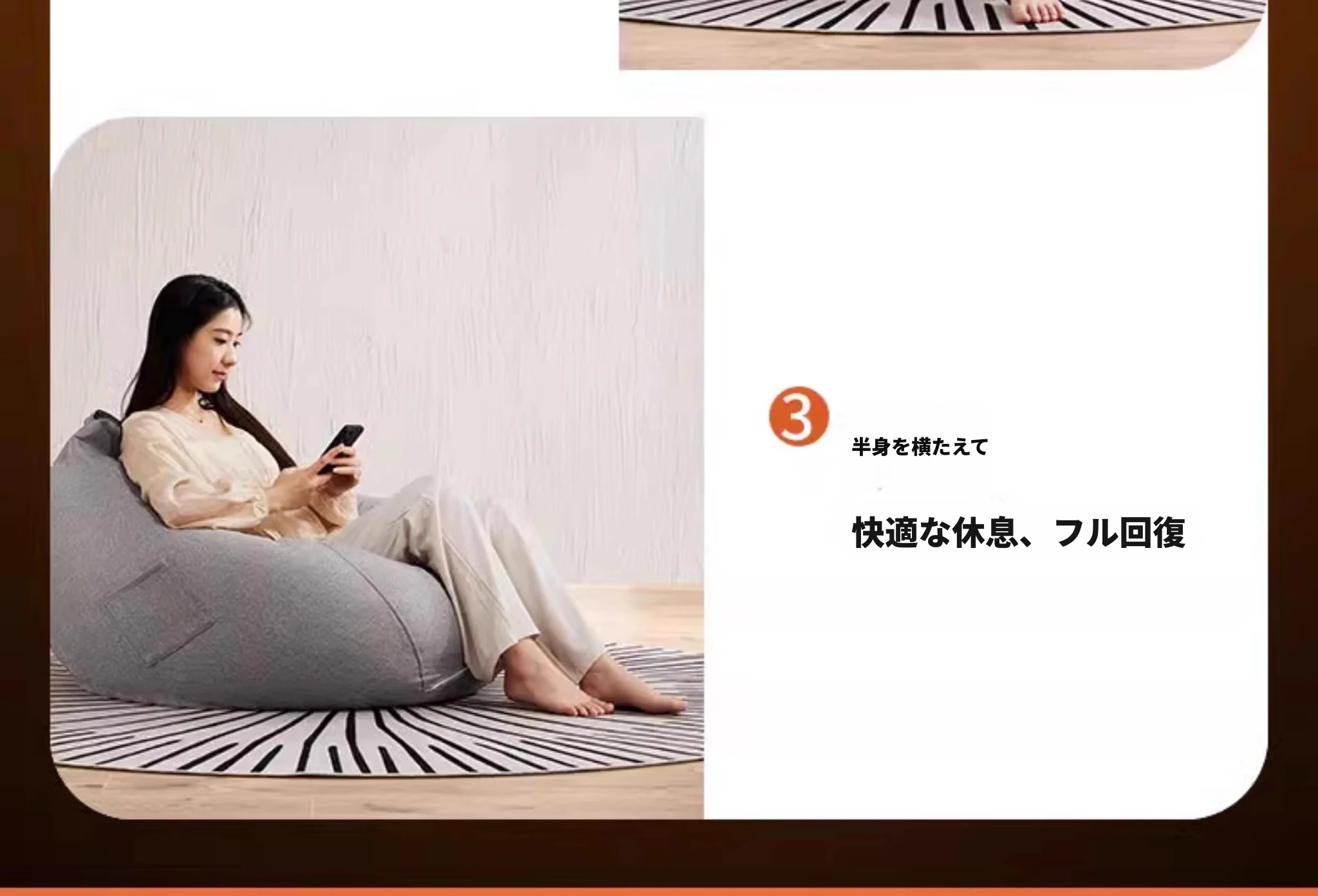 EPPリラックスソファー - 一人用、寝転び可能な豆袋型、畳やバルコニーに最適!長時間の座り心地も快適なテクノロジー布使用のカジュアルチェア。あなたのリラックスタイムをサポートします!