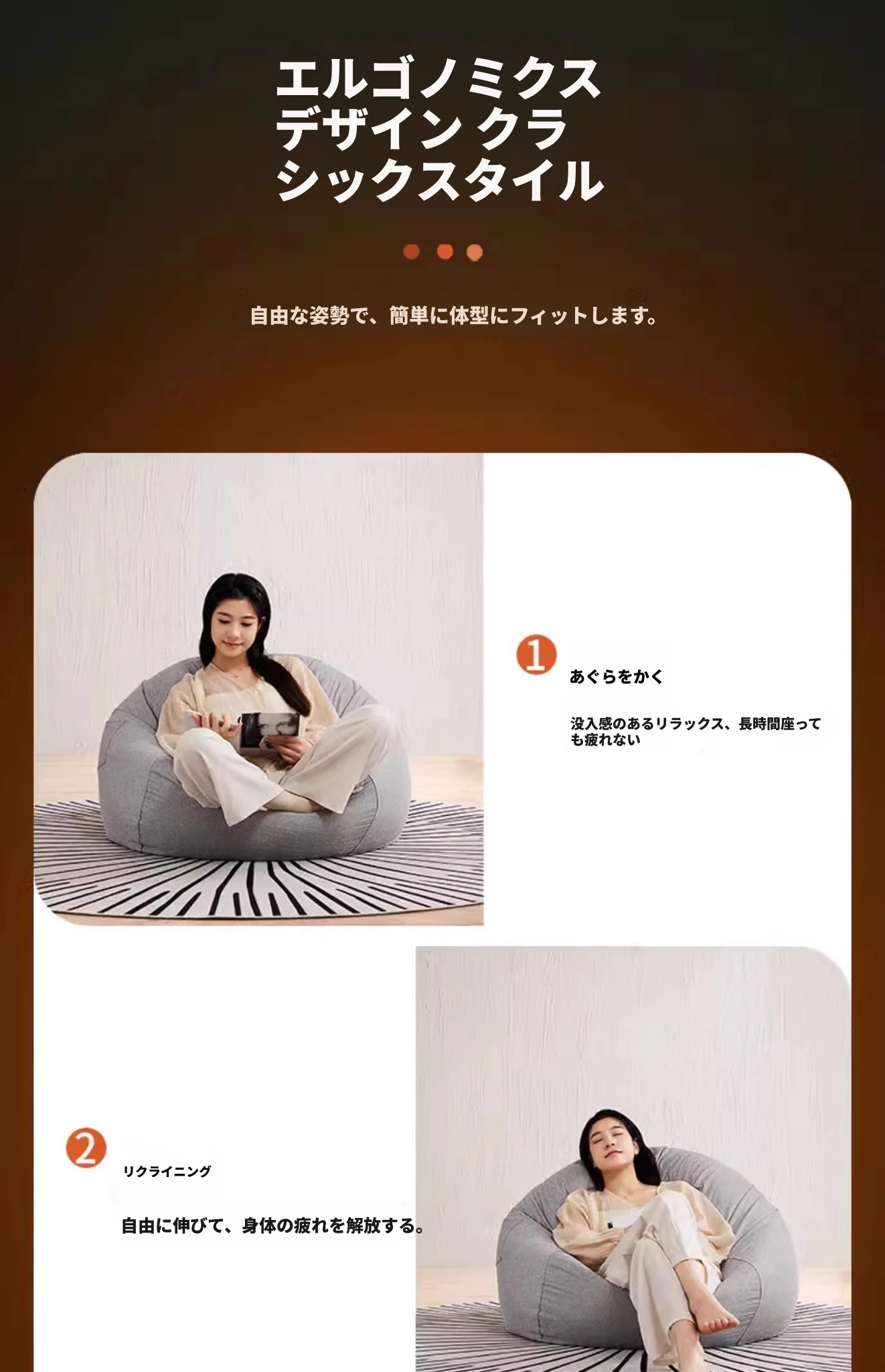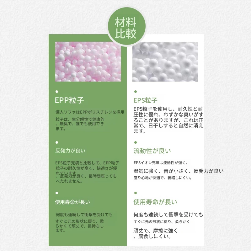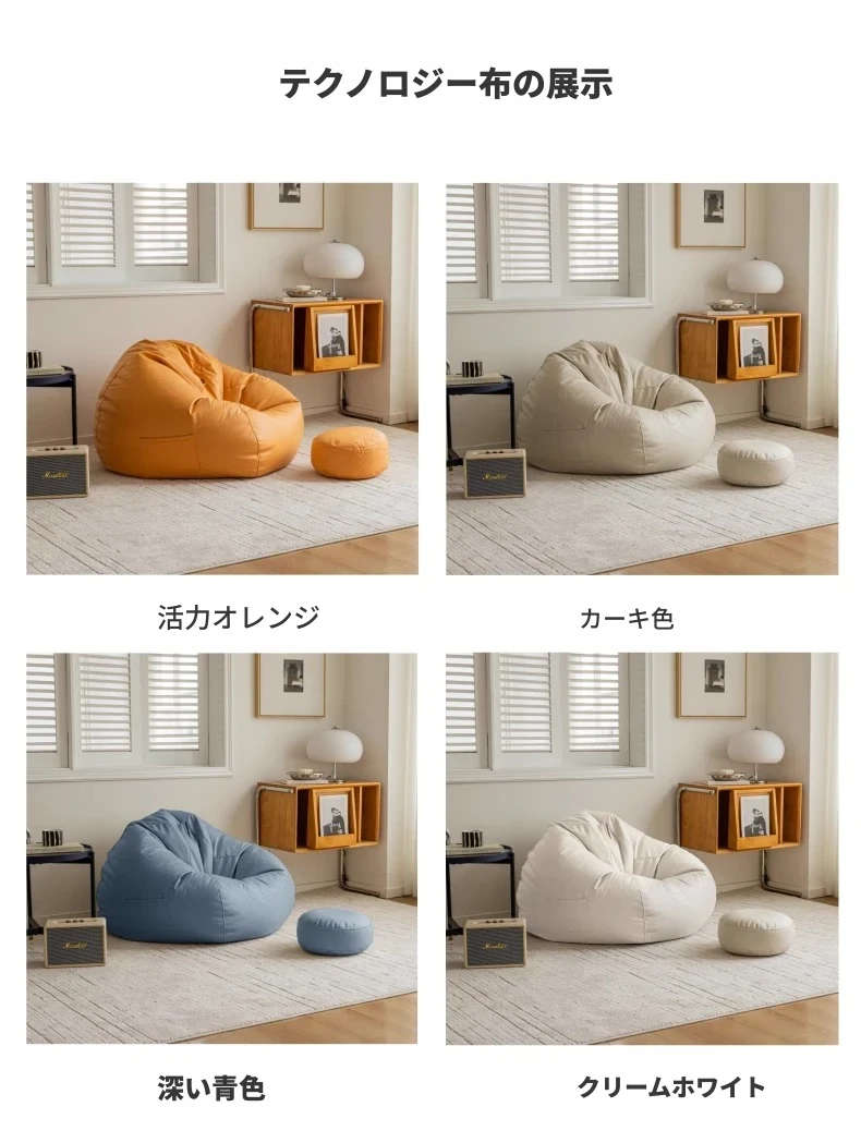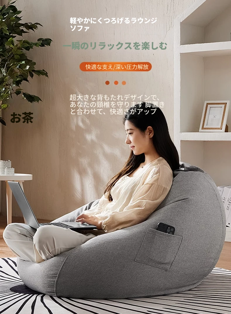 EPPリラックスソファー - 一人用、寝転び可能な豆袋型、畳やバルコニーに最適!長時間の座り心地も快適なテクノロジー布使用のカジュアルチェア。あなたのリラックスタイムをサポートします!