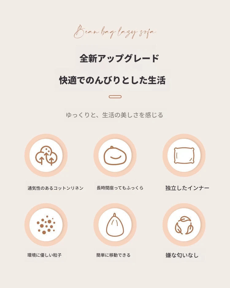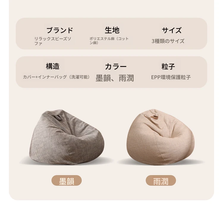 大号墨韻 快適なコットンリネン 【環境保護EPS粒子】+足置き