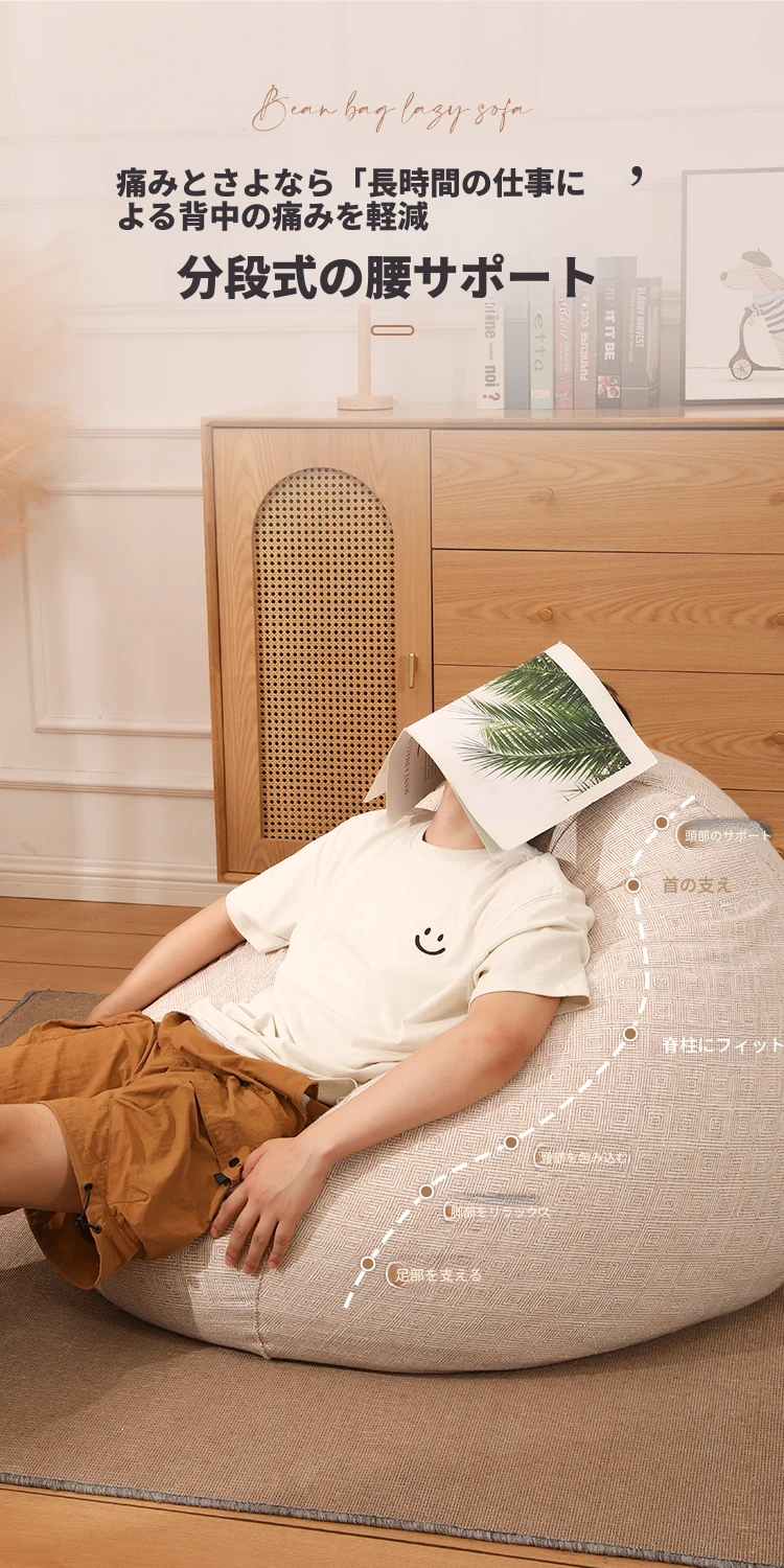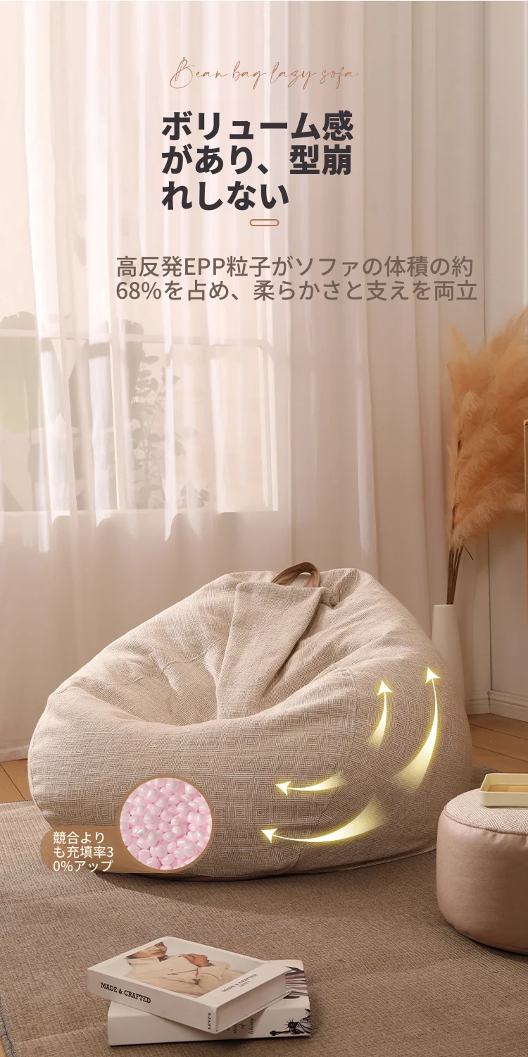 EPP一人用リラックスソファー|寝転びもできる快適な豆沙袋|畳やバルコニーにも最適な読書コーナー|長時間座っても疲れない理想のチェア