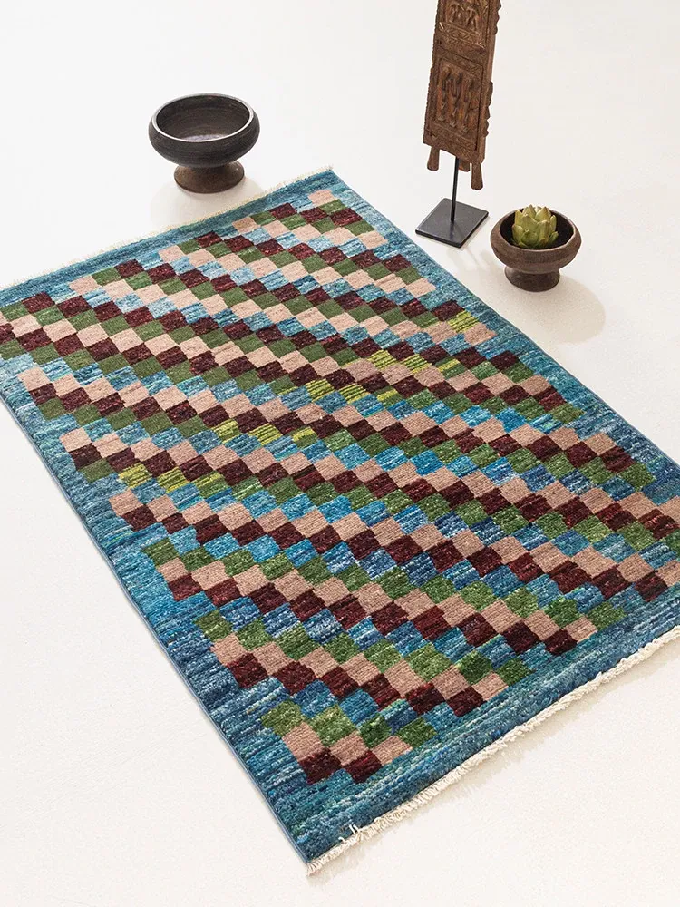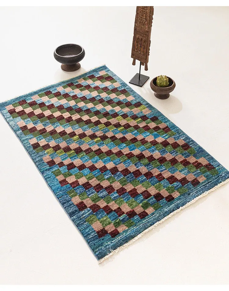 視覚と味覚を楽しむアフガニスタン直輸入の手作りウールラグ。民族的なデザインが魅力のリビングルーム用コーヒーテーブルマット。高級感あふれるノーグルー仕上げで、あなたの空間を一層引き立てます。