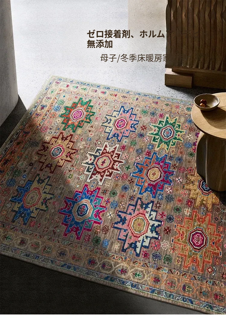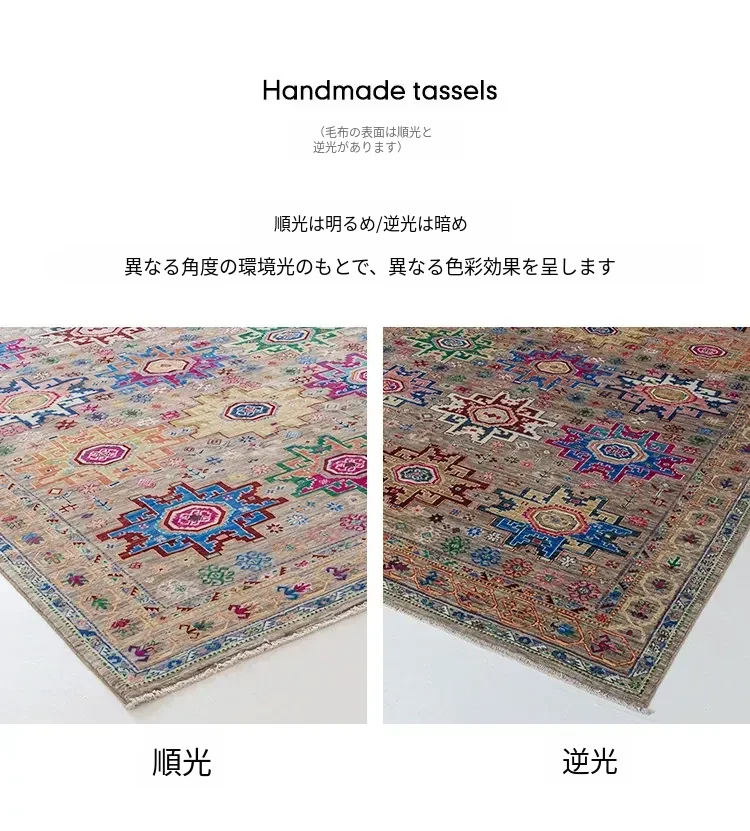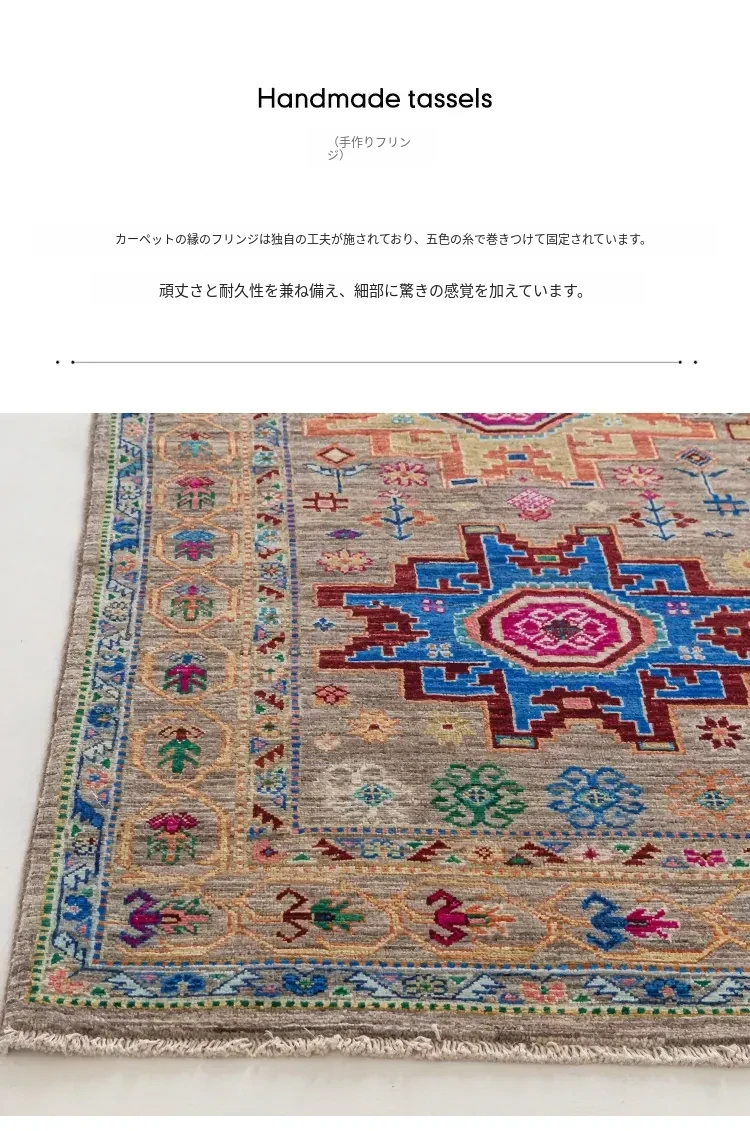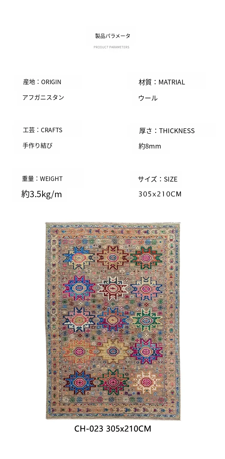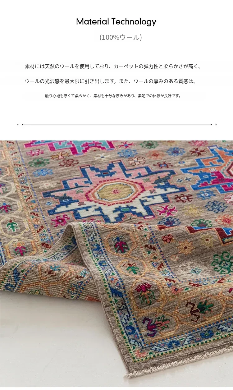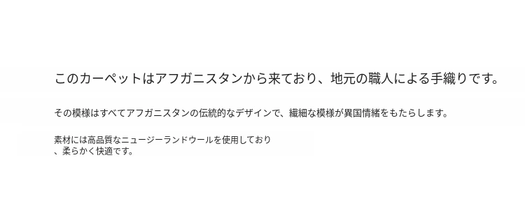 視覚と味覚を刺激するアフガニスタン直輸入の高級手織りカーペット!アメリカンスタイルのリビングにぴったり、環境に優しくフォルムも美しい、安心の無ホルムアルデヒド製品です。