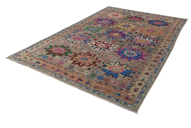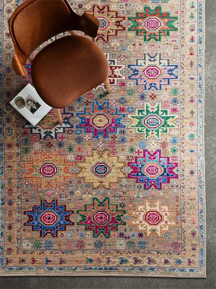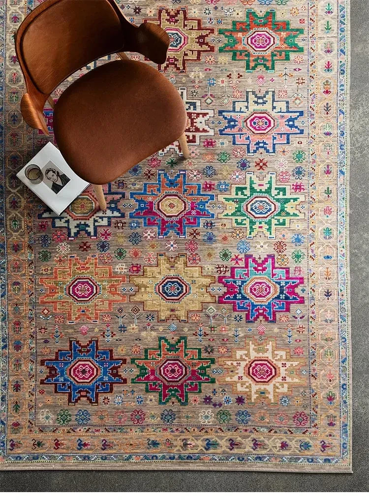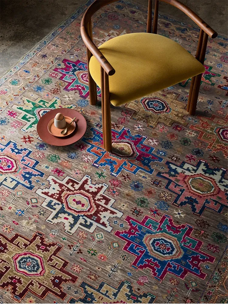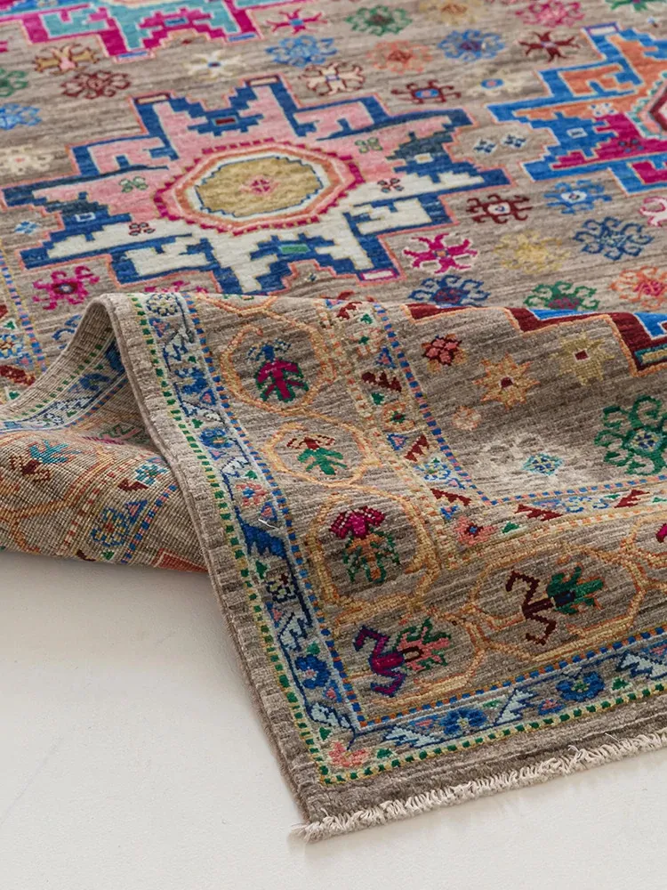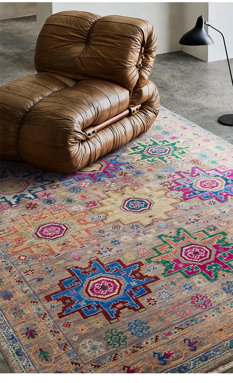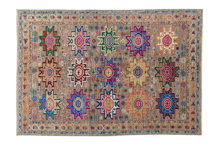 視覚と味覚を刺激するアフガニスタン直輸入の高級手織りカーペット!アメリカンスタイルのリビングにぴったり、環境に優しくフォルムも美しい、安心の無ホルムアルデヒド製品です。