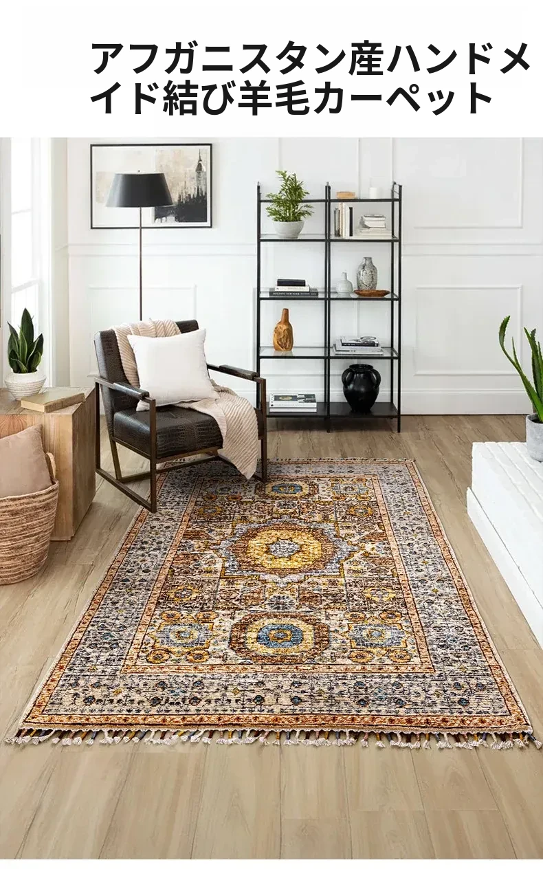 視覚的な美味しさ!アフガニスタン直輸入のレトロウールカーペット、手作りのノンボンドペルシャエキゾチックスタイル。リビングルームを彩る贅沢な一品!
