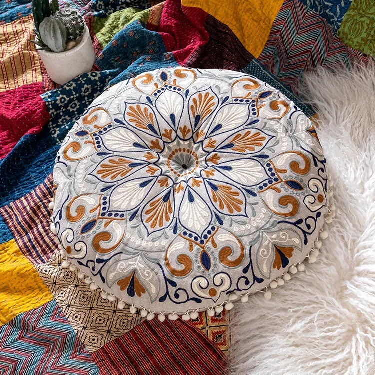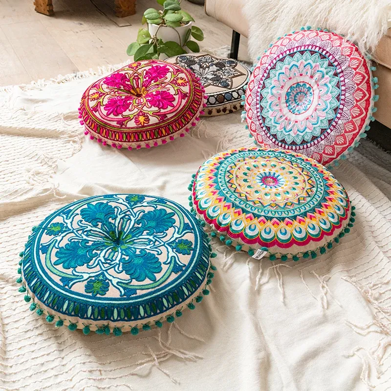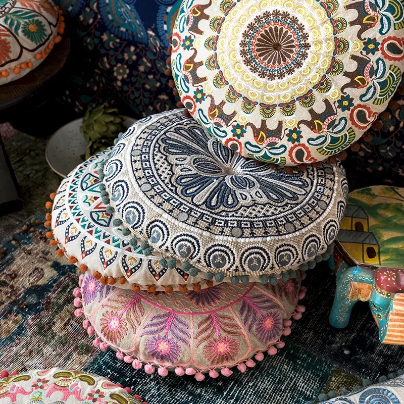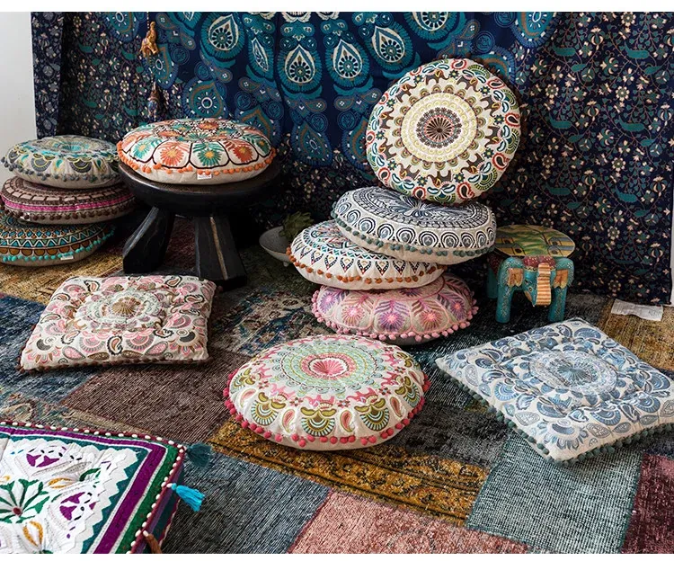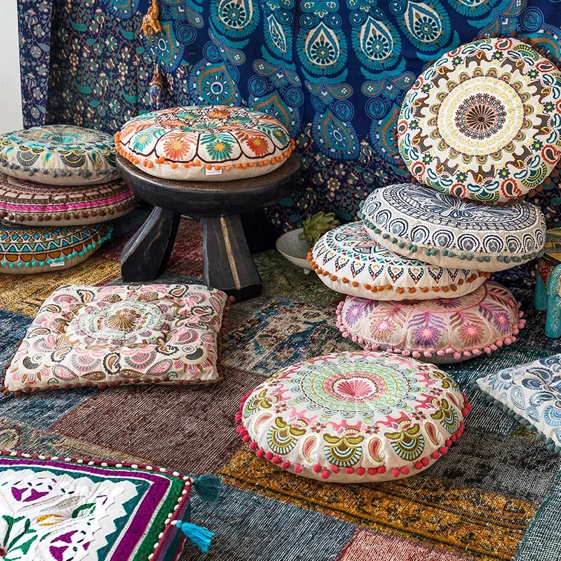 輸入品のカーペットクッション、東南アジアスタイルの畳刺繍クッション、柔らかいパッケージの椅子用クッション、座禅やヨガに最適な座布団!心地よい座り心地でリラックスタイムをお楽しみください。
