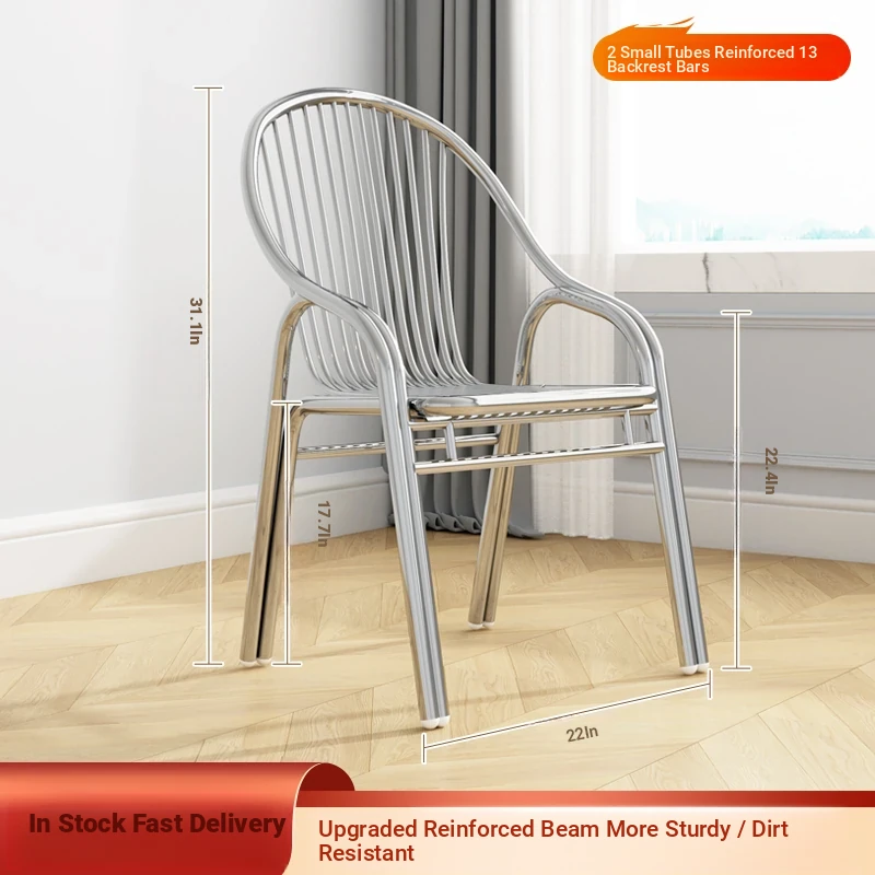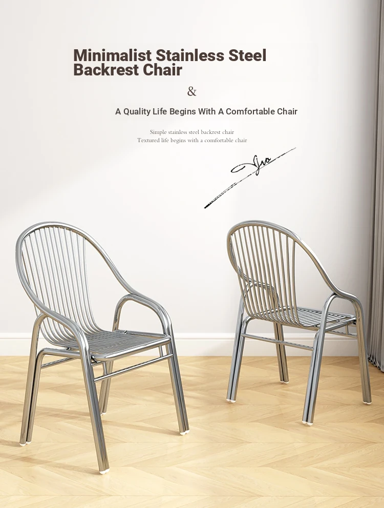 Extra Thick 304 Stainless Steel Chair with Backrest - Stylish Metal Outdoor Dining Chair for Home, Comfortable Armchair, Perfect for Relaxation and Leisure - Ideal Single Seat for Your Patio or Garden