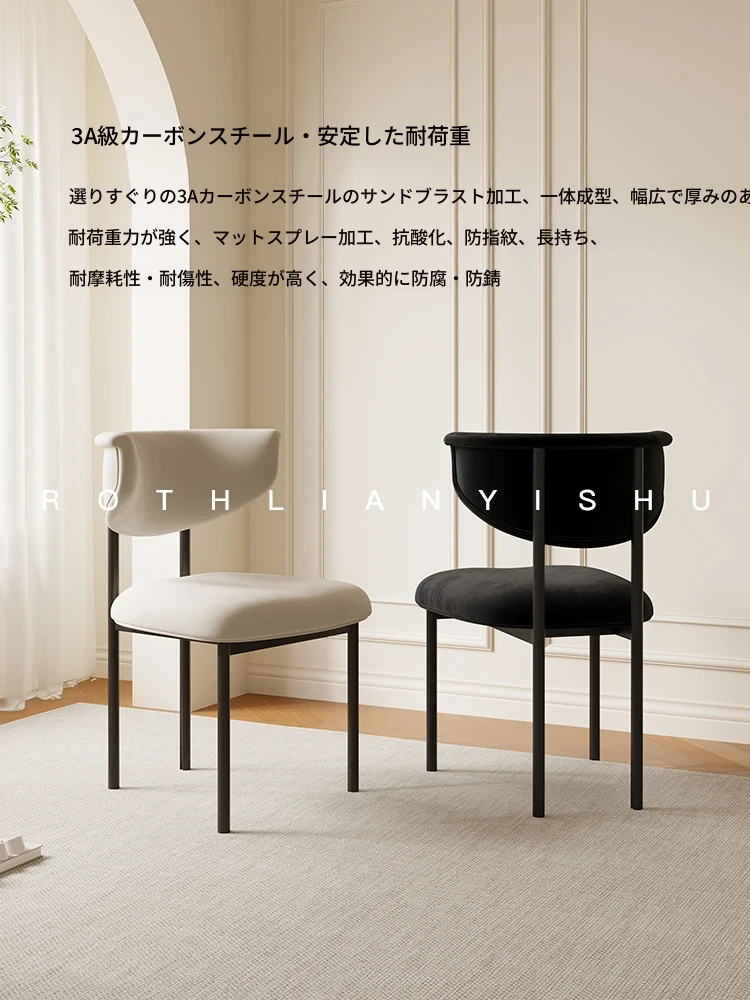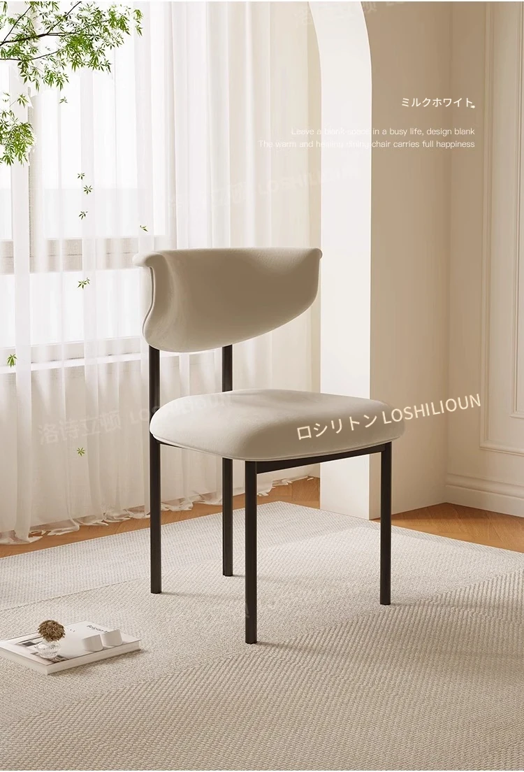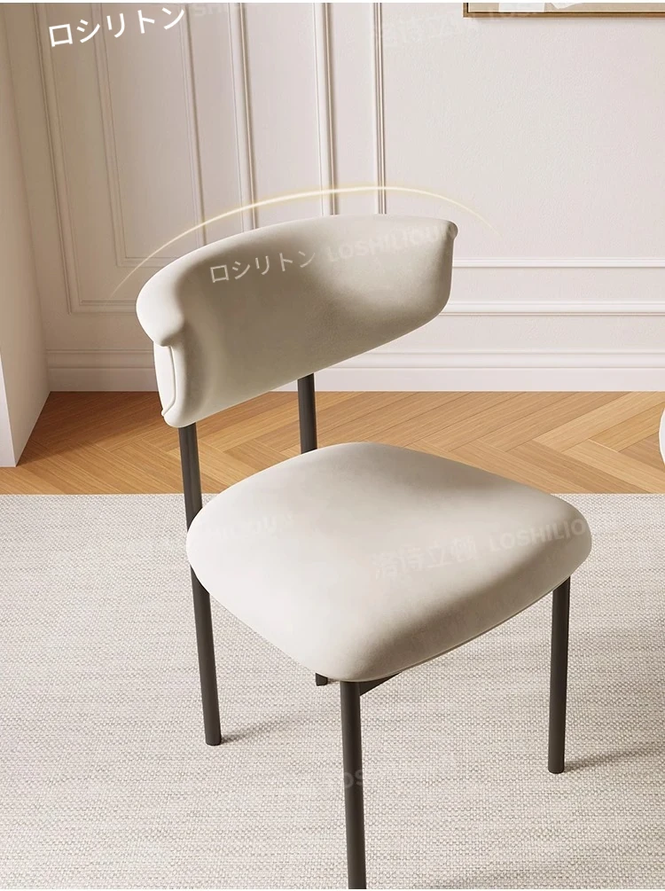 フランス風クリームダイニングチェア|家用軽奢スタイル|モダンデザインのイタリアンミニマル|メイクアップにも最適な背もたれ付きスツール!おしゃれな空間を演出します。