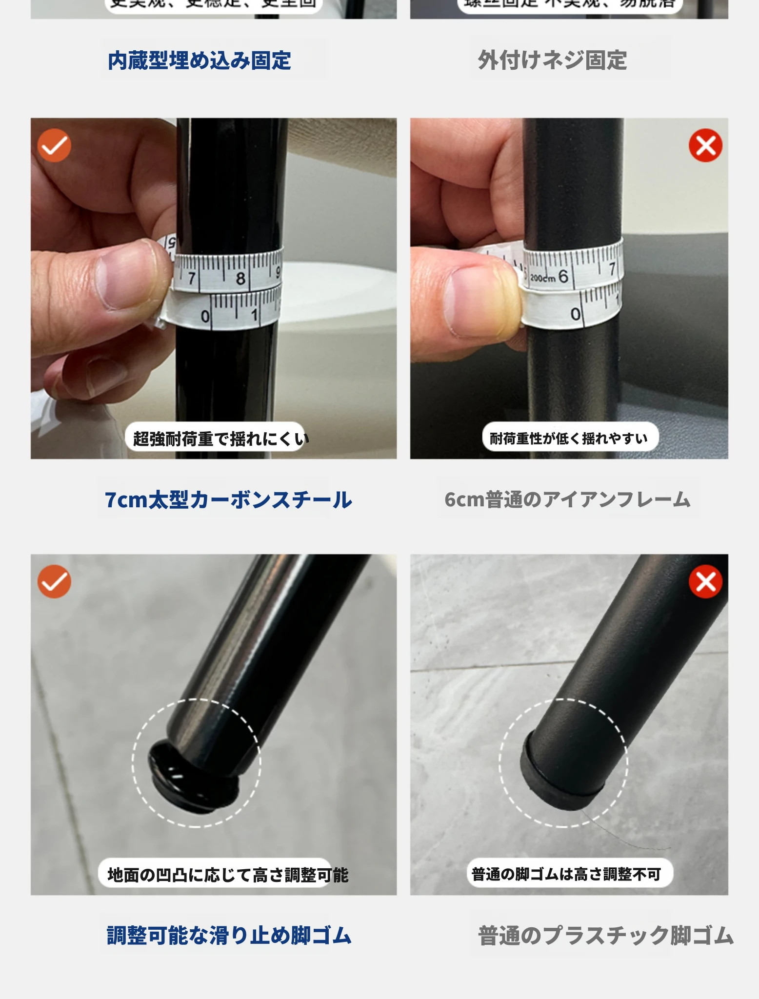 《ミルクホワイト_マットフリース》| ブラックチタンステンレス鋼 | 45Dスポンジ | 耐荷重400斤