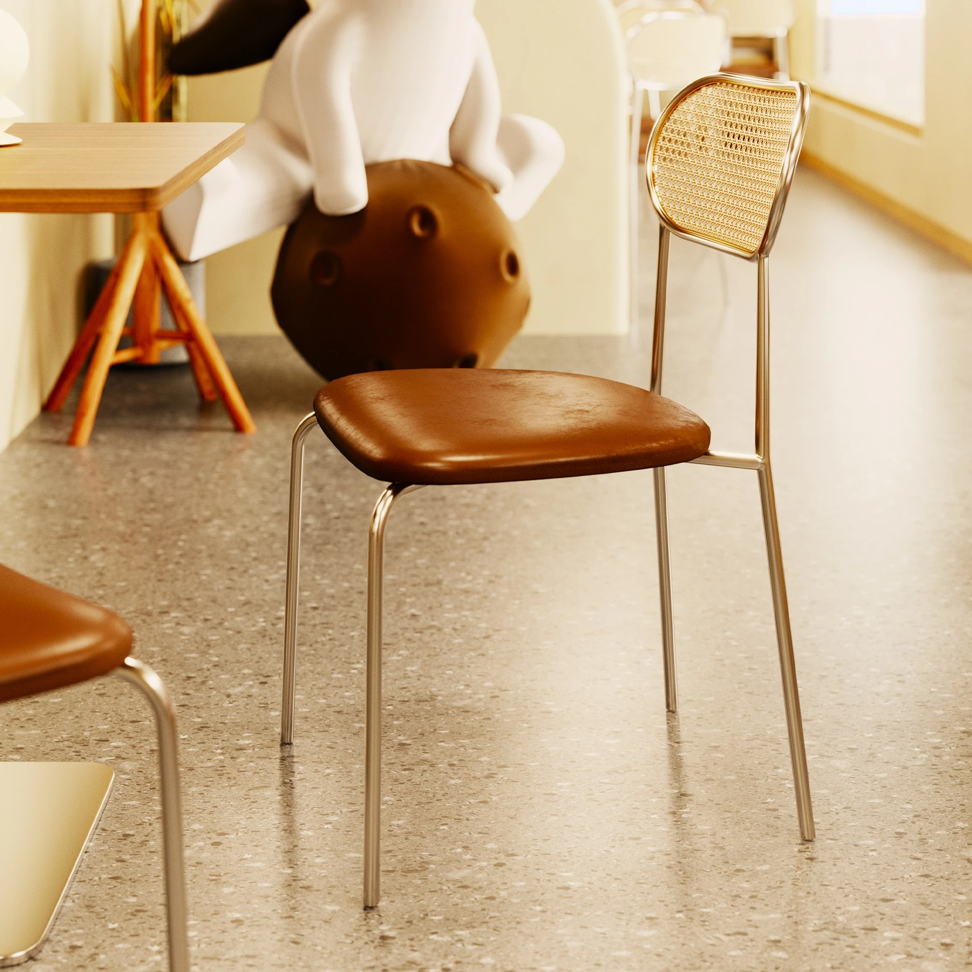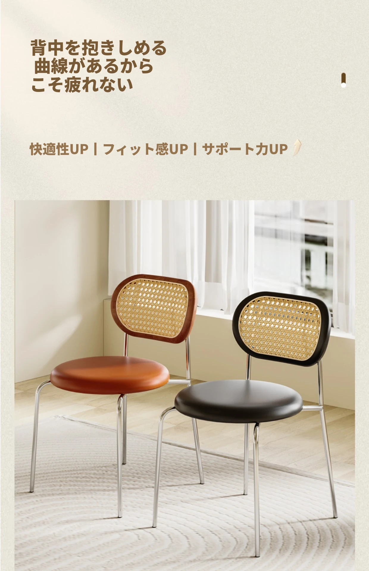 茶色クッション★メッキ椅子脚