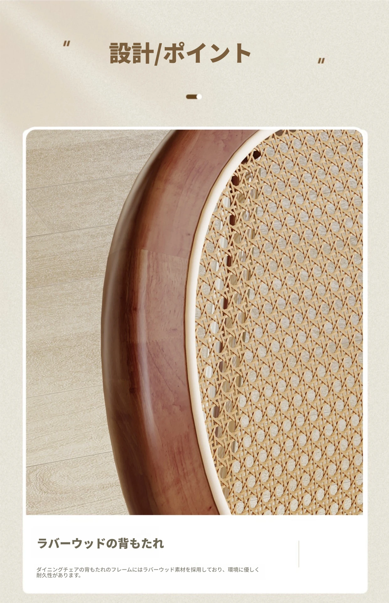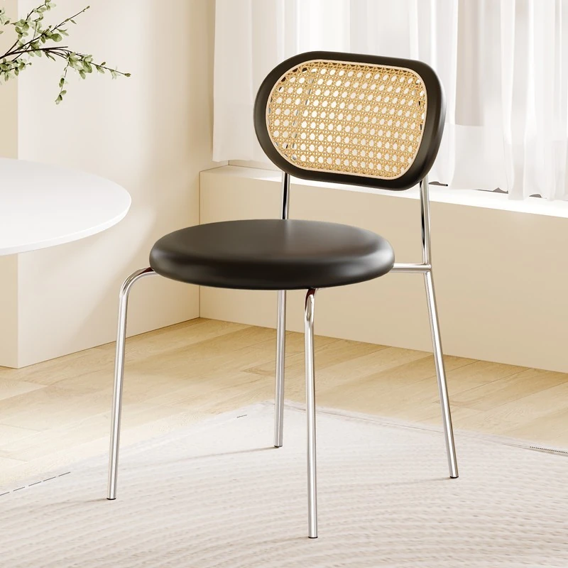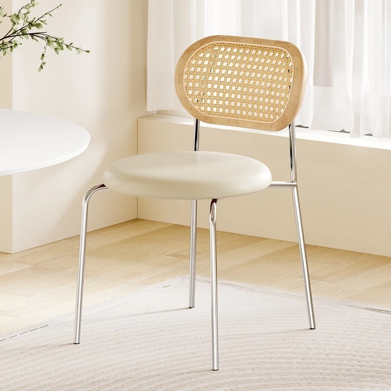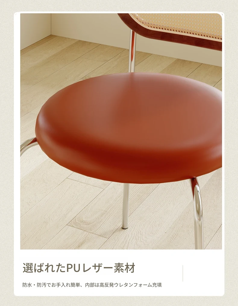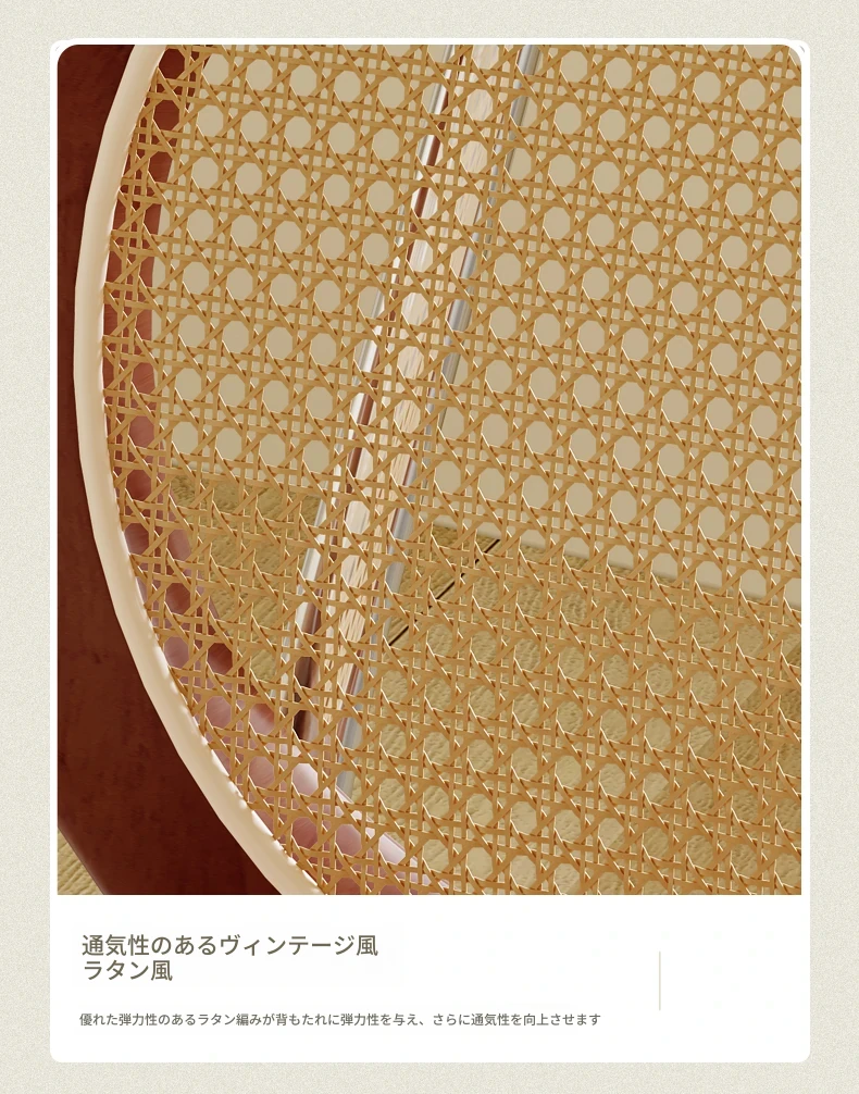 フレンチクリーム風のラタン編みダイニングチェア|ホテルやレストランに最適な背もたれ付き|民宿や侘寂スタイルにぴったりな無垢材のレトロチェア!快適さとスタイルを兼ね備えた一品です。
