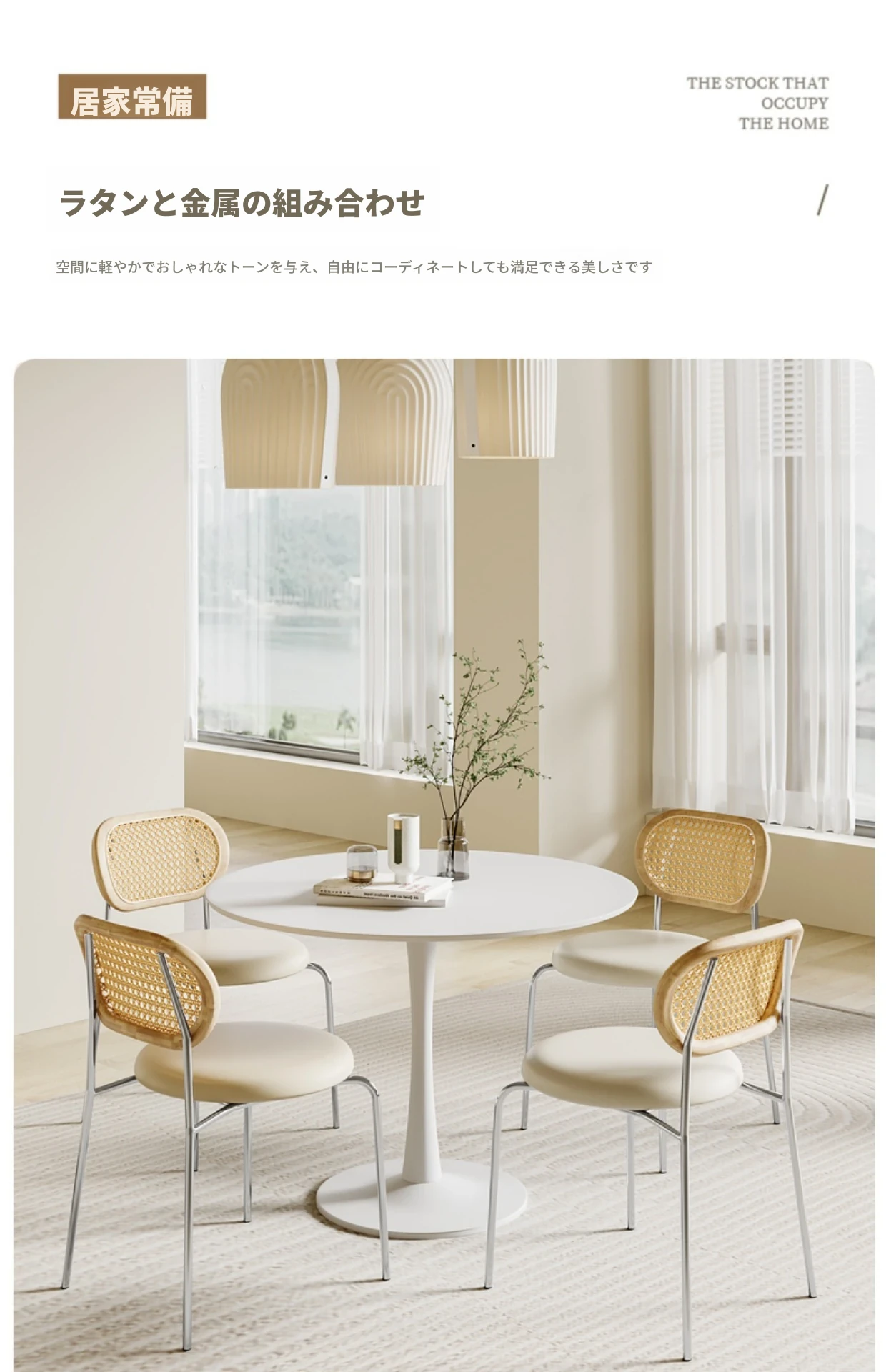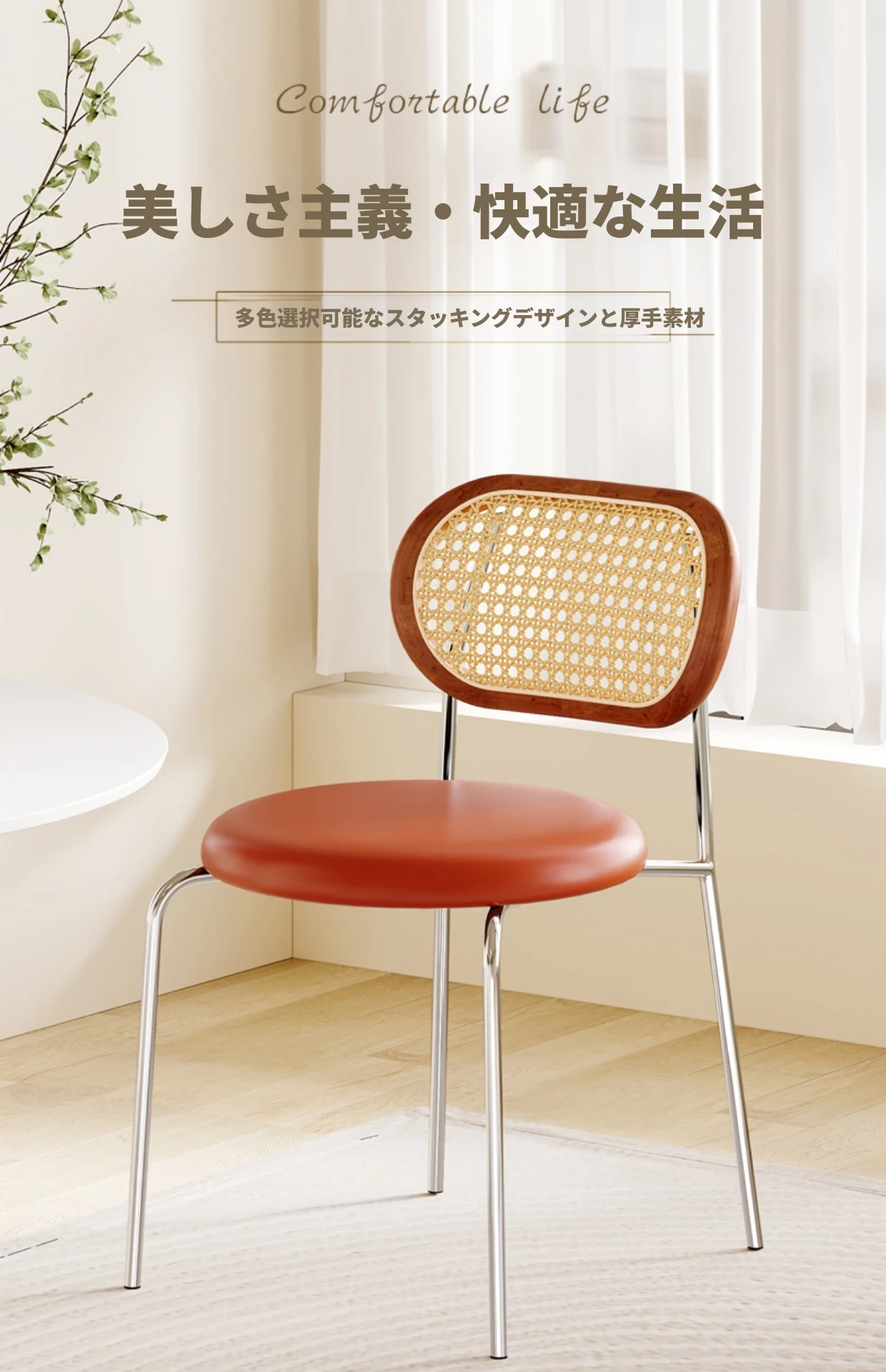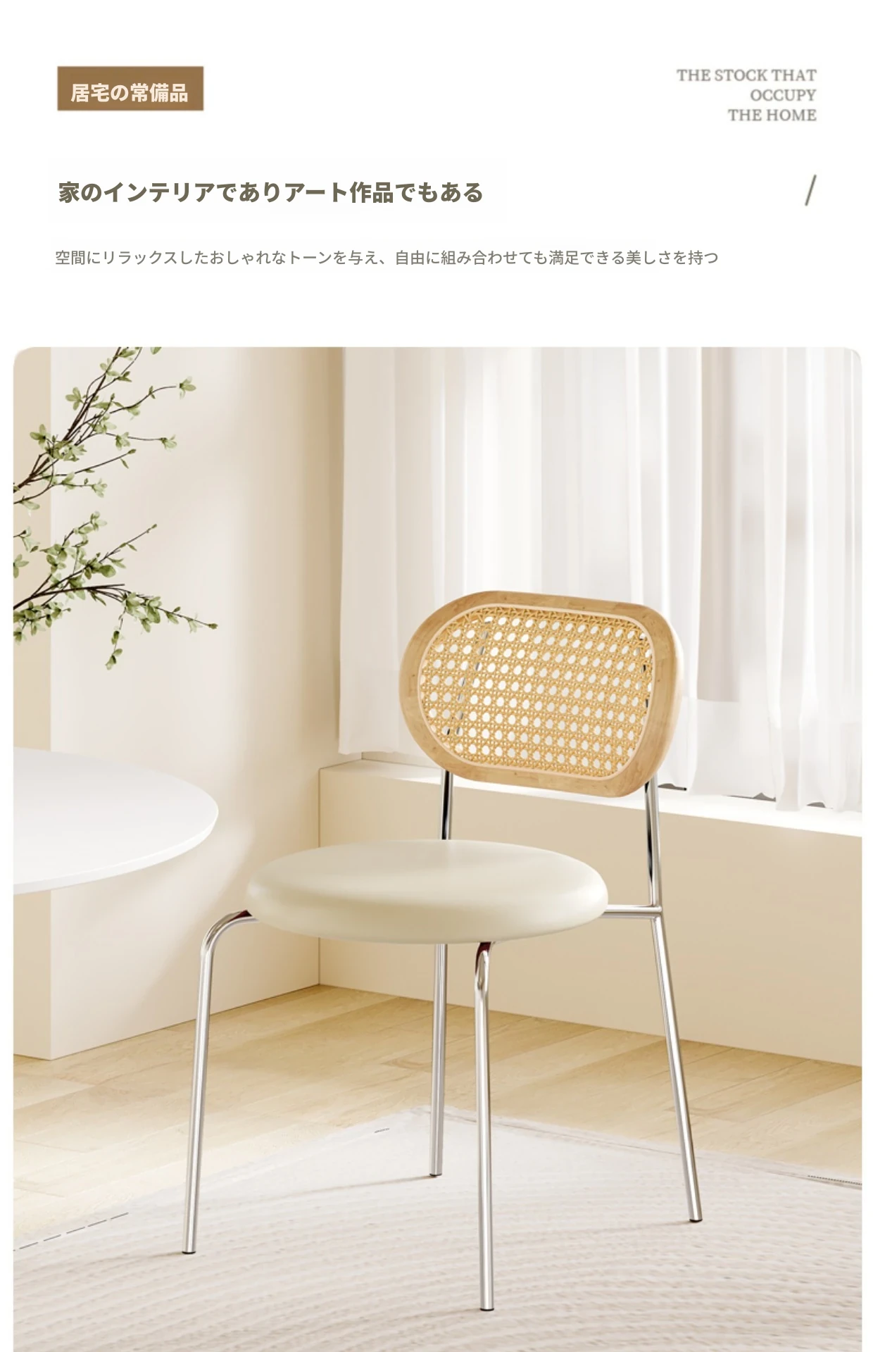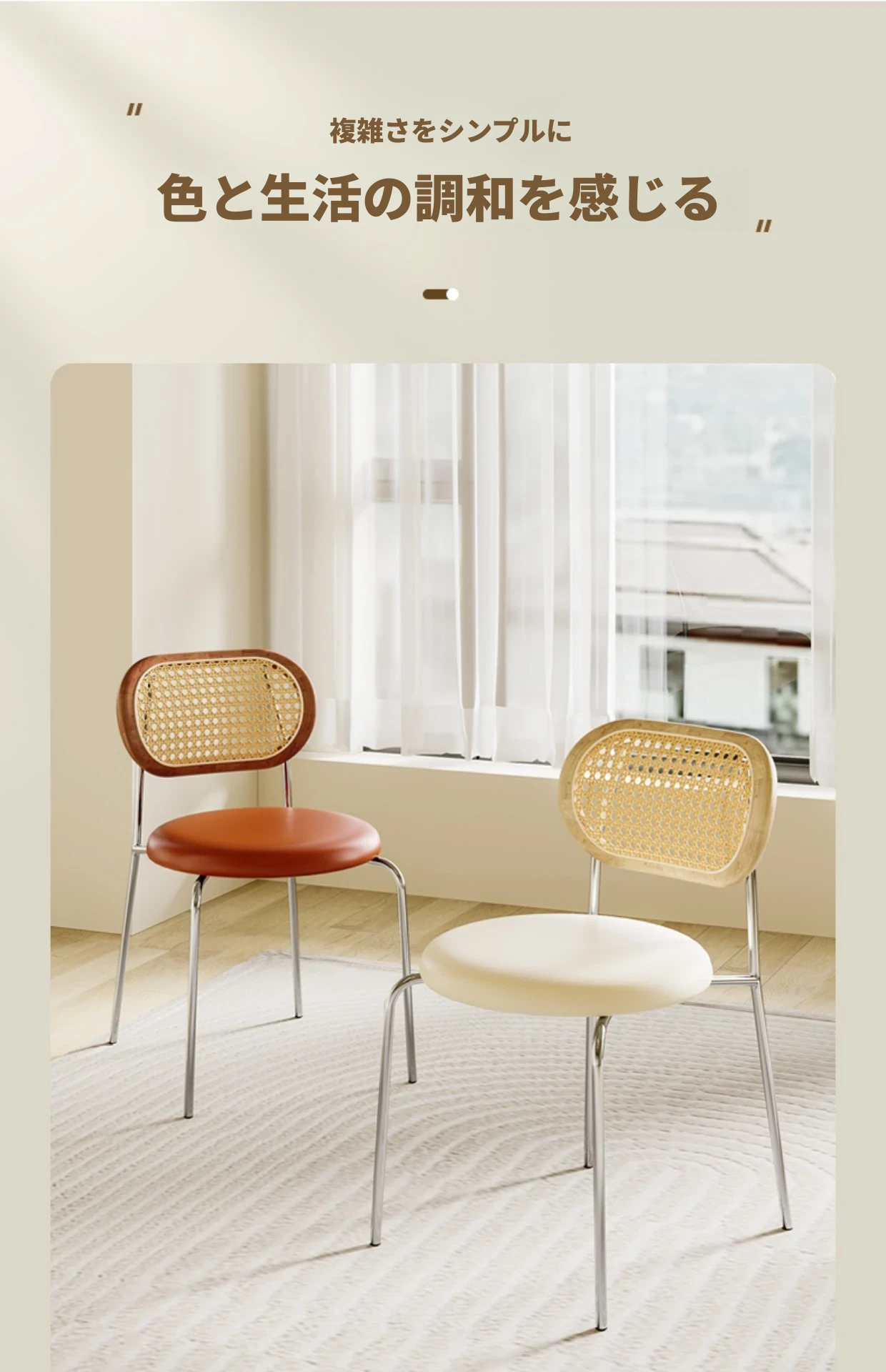 フレンチクリーム風のラタン編みダイニングチェア|ホテルやレストランに最適な背もたれ付き|民宿や侘寂スタイルにぴったりな無垢材のレトロチェア!快適さとスタイルを兼ね備えた一品です。