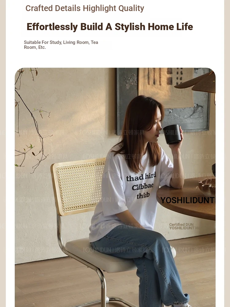 French Cream Woven Dining Chair - Vintage Style Home Dining Chair with Backrest, Perfect for Your Dining Table, New 2025 Design for Stylish Dining Rooms