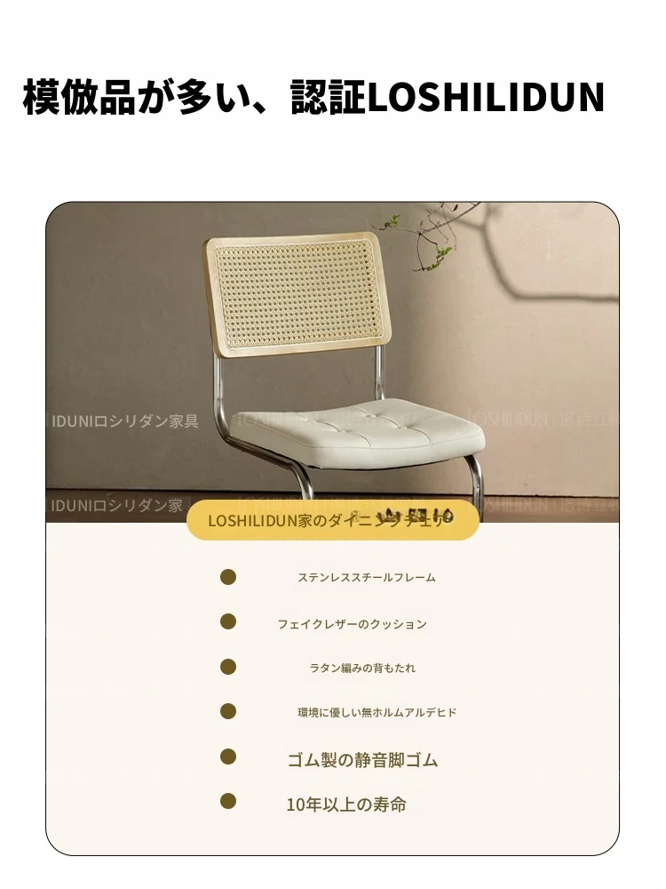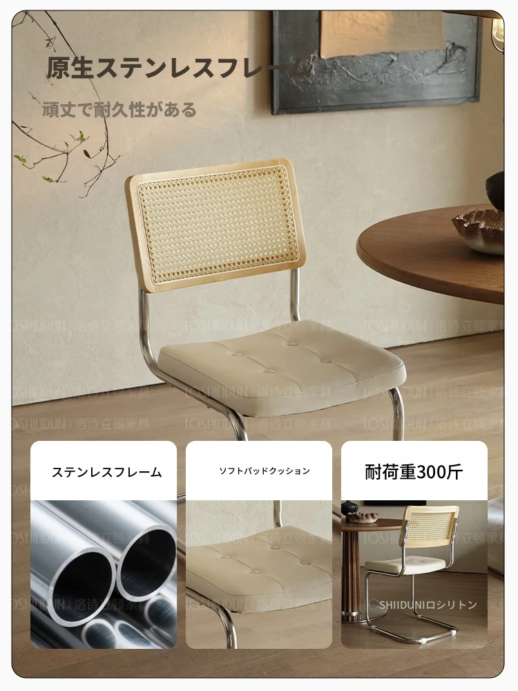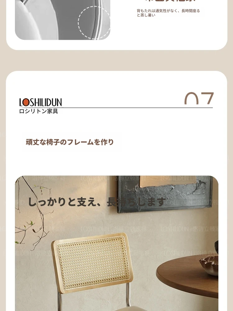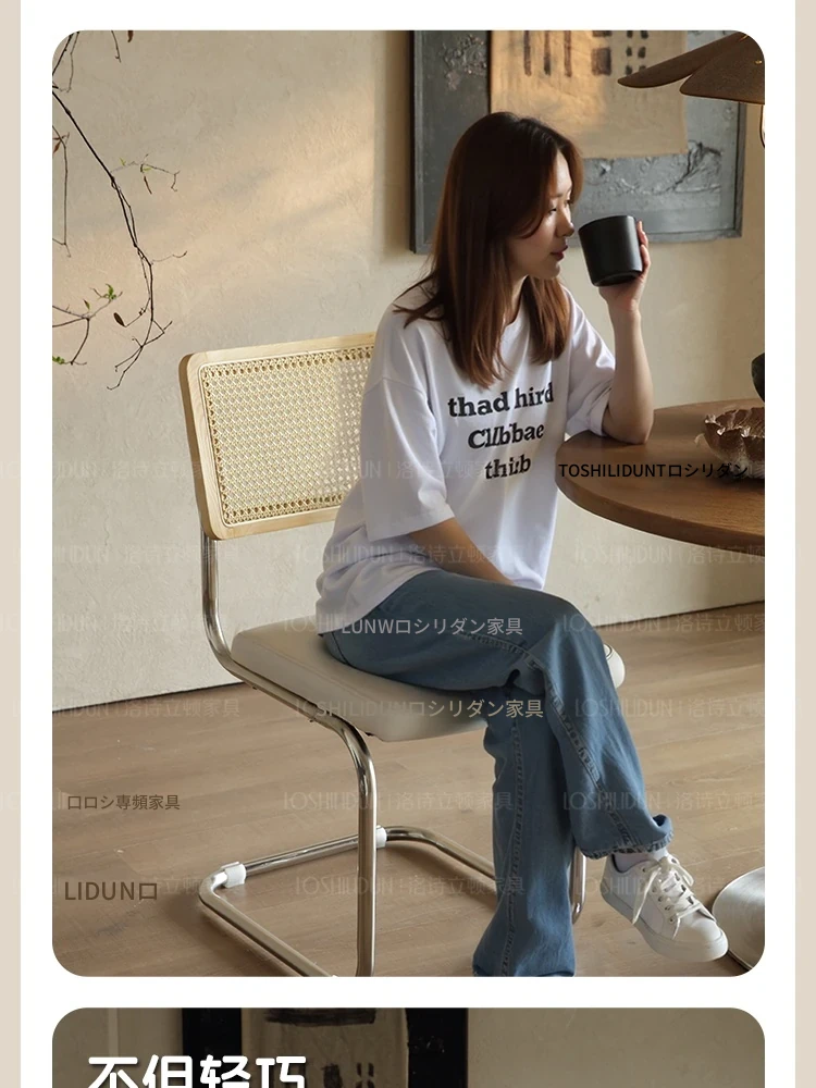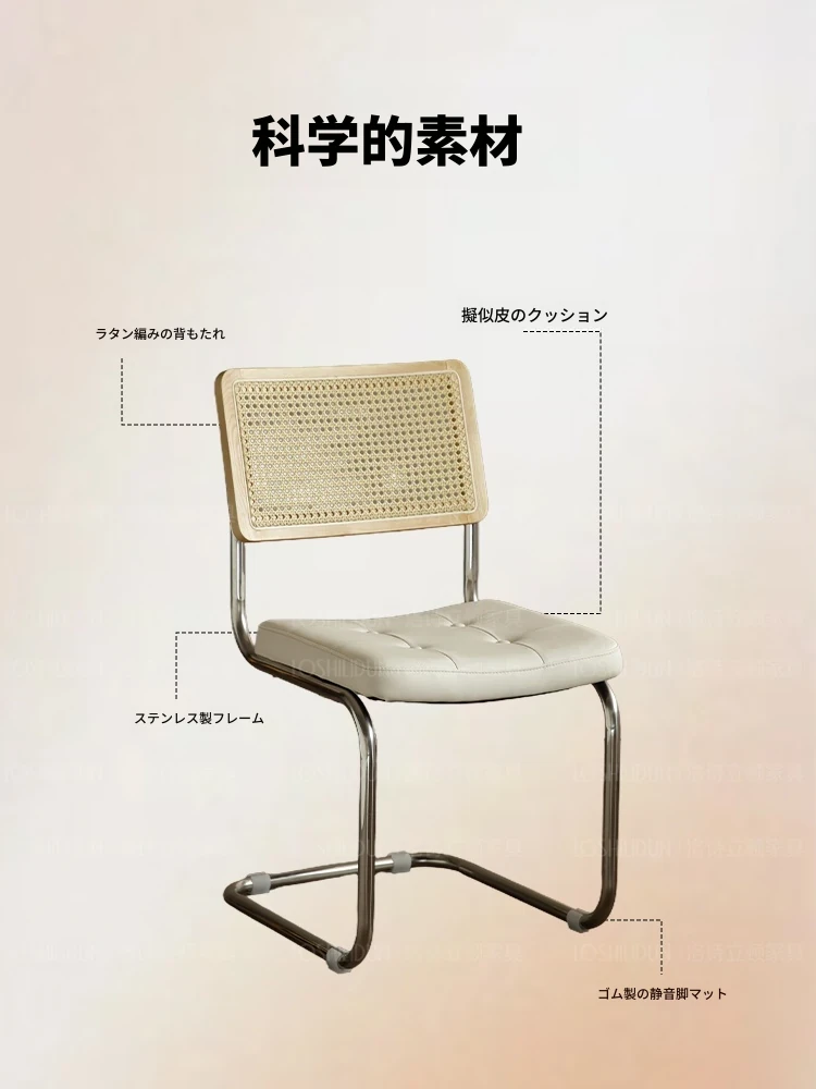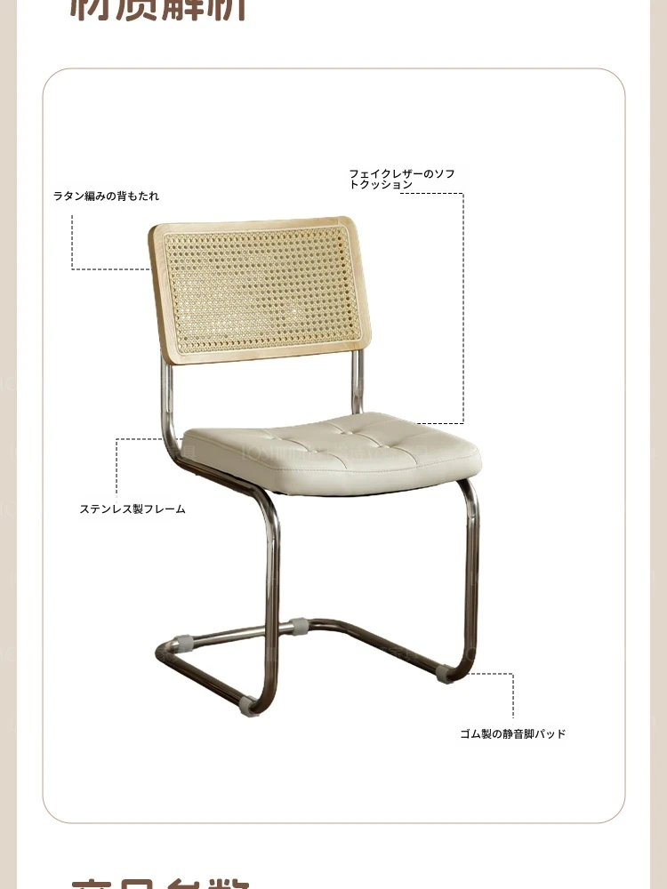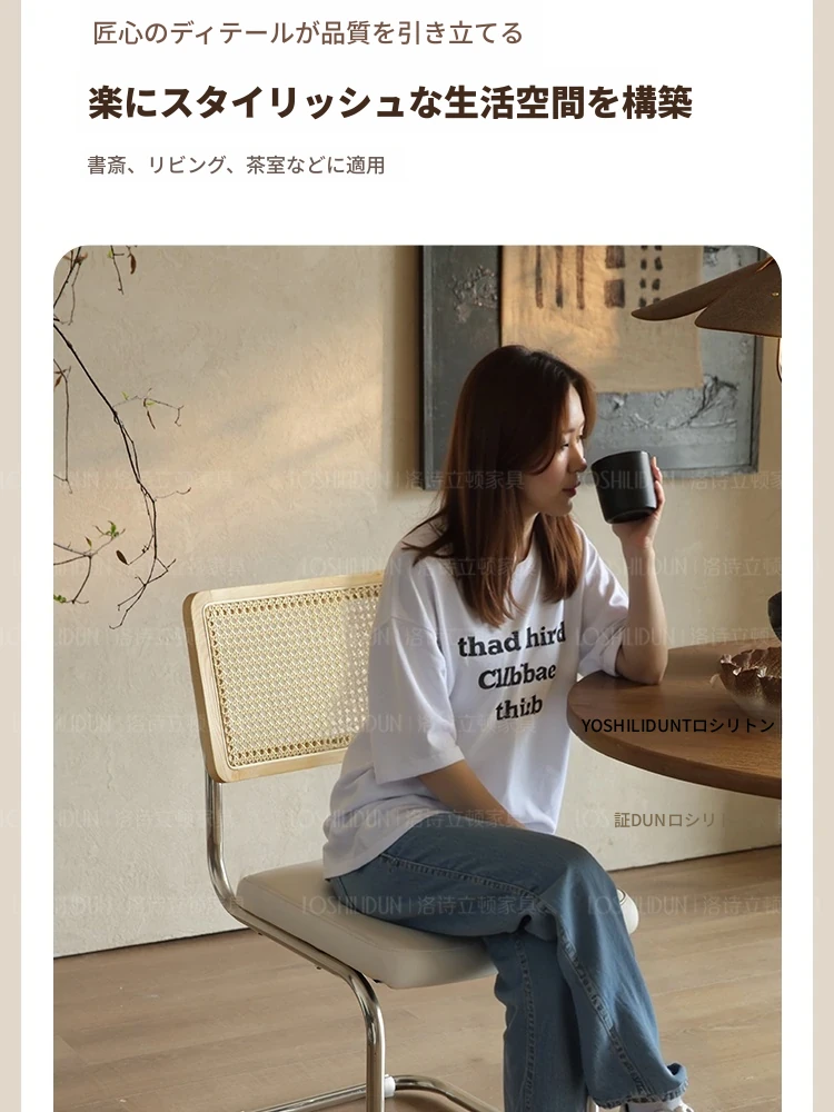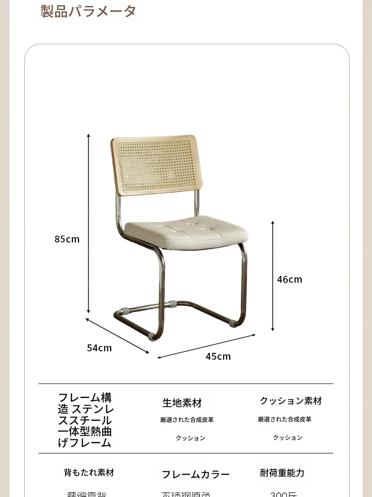 フランス風クリームカラーのラタン編みダイニングチェア - おしゃれで快適な背もたれ付き、レトロスタイルの新作2025年版。自宅のダイニングを華やかに彩る一品!