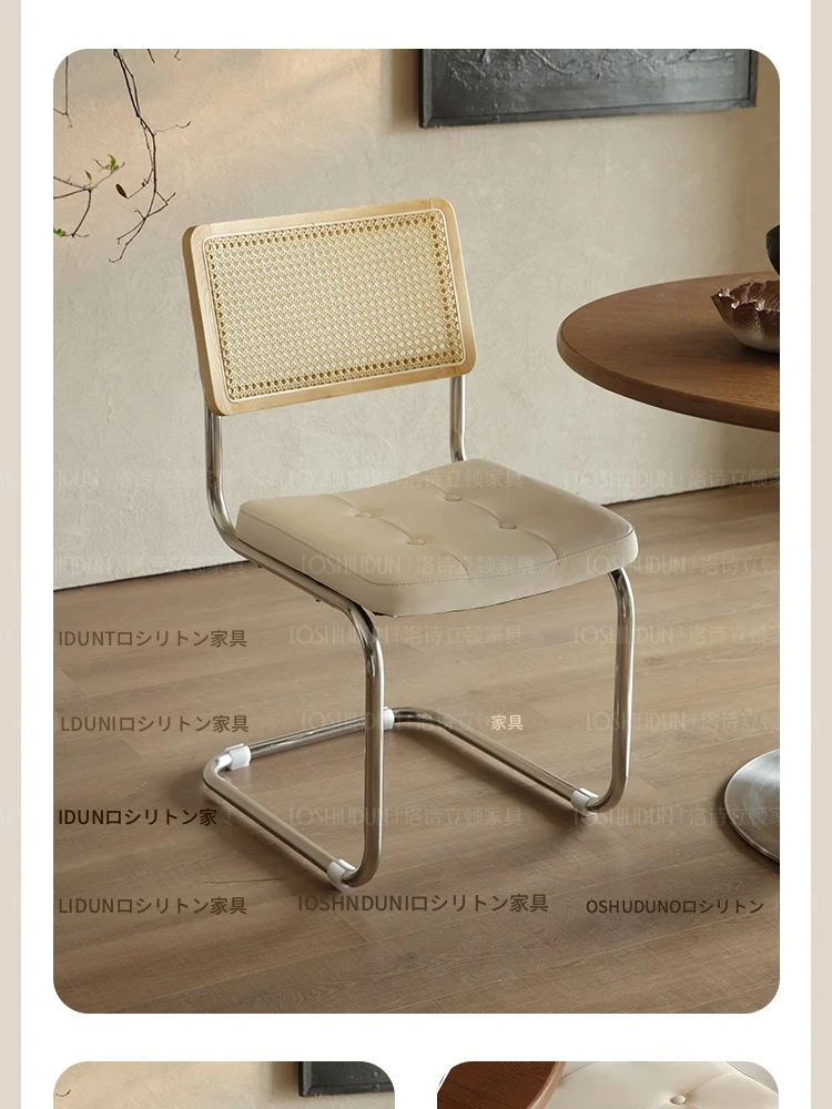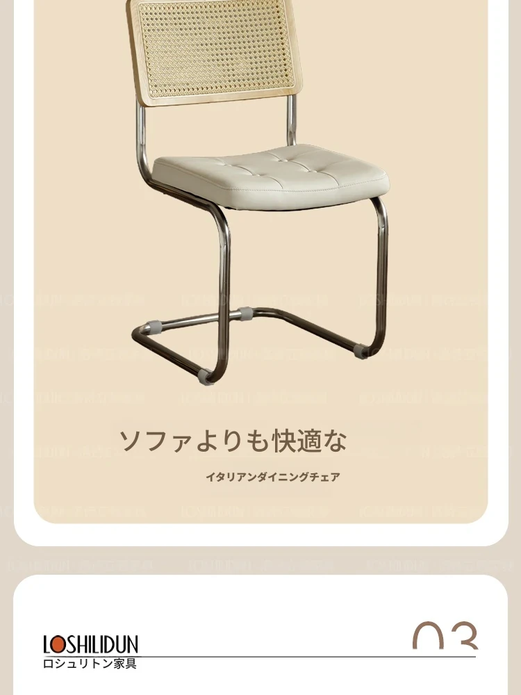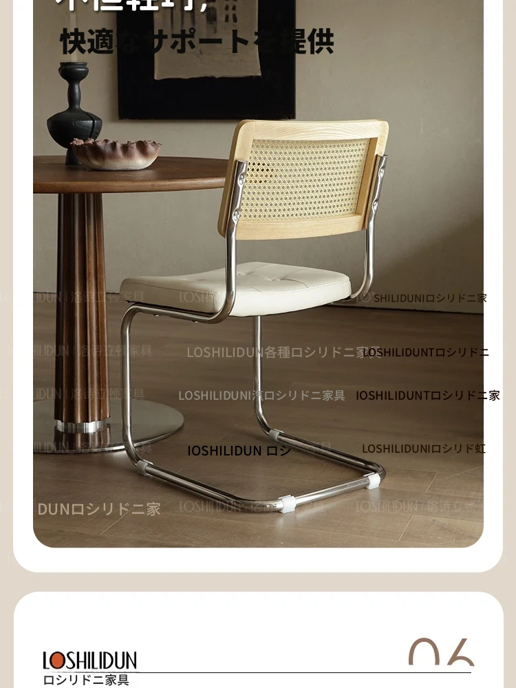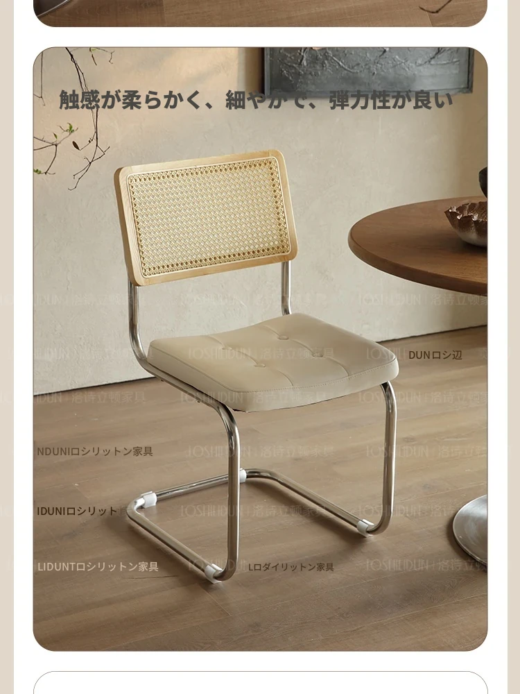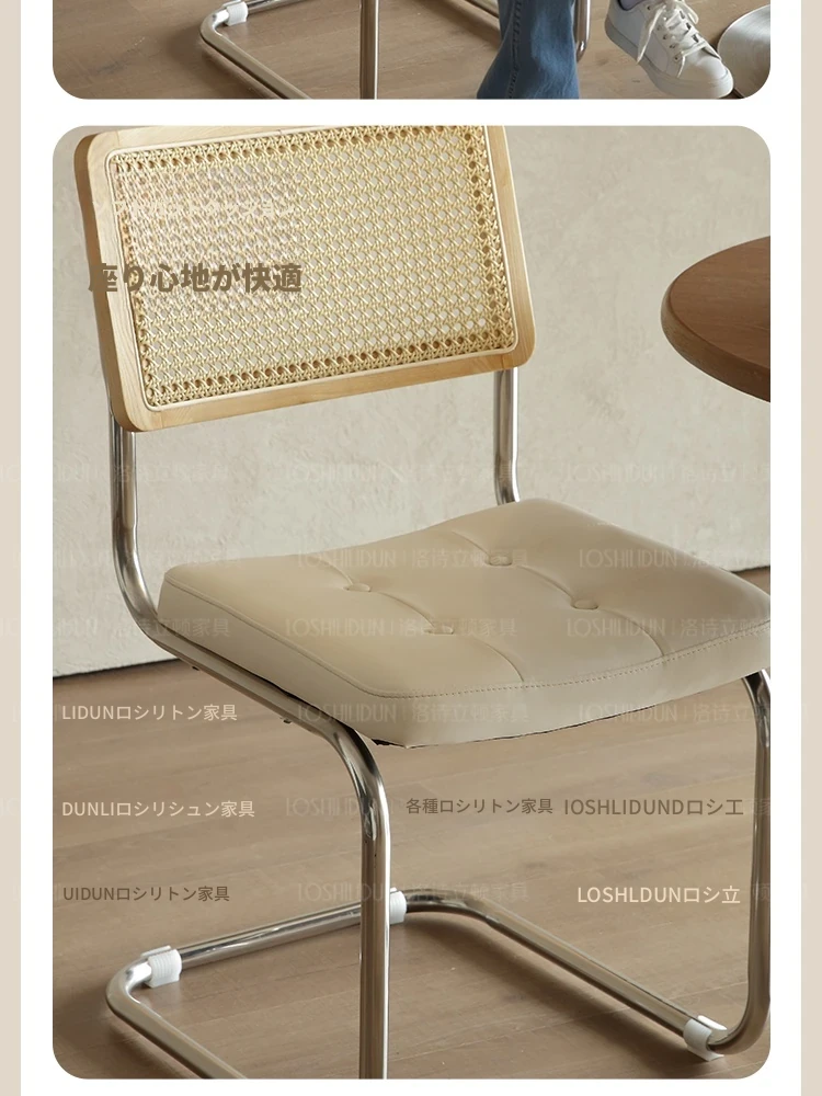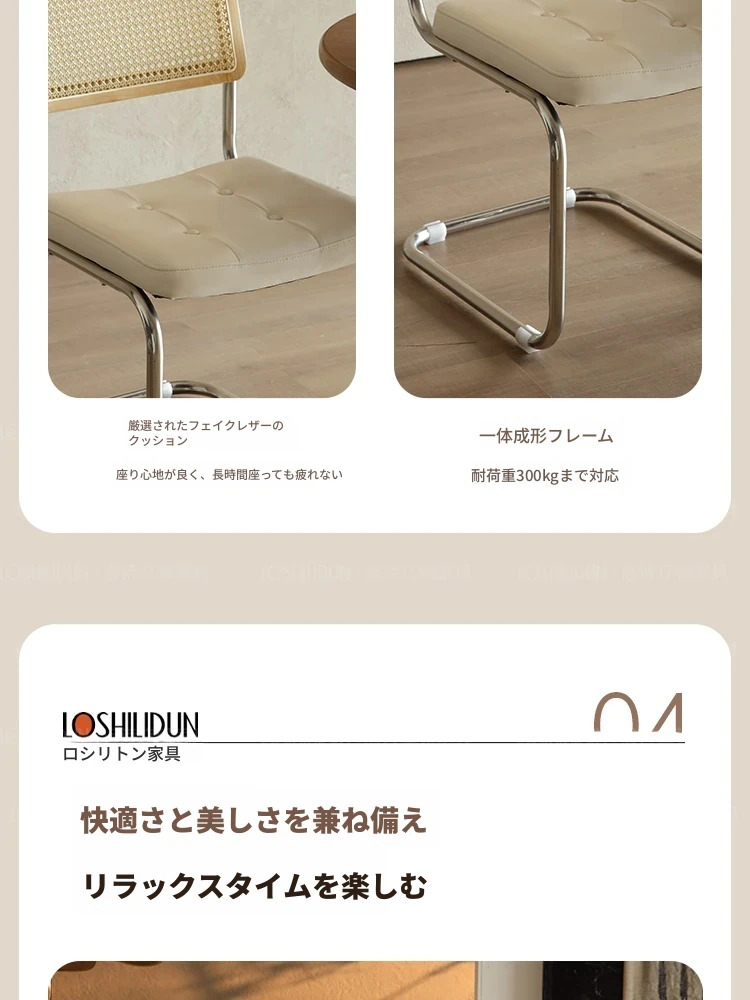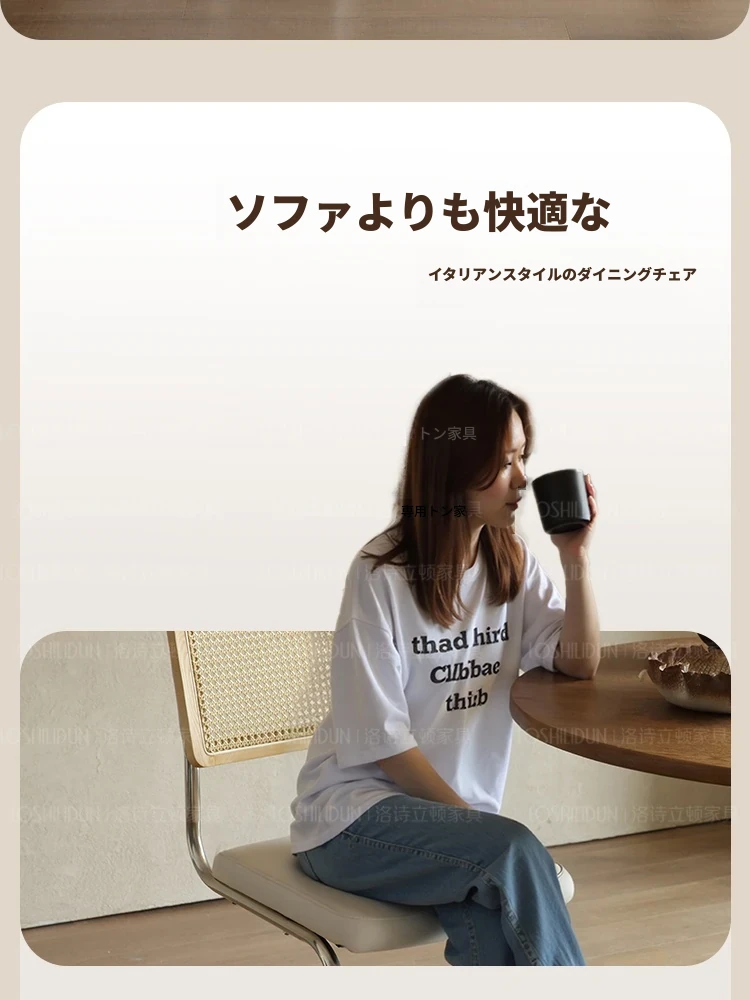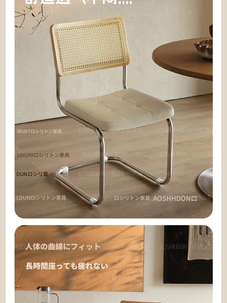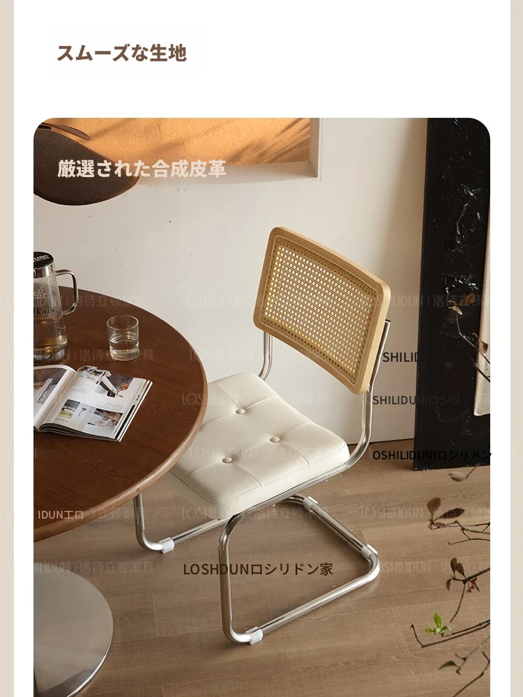 フランス風クリームカラーのラタン編みダイニングチェア - おしゃれで快適な背もたれ付き、レトロスタイルの新作2025年版。自宅のダイニングを華やかに彩る一品!