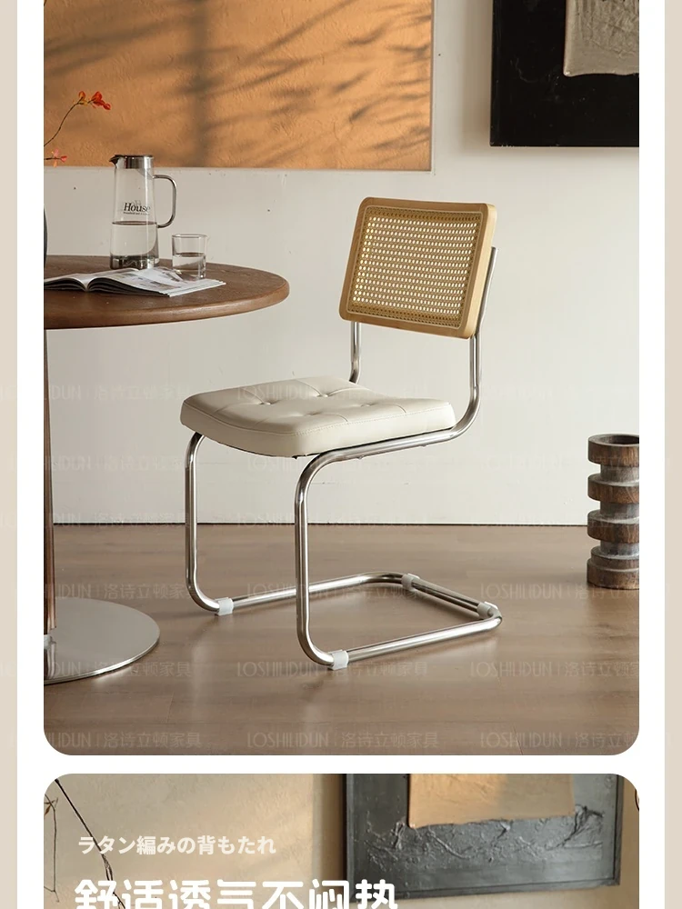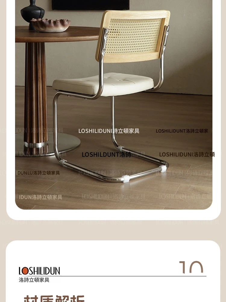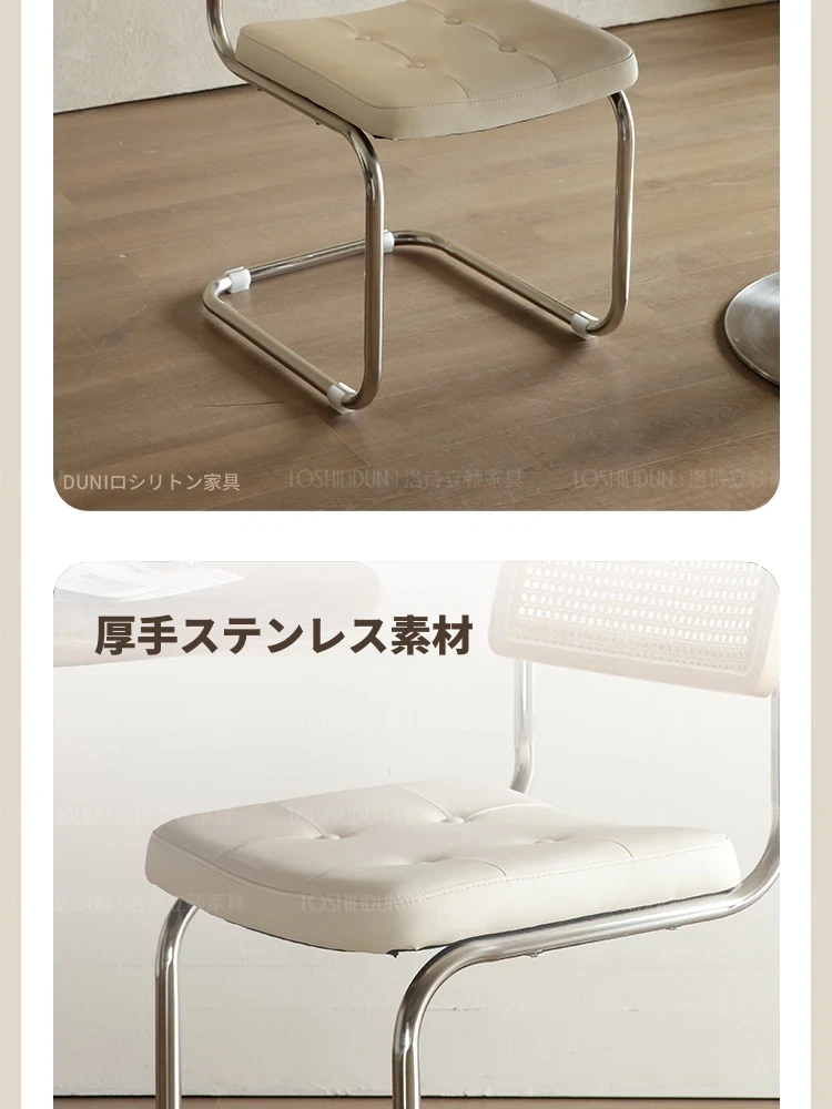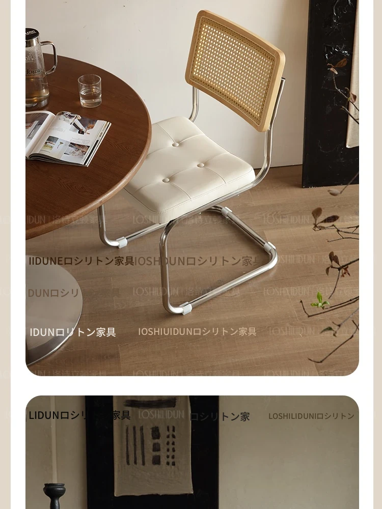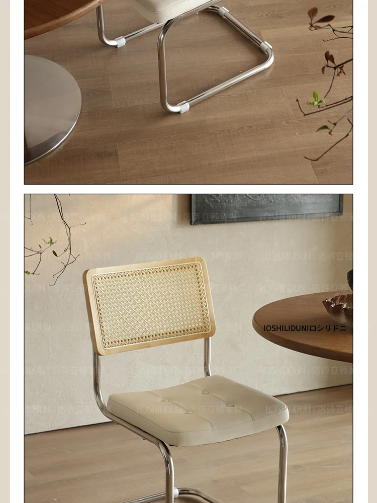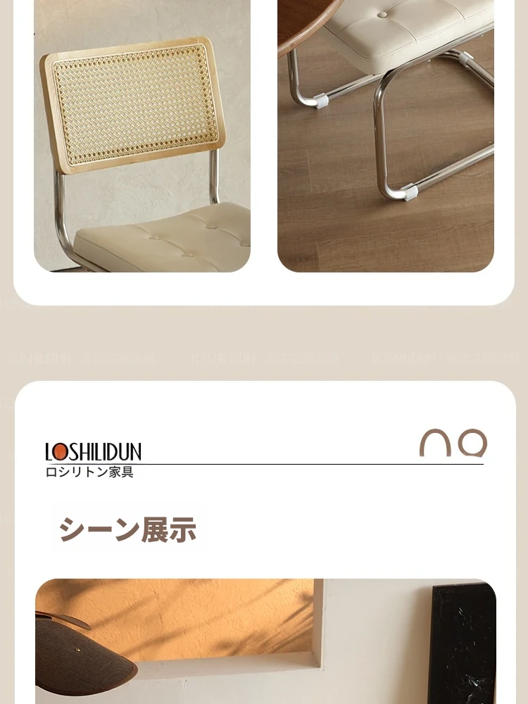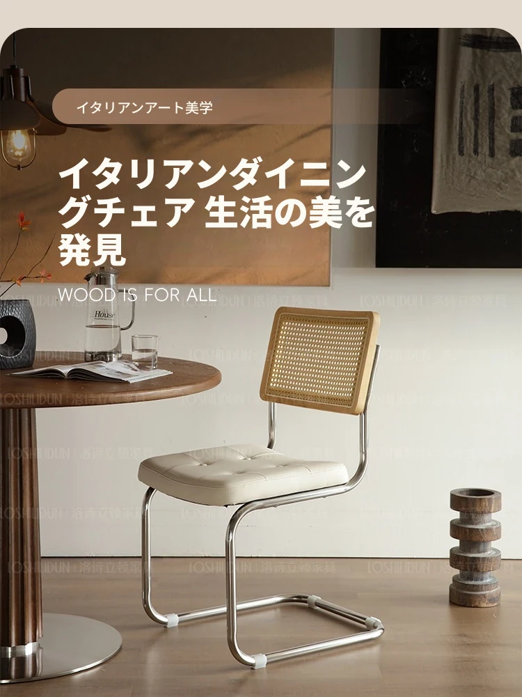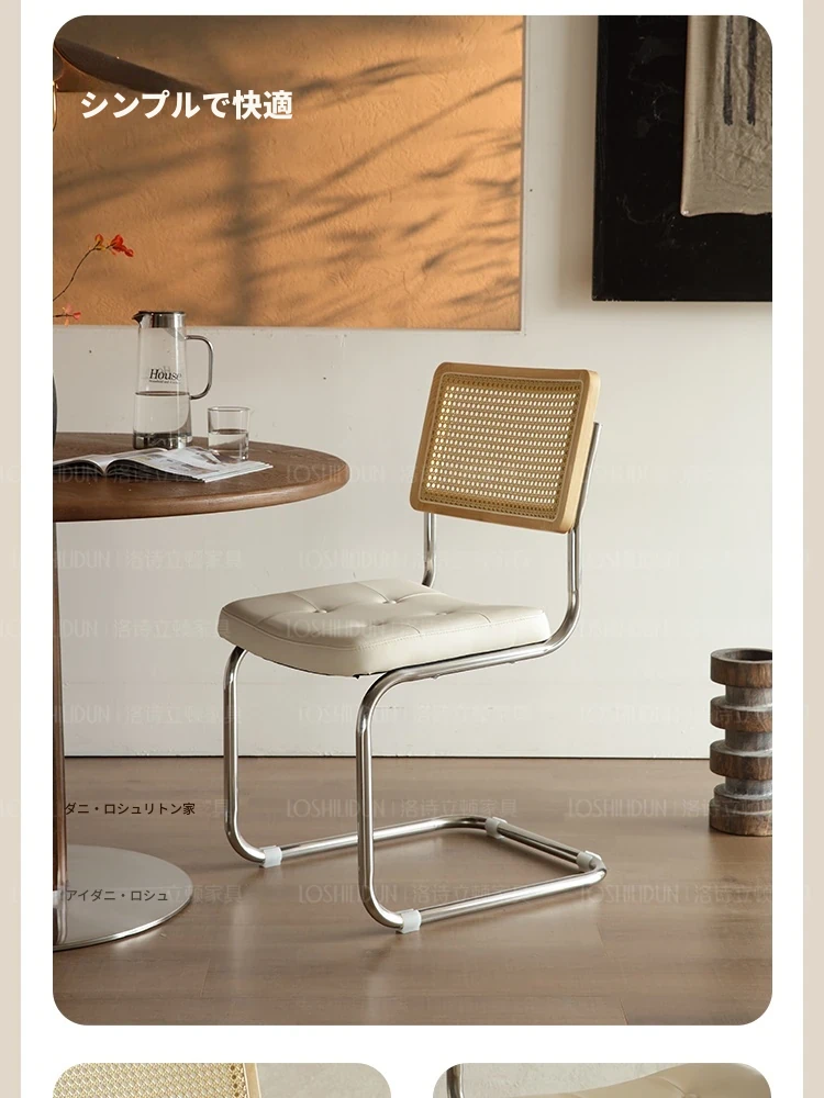 フランス風クリームカラーのラタン編みダイニングチェア - おしゃれで快適な背もたれ付き、レトロスタイルの新作2025年版。自宅のダイニングを華やかに彩る一品!