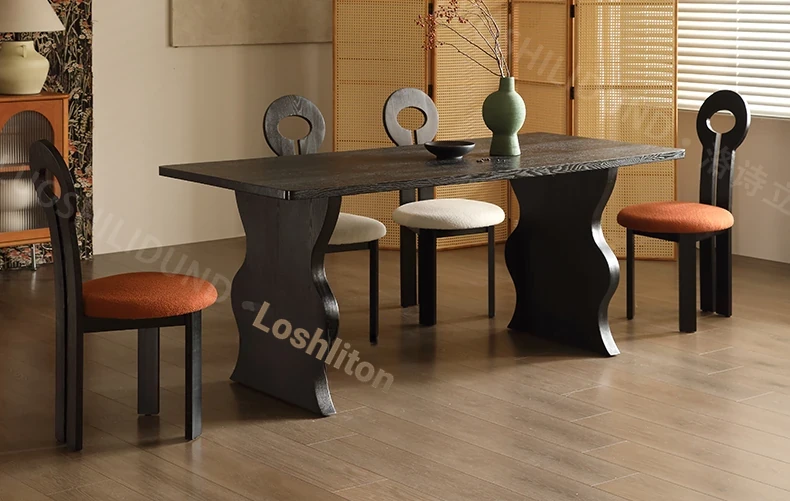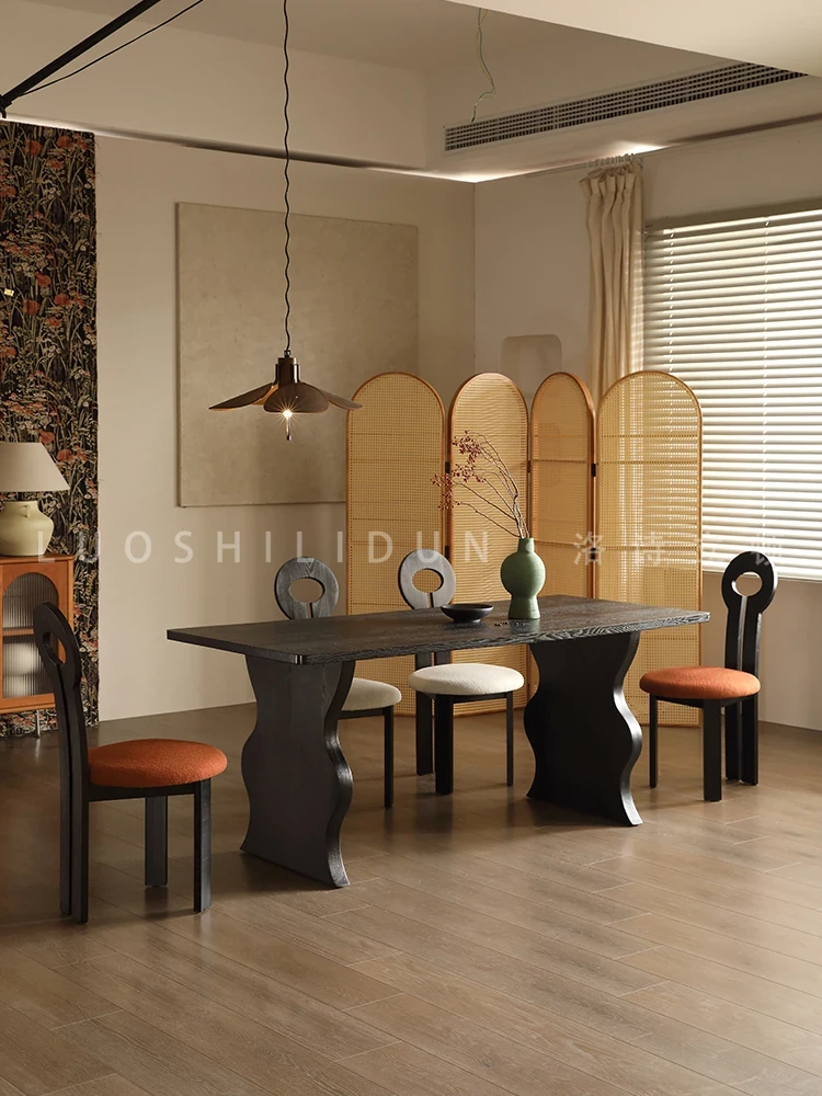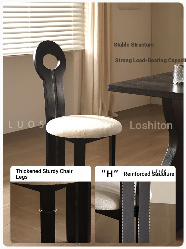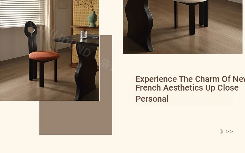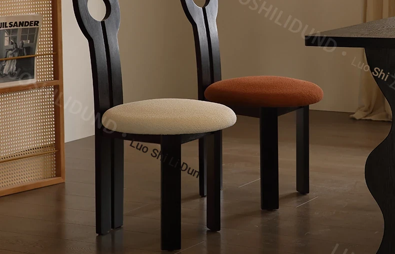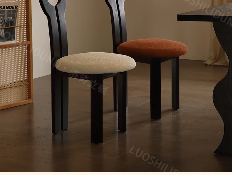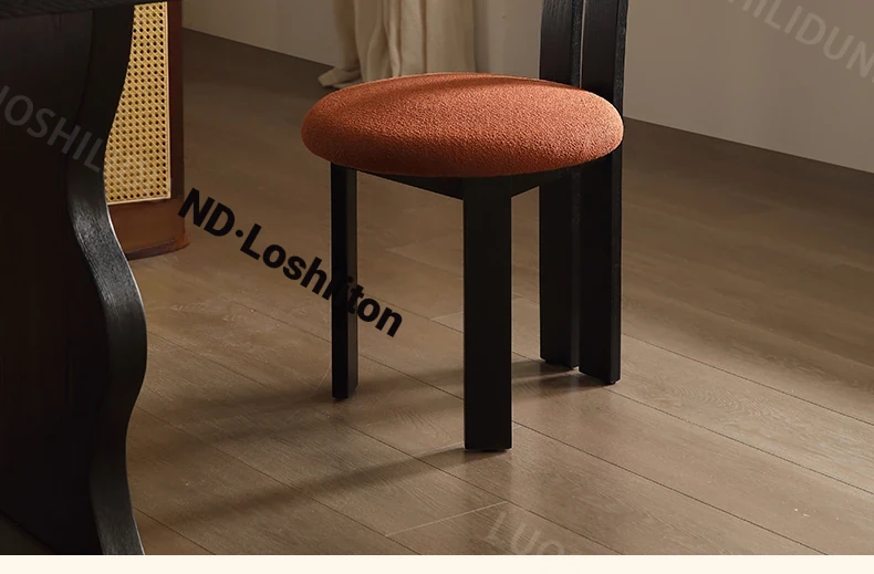 French Vintage Nordic Solid Wood Dining Chair - Elegant Key Chair for Home Dining Table, Chic Makeup Stool with a Touch of Antique Luxury