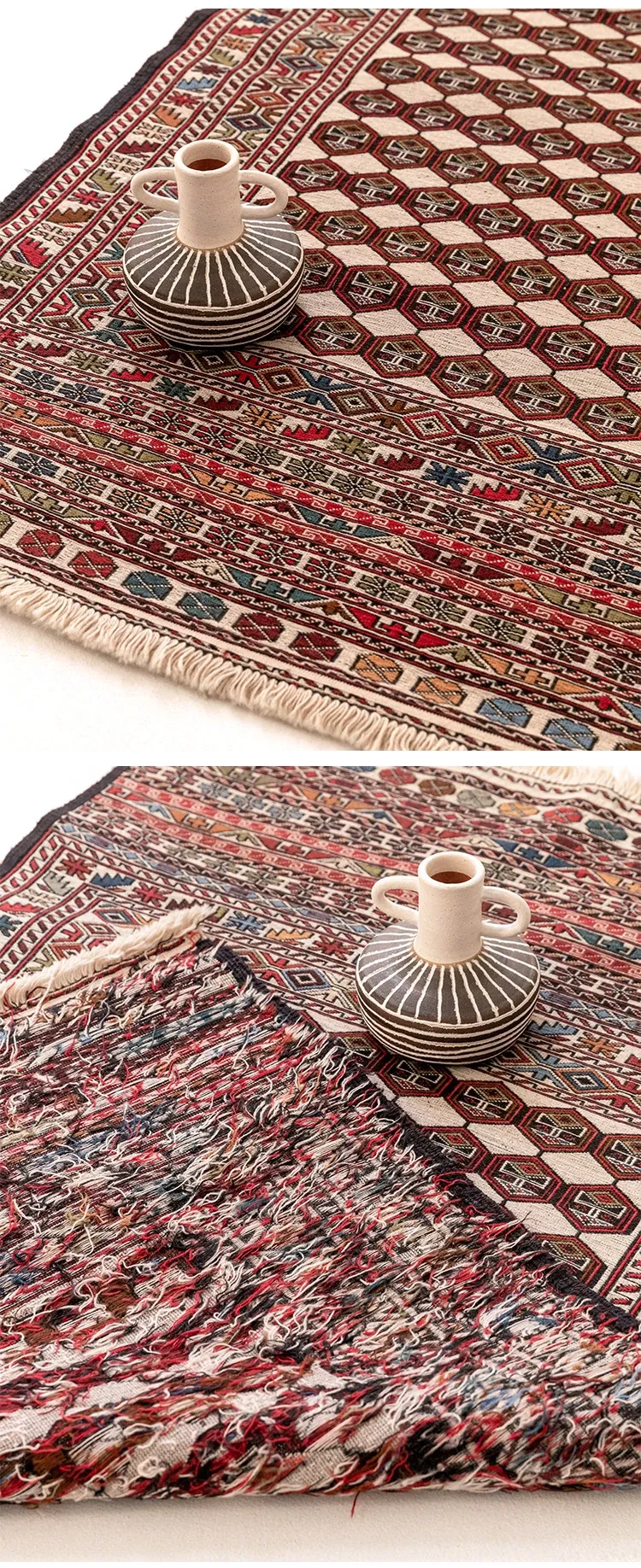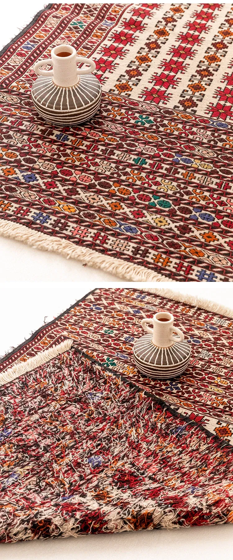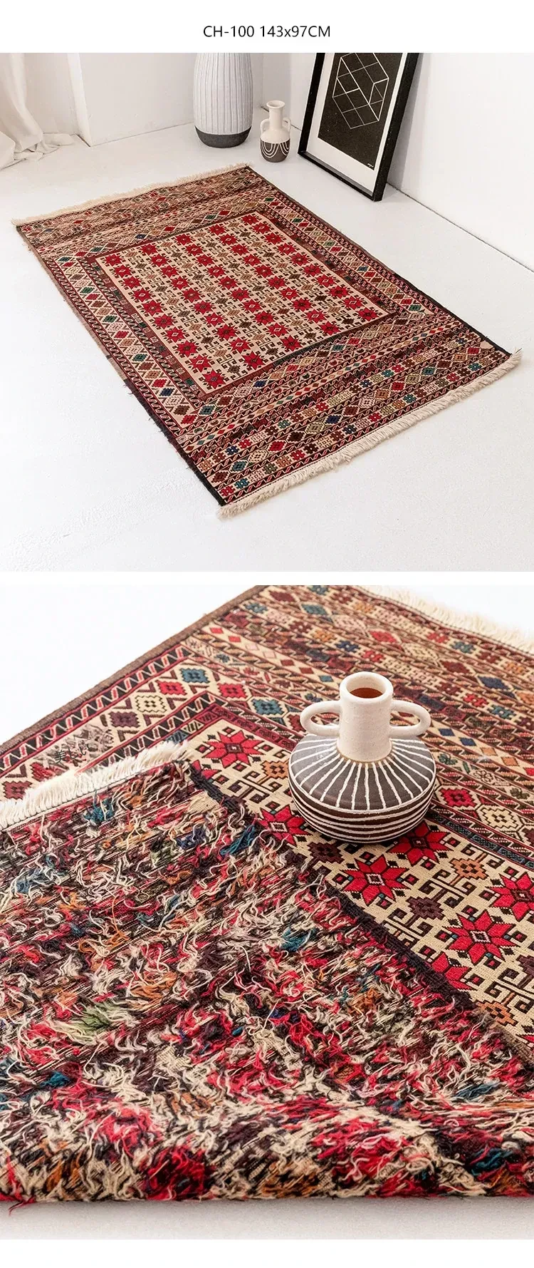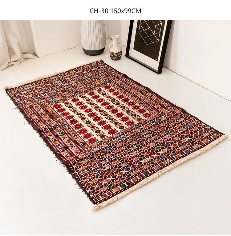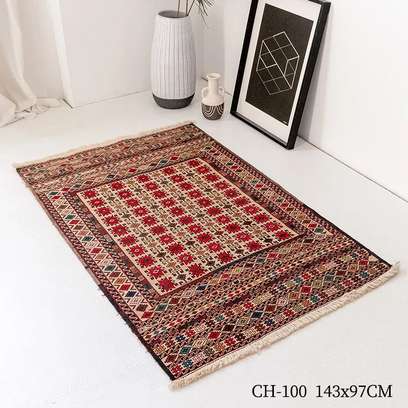 アフガニスタン直輸入 手作り結び羊毛ラグ カラフルなペルシャ風ヴィンテージデザイン リビングルーム用、玄関マット、ベッドサイドマットに最適!接着剤不使用で安心・安全な一品。