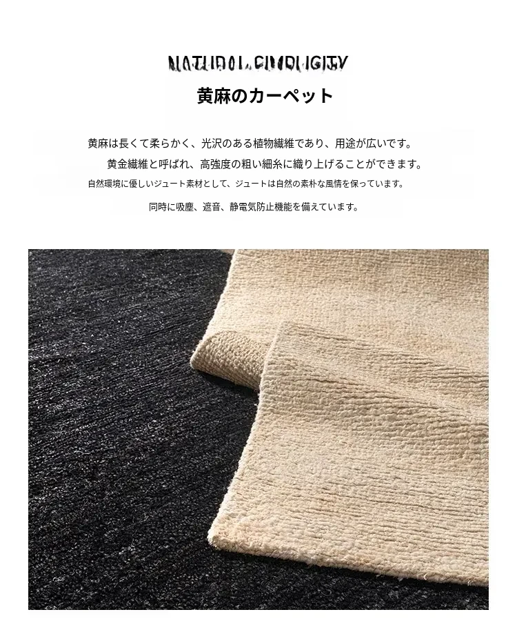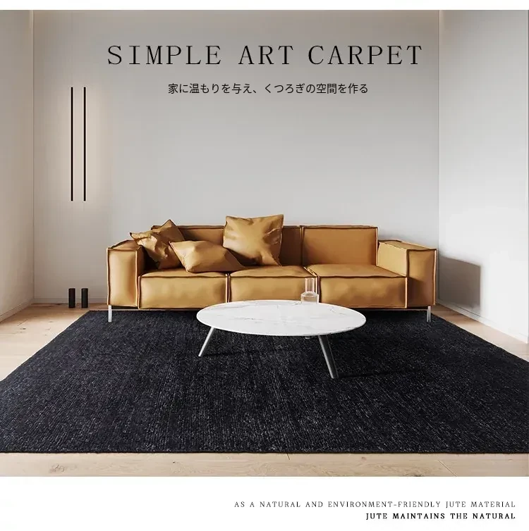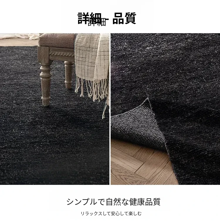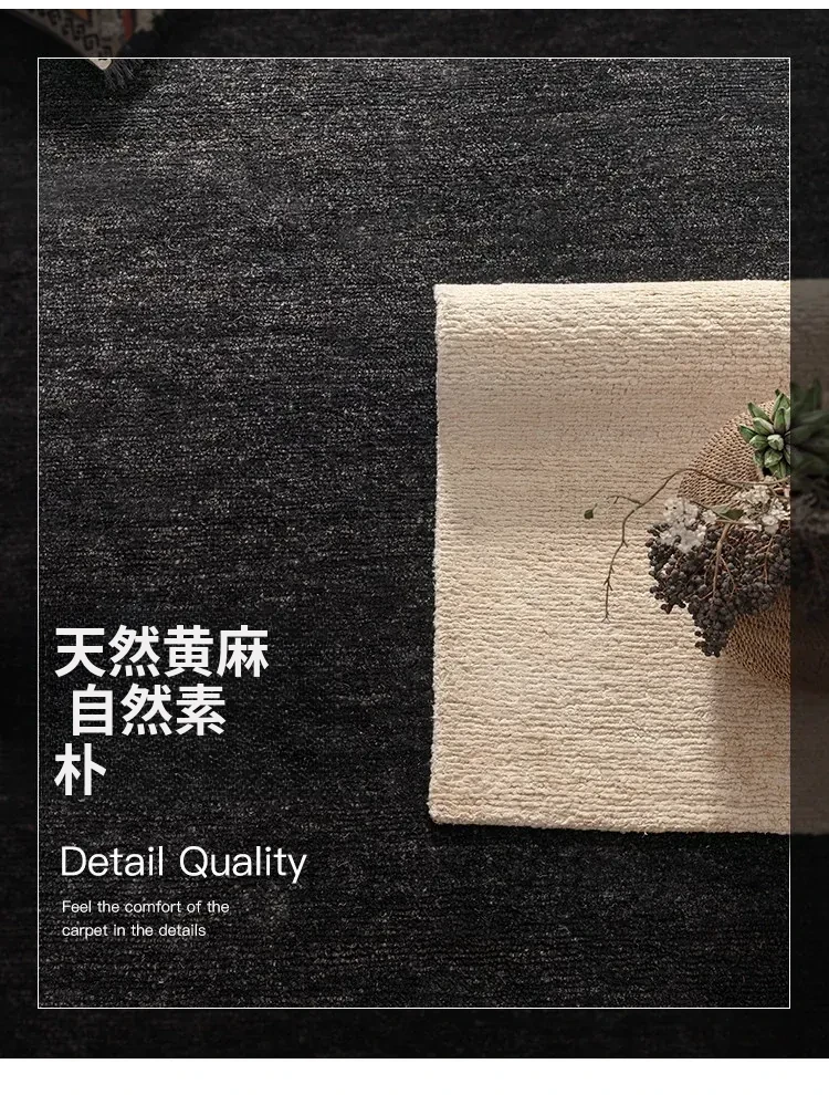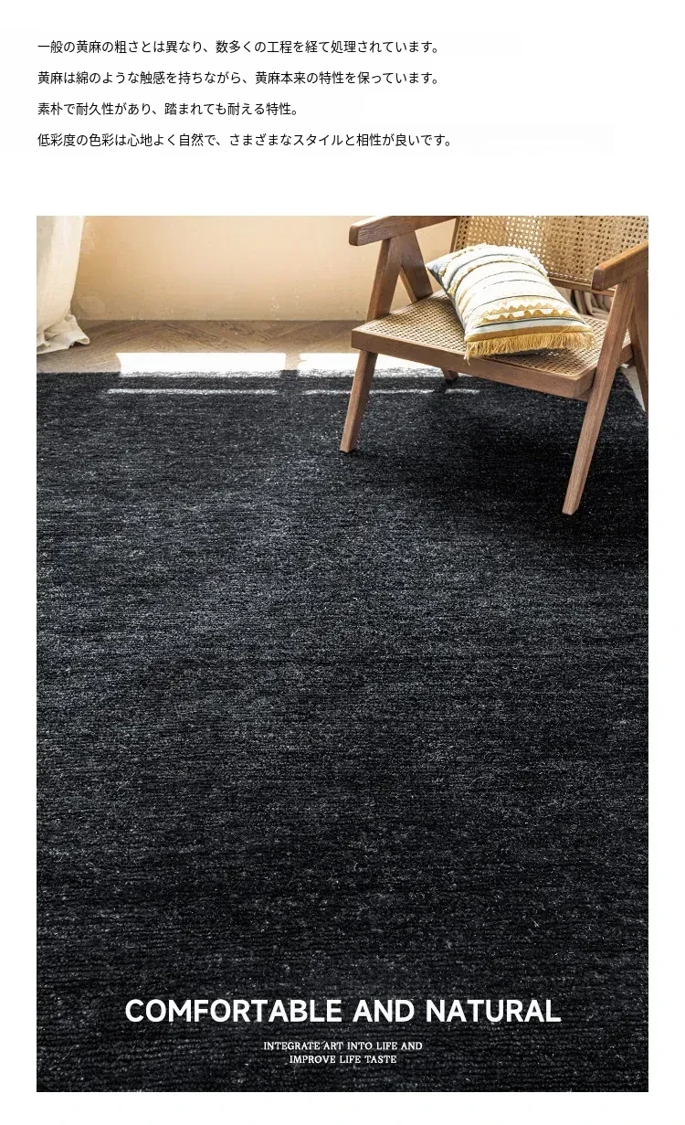 視覚的な美しさと快適さを兼ね備えた輸入ソファ用ラグ - 手作りの麻素材、和風・中華風デザイン、洗練されたブラックカラーで高級感漂う書斎やリビングに最適なテーブルマット。