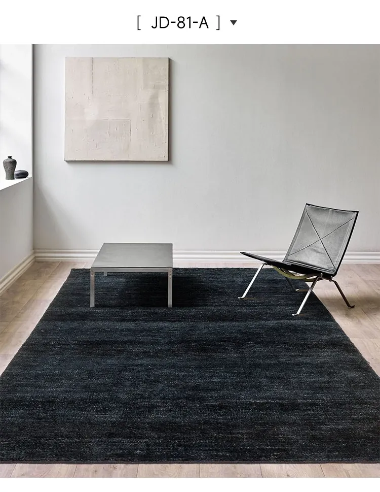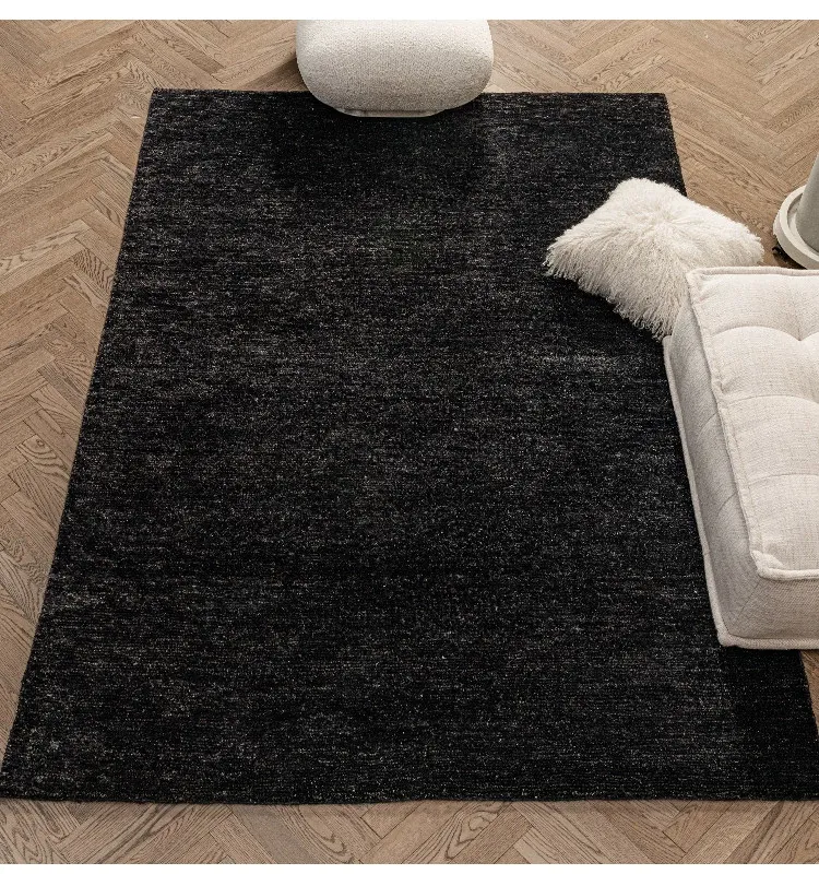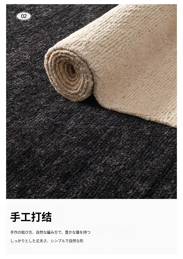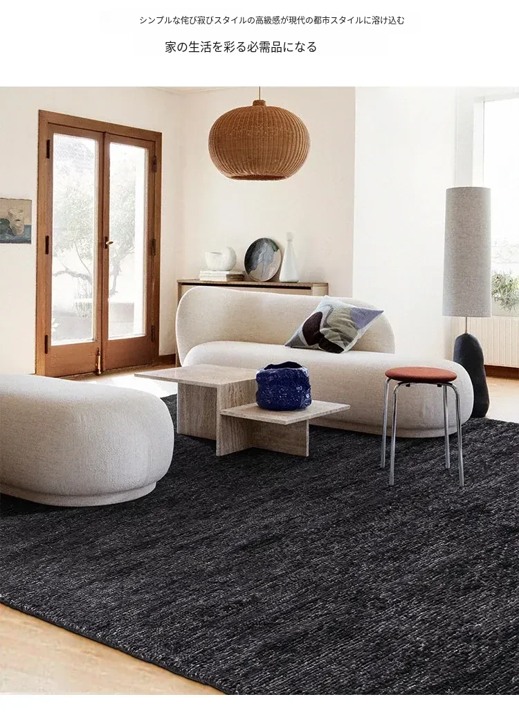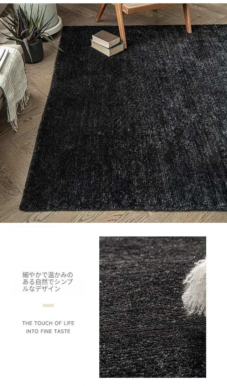視覚的な美しさと快適さを兼ね備えた輸入ソファ用ラグ - 手作りの麻素材、和風・中華風デザイン、洗練されたブラックカラーで高級感漂う書斎やリビングに最適なテーブルマット。