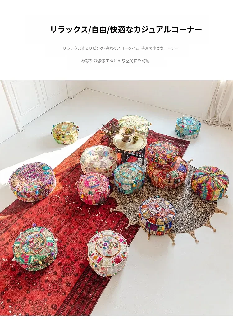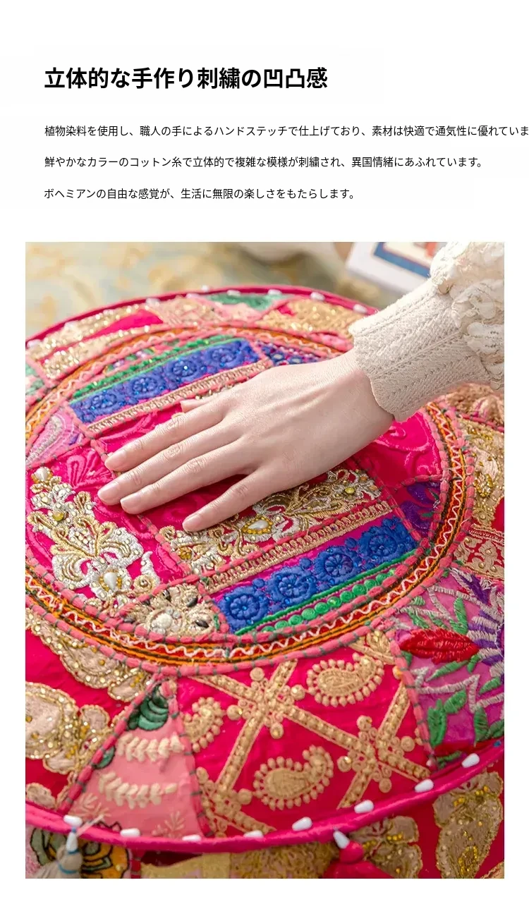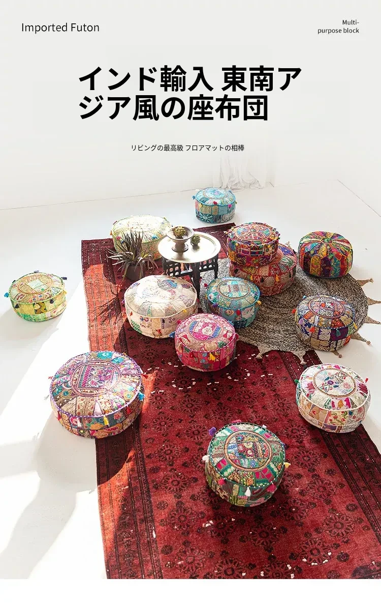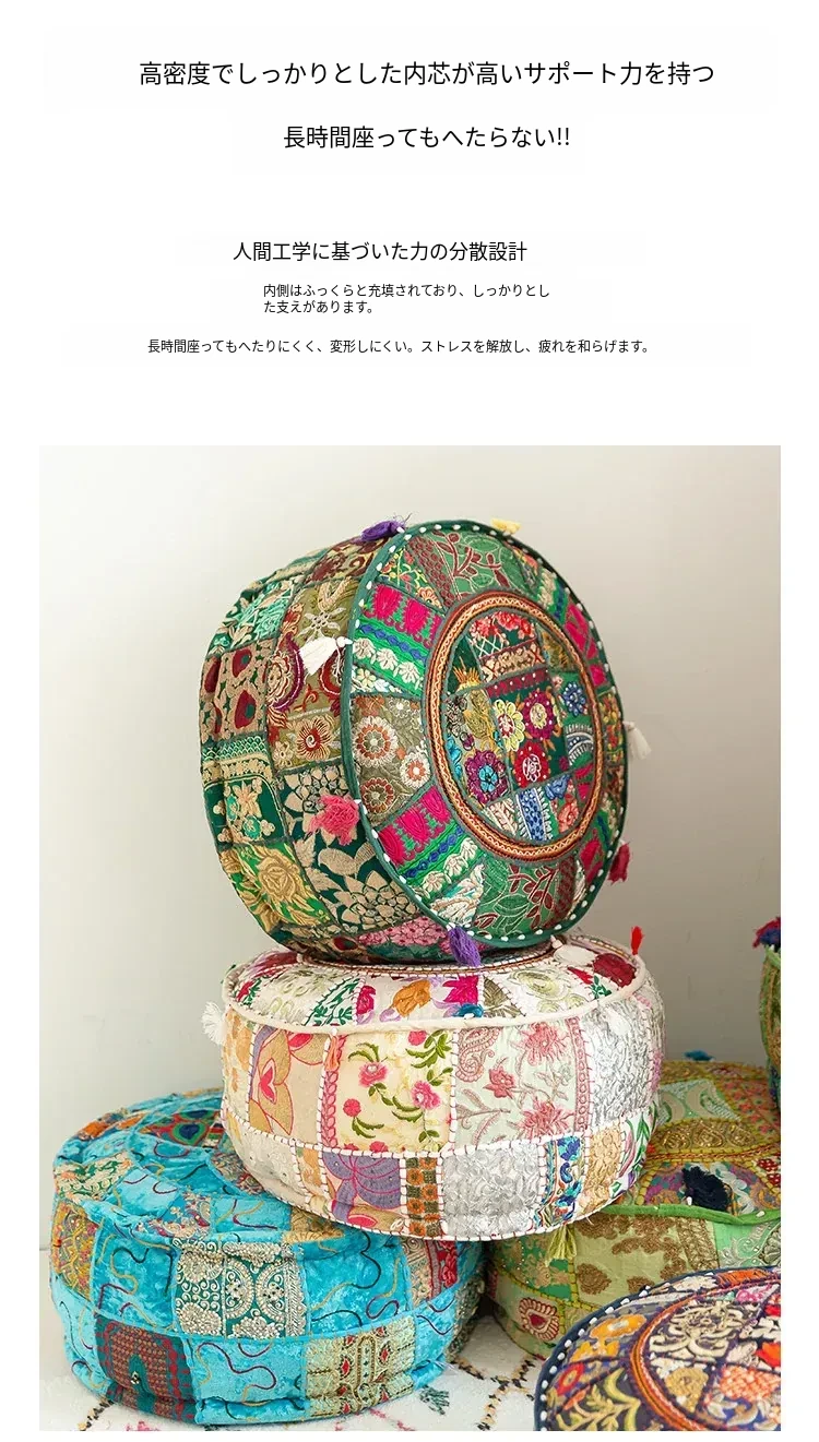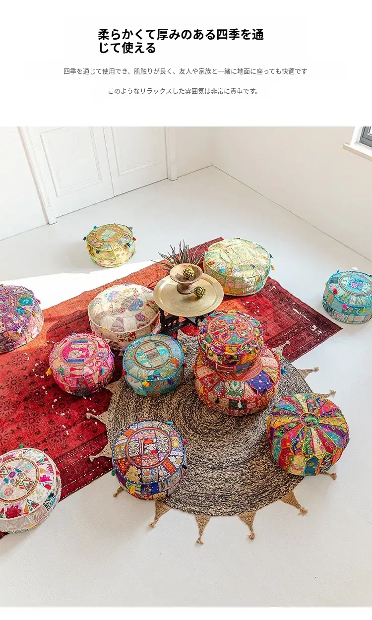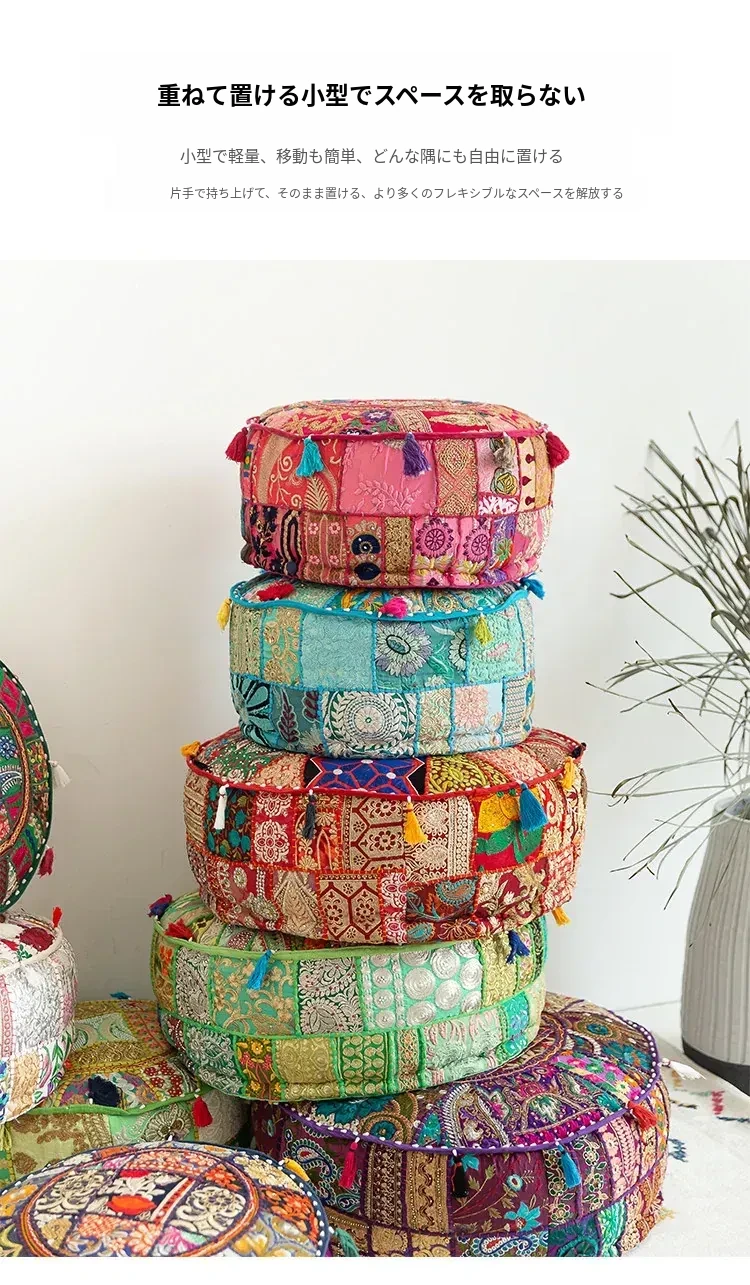 ビジュアルテイストの輸入手作り刺繍クッション、アメリカン民族風デザイン!タタミスタイルの座布団で、リビングやバルコニー、窓辺にぴったりのインテリアアイテムです。快適さとスタイルを両立させたおしゃれな一品をお見逃しなく!