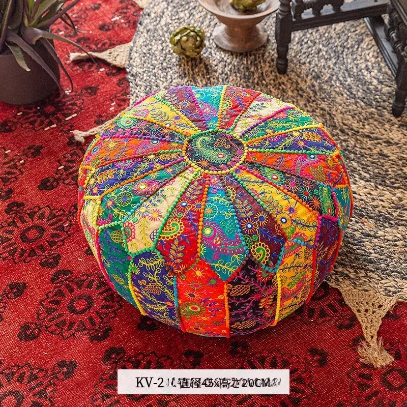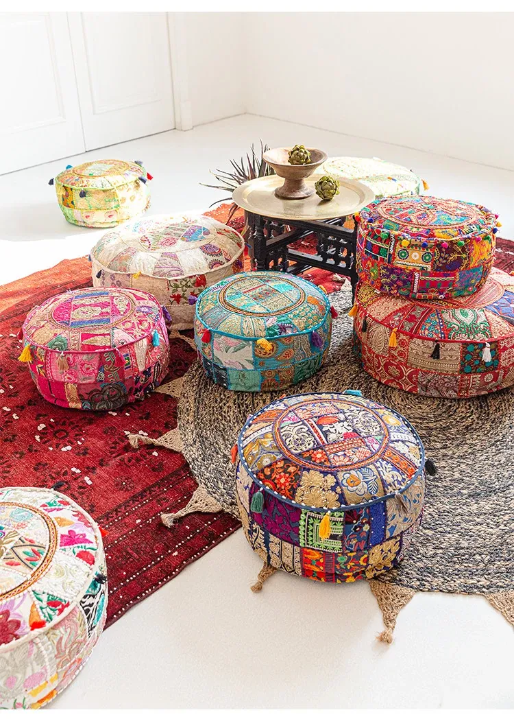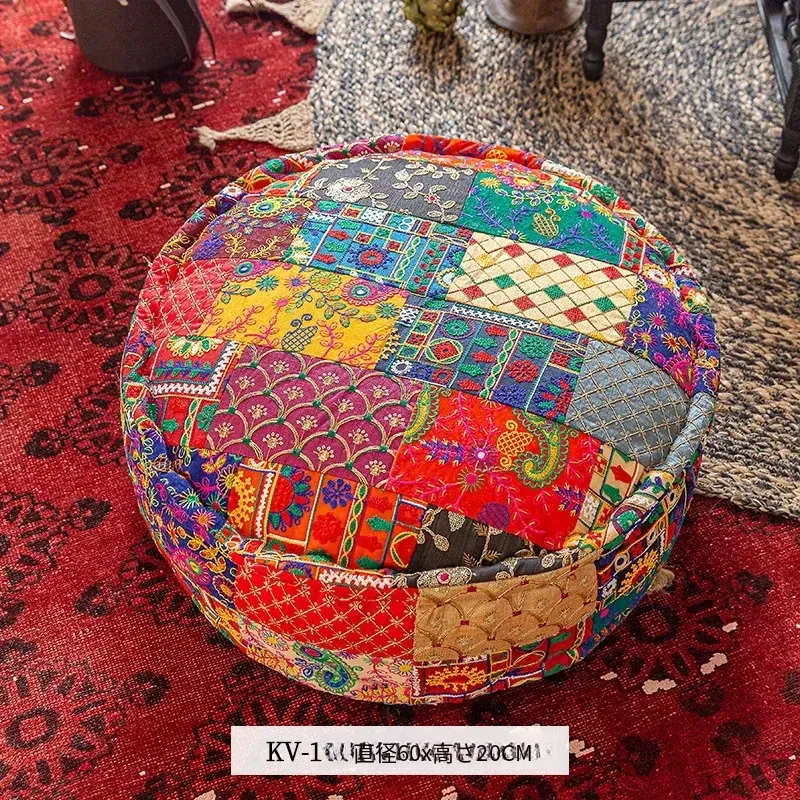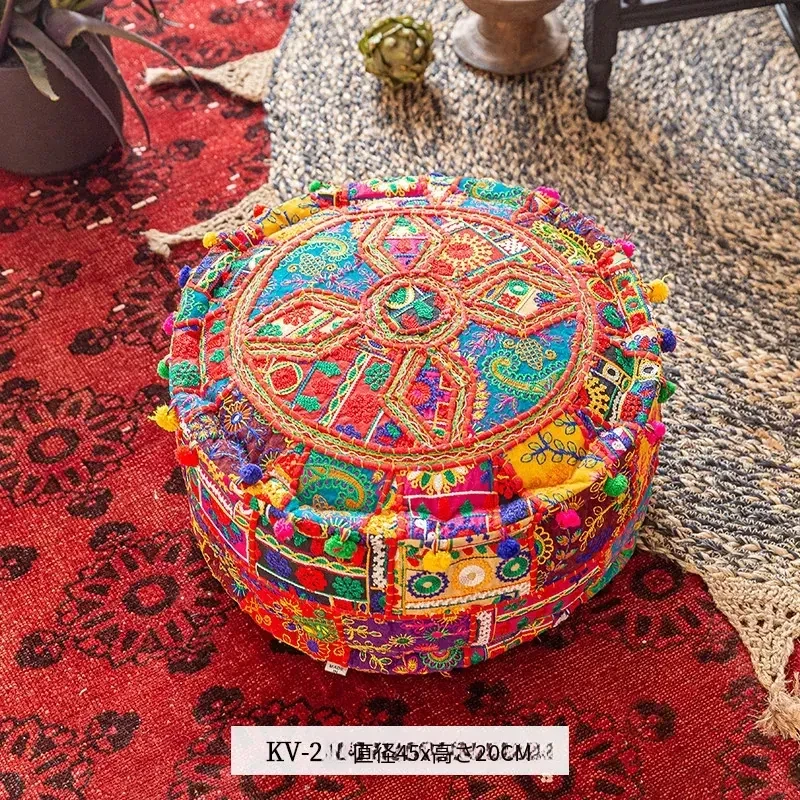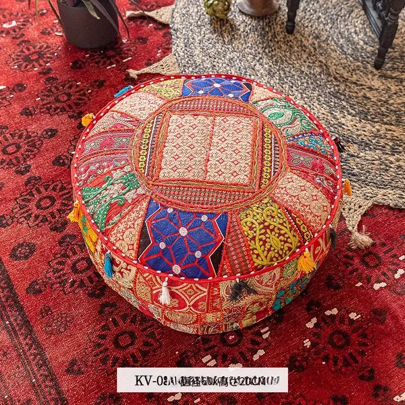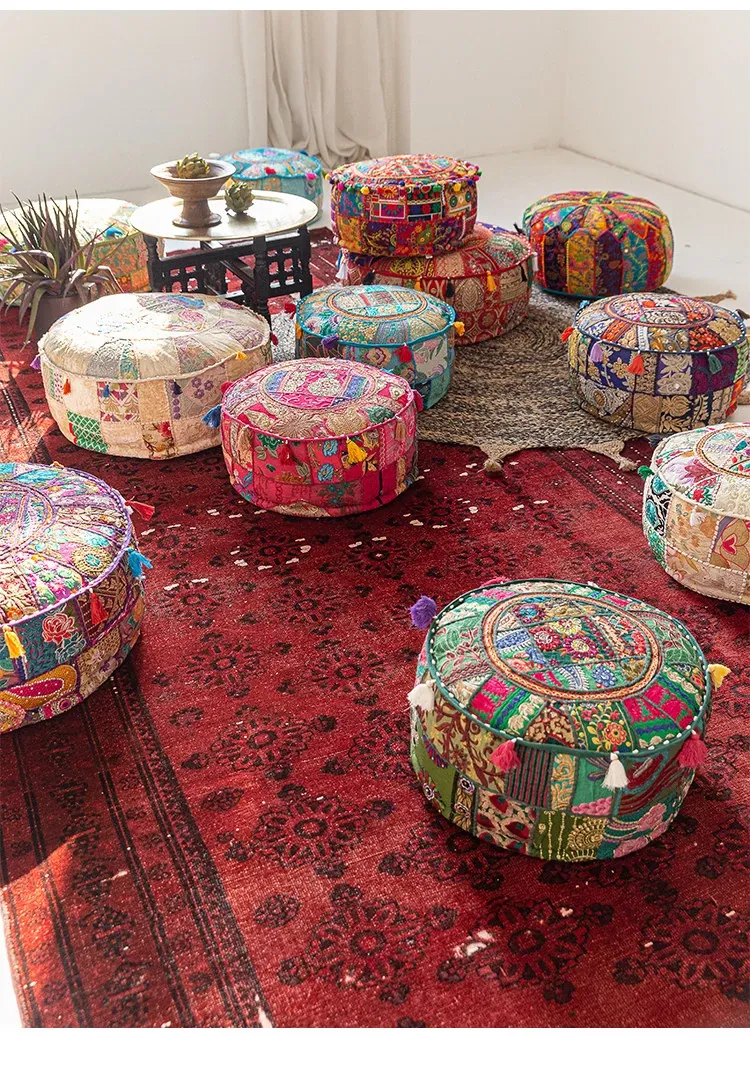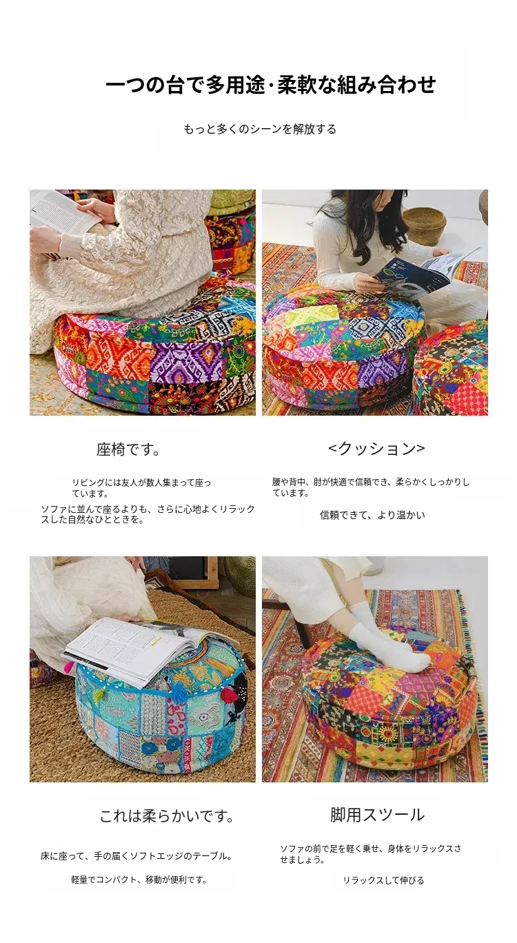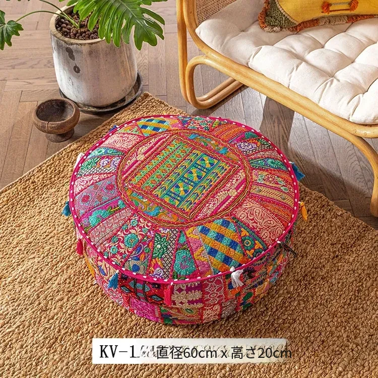 ビジュアルテイストの輸入手作り刺繍クッション、アメリカン民族風デザイン!タタミスタイルの座布団で、リビングやバルコニー、窓辺にぴったりのインテリアアイテムです。快適さとスタイルを両立させたおしゃれな一品をお見逃しなく!