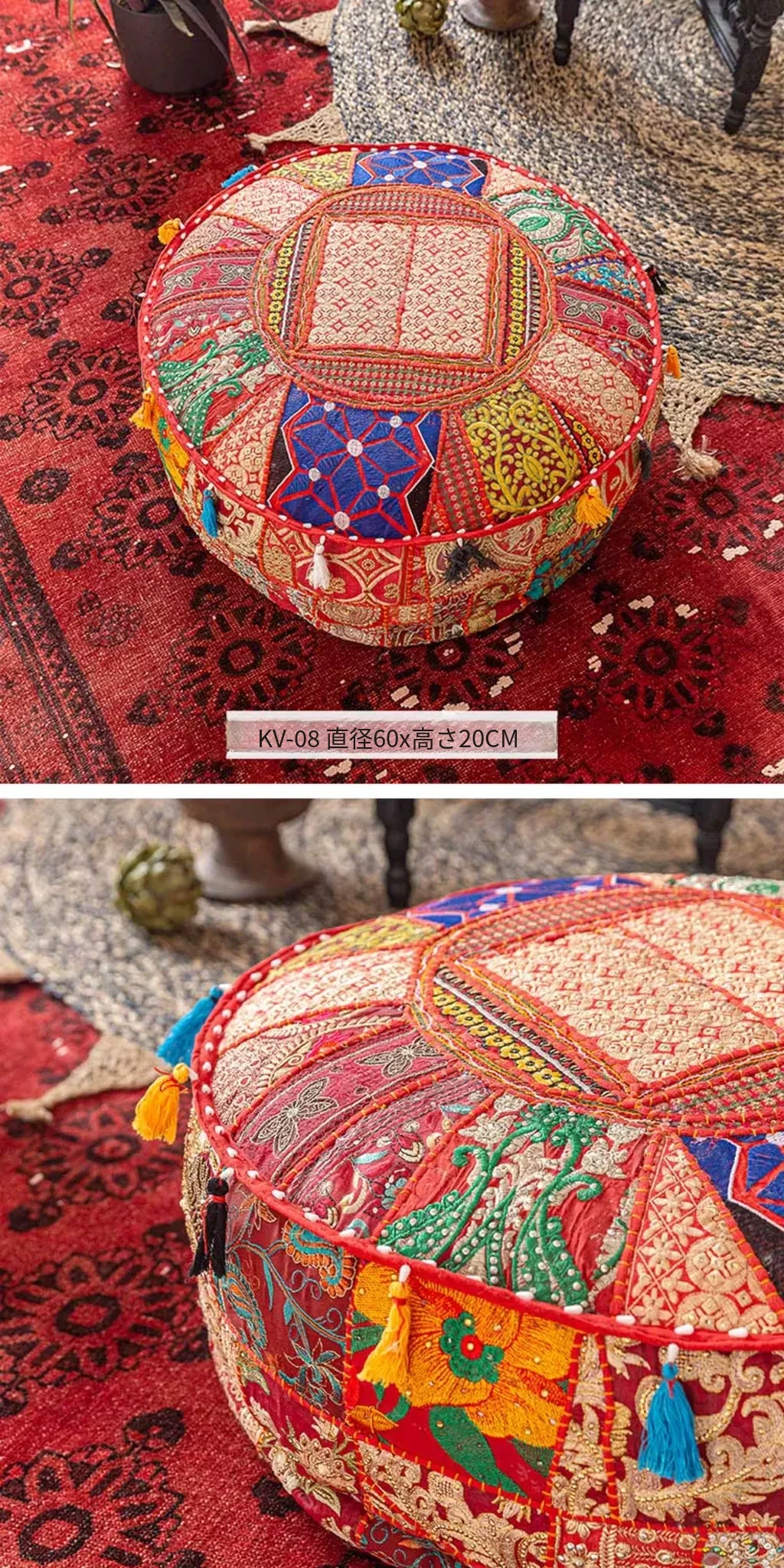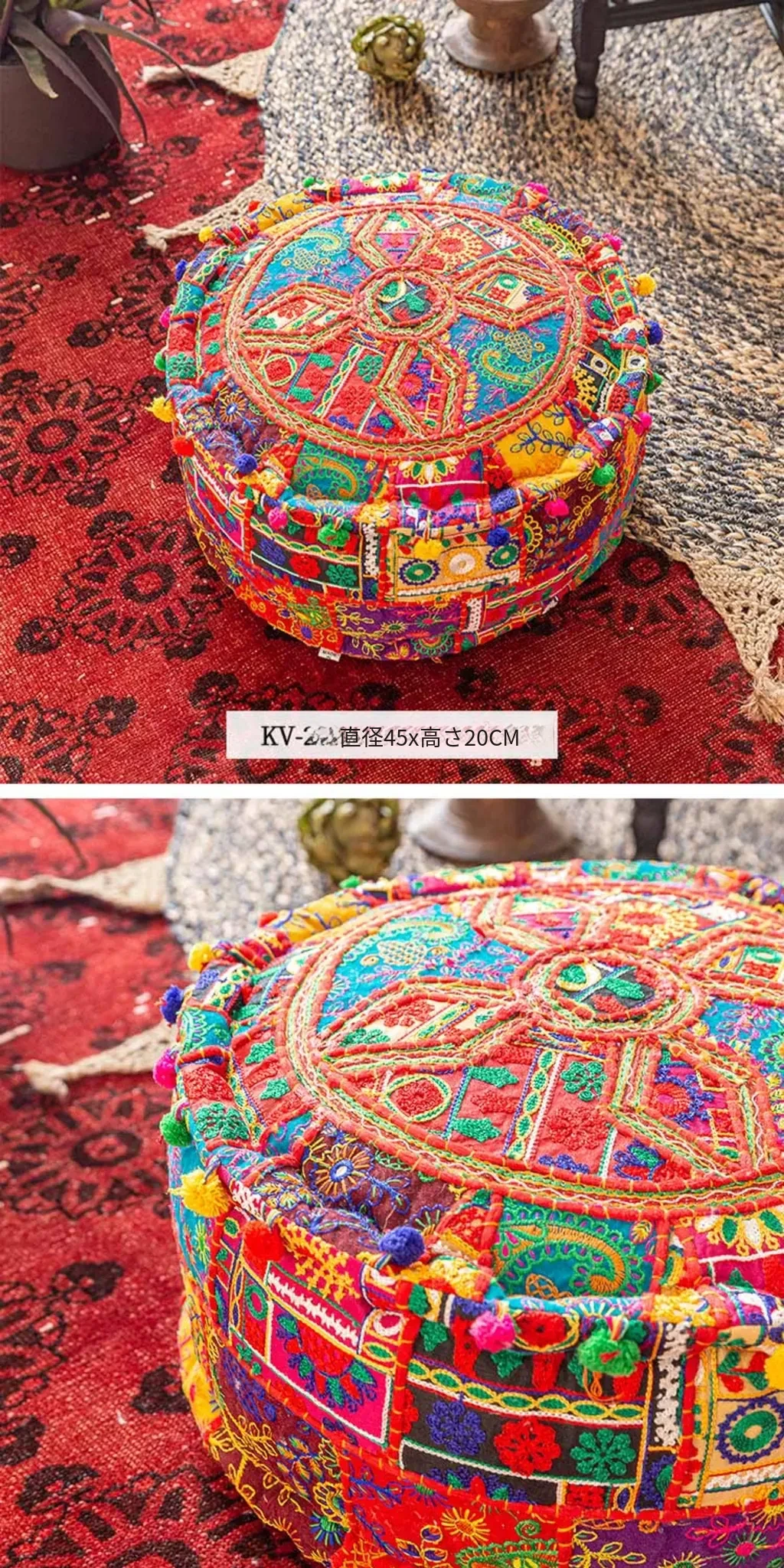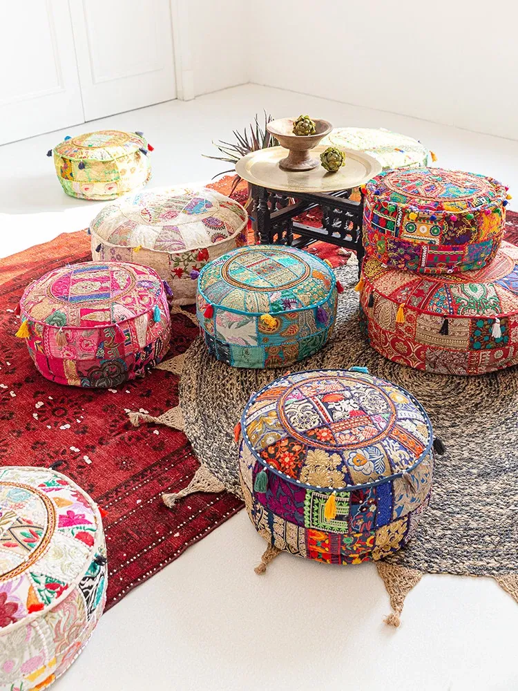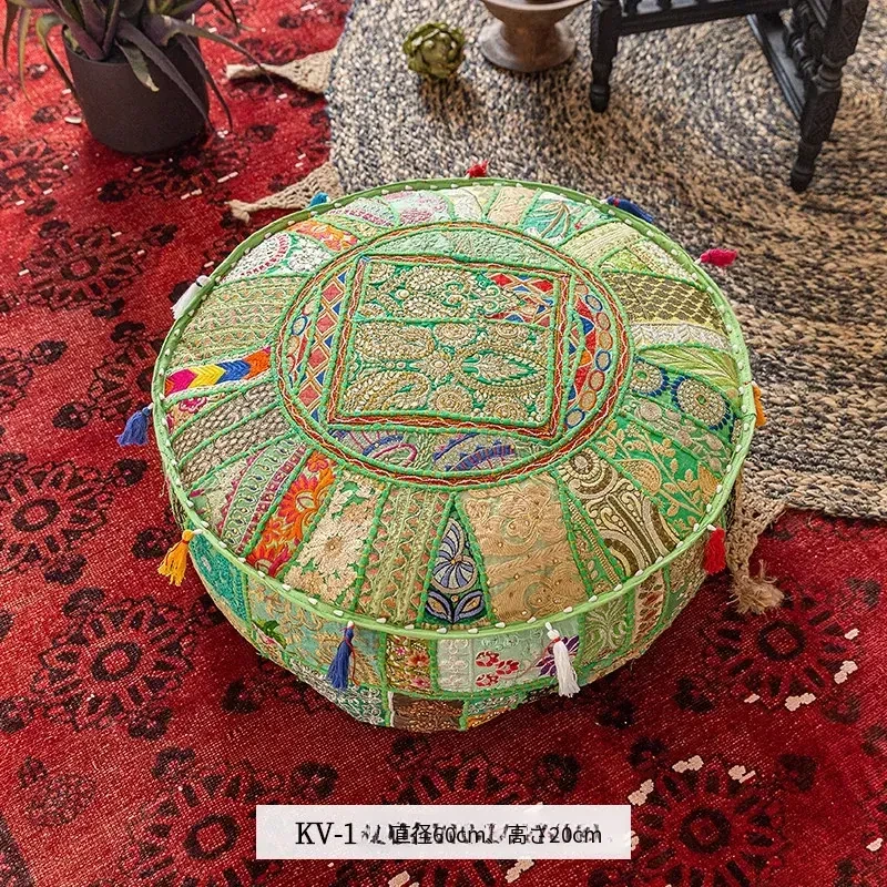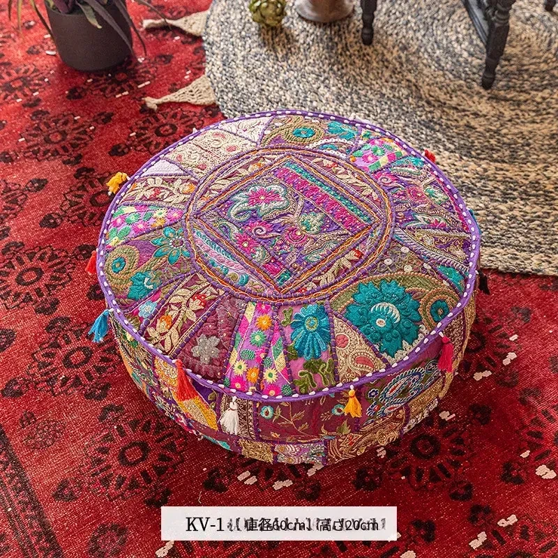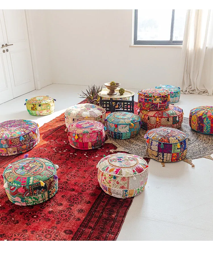 ビジュアルテイストの輸入手作り刺繍クッション、アメリカン民族風デザイン!タタミスタイルの座布団で、リビングやバルコニー、窓辺にぴったりのインテリアアイテムです。快適さとスタイルを両立させたおしゃれな一品をお見逃しなく!