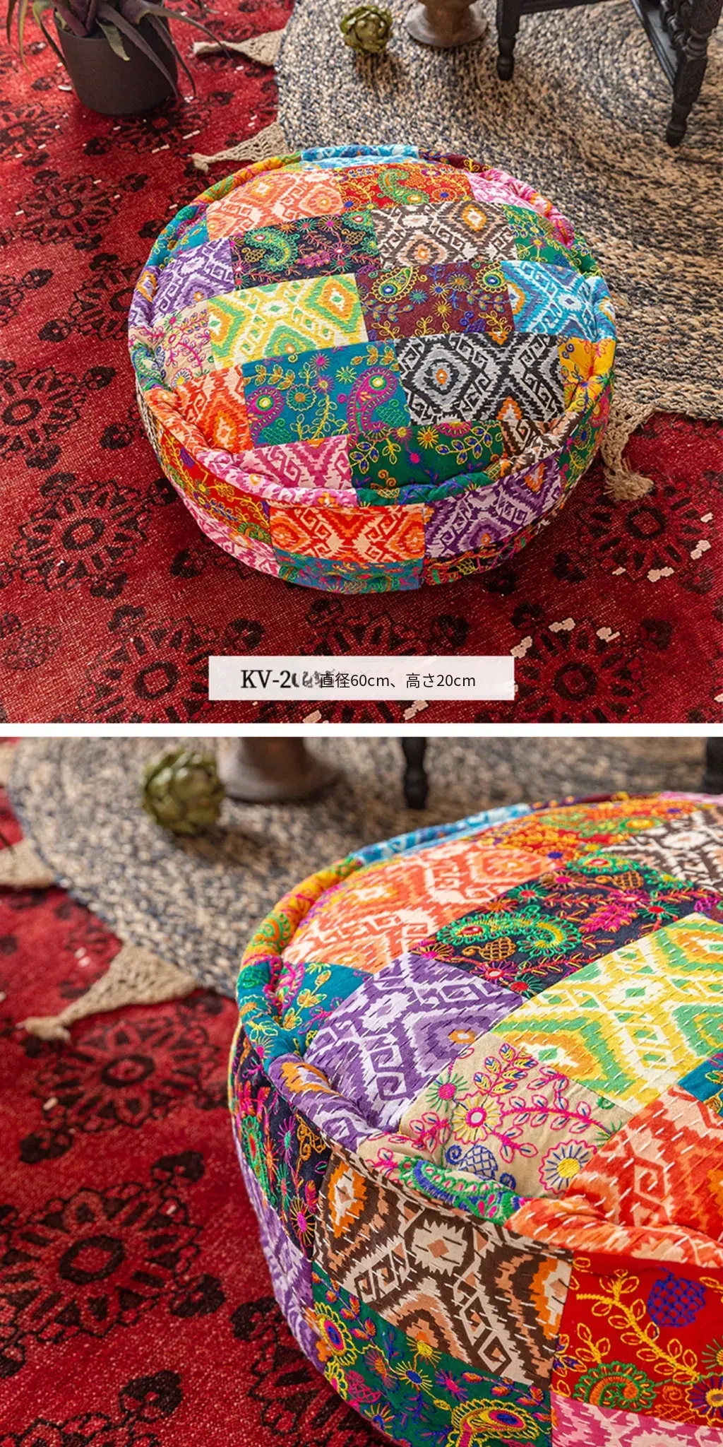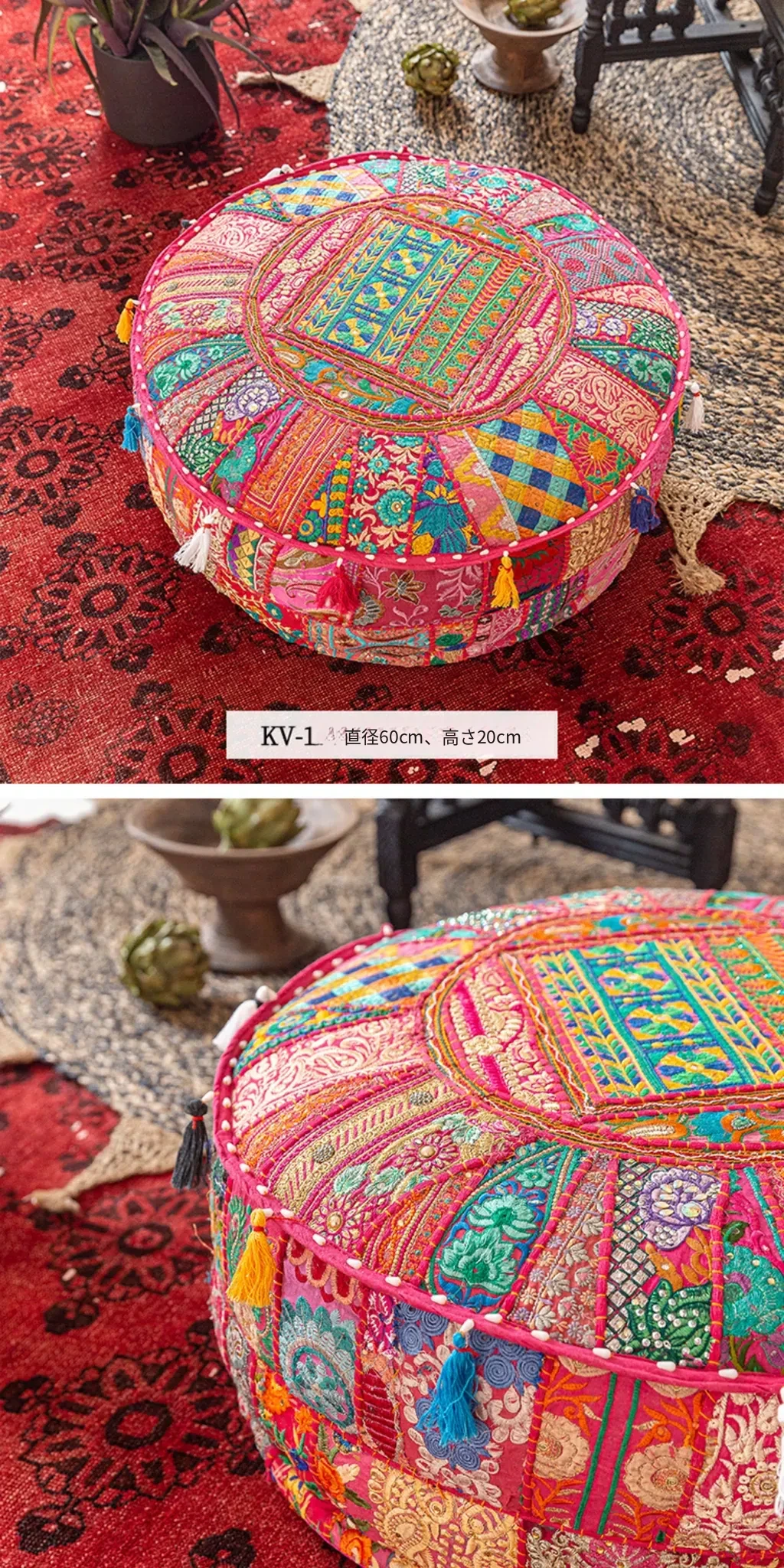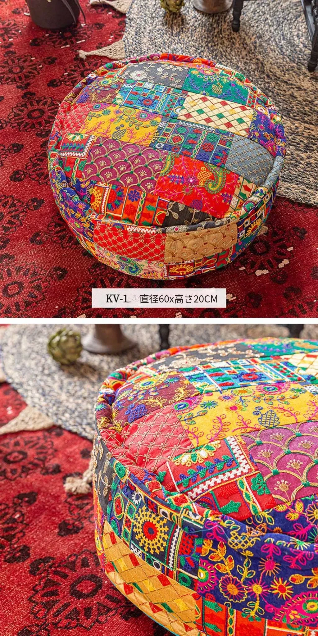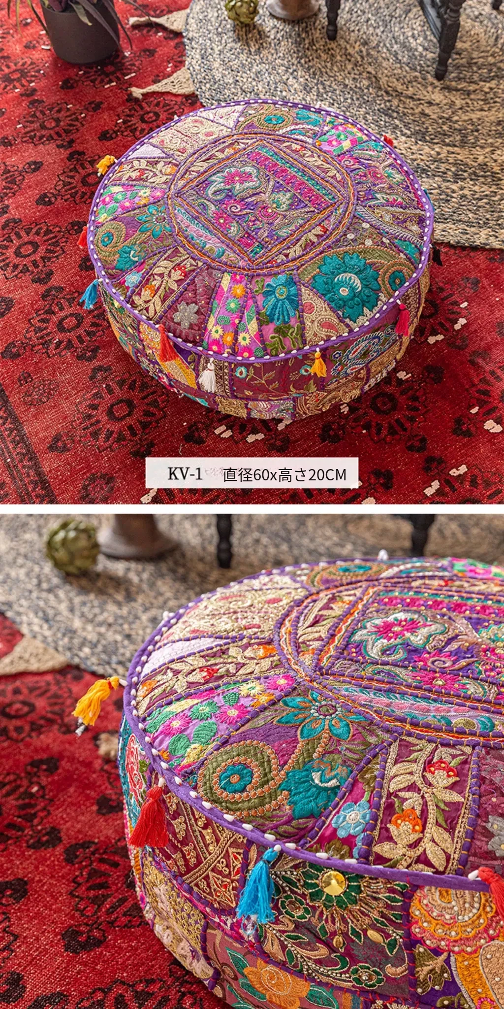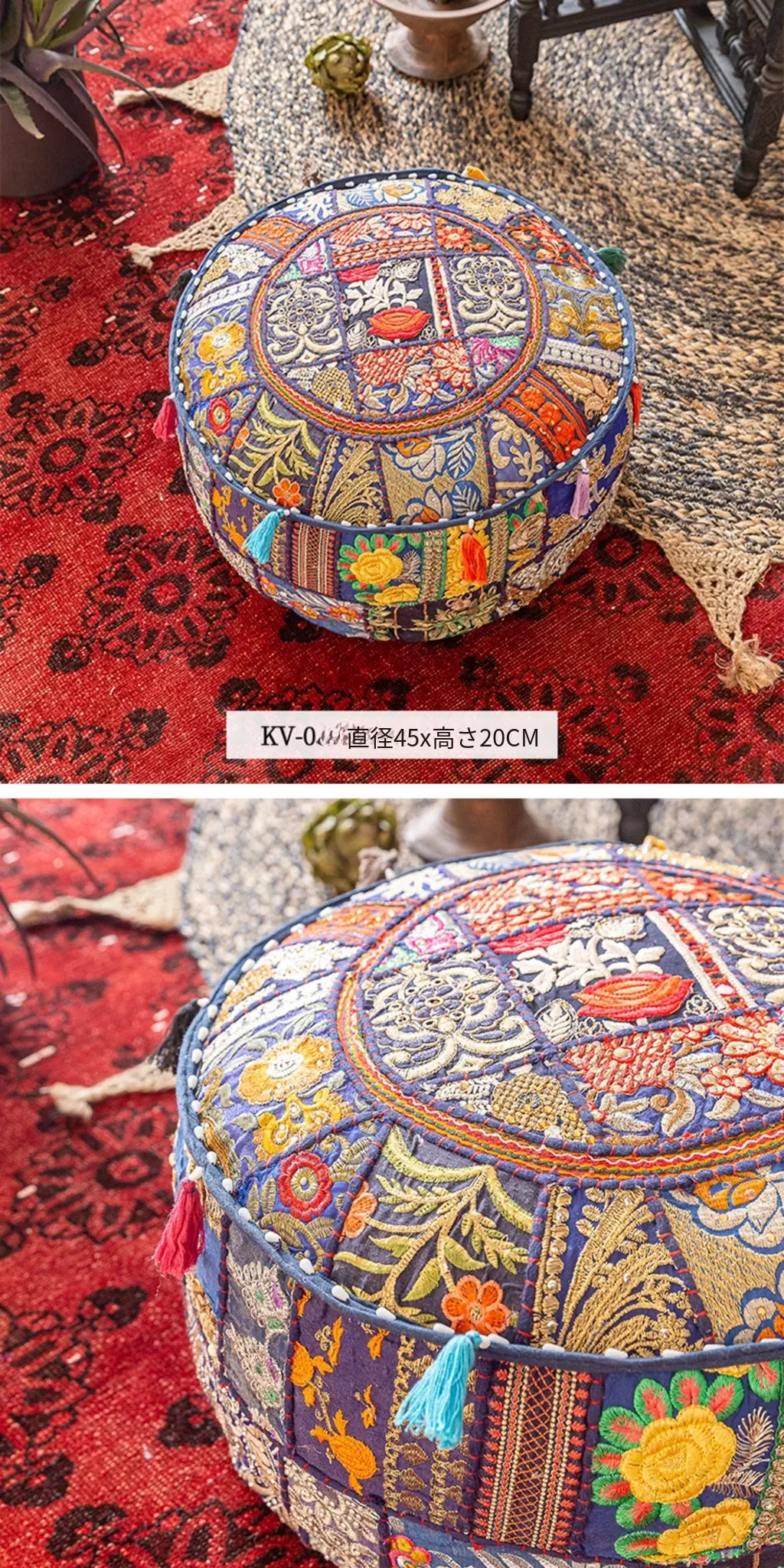 ビジュアルテイストの輸入手作り刺繍クッション、アメリカン民族風デザイン!タタミスタイルの座布団で、リビングやバルコニー、窓辺にぴったりのインテリアアイテムです。快適さとスタイルを両立させたおしゃれな一品をお見逃しなく!