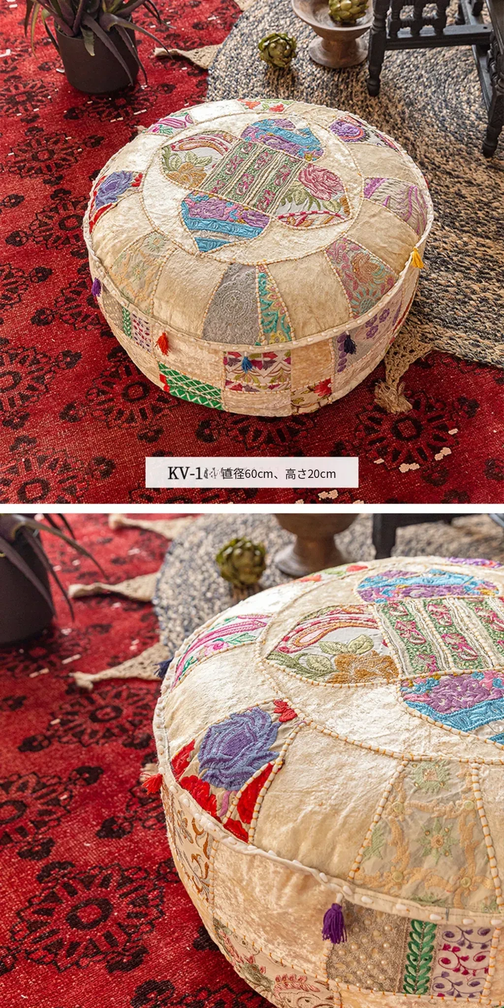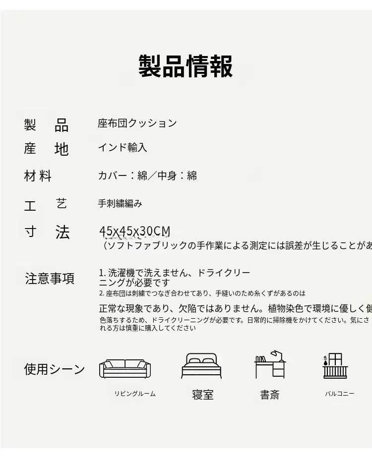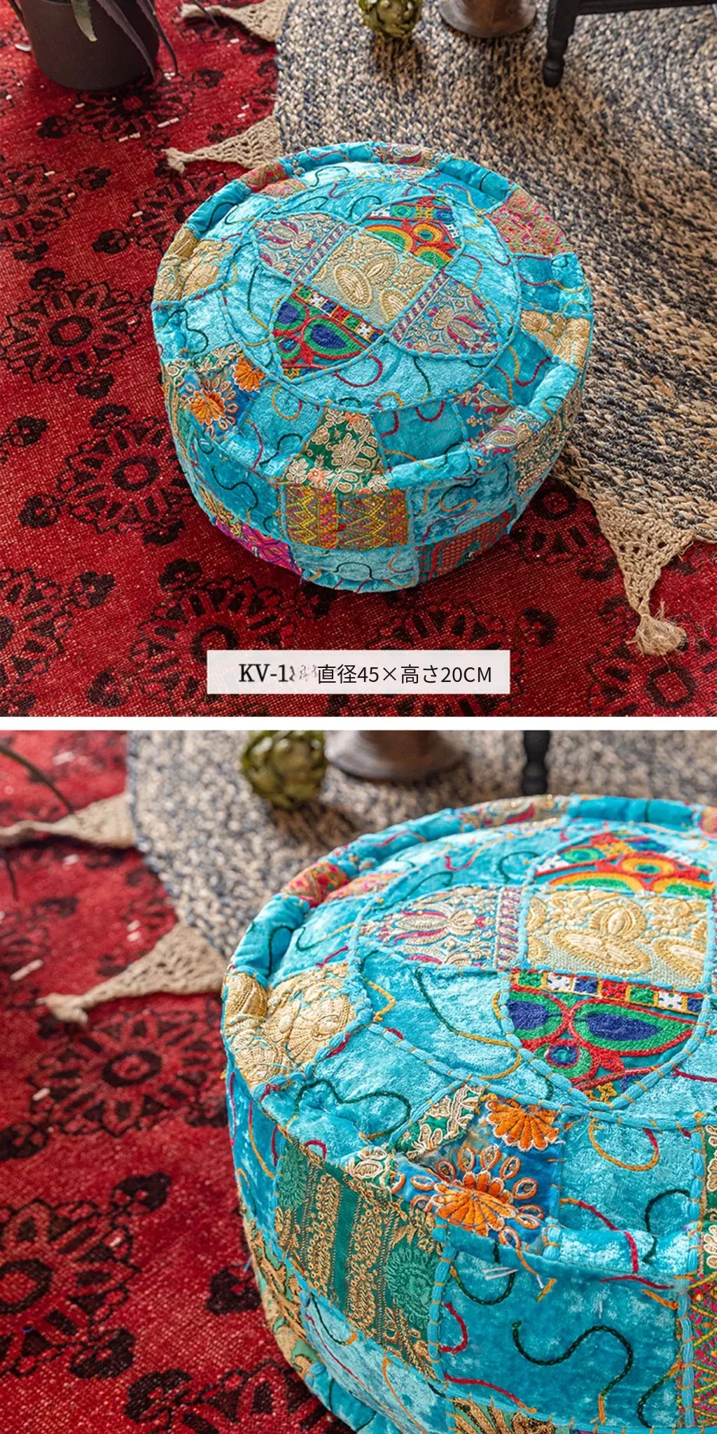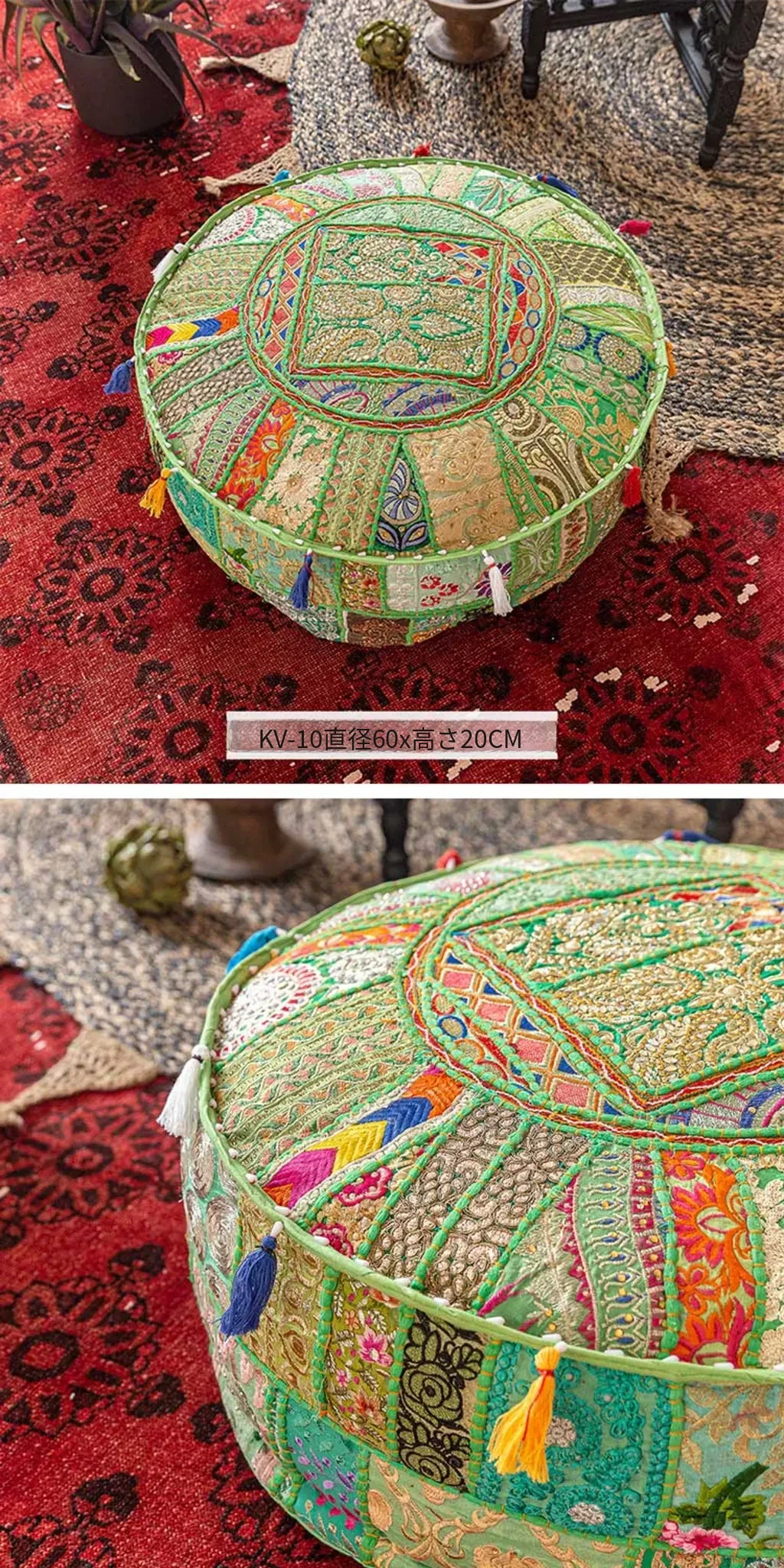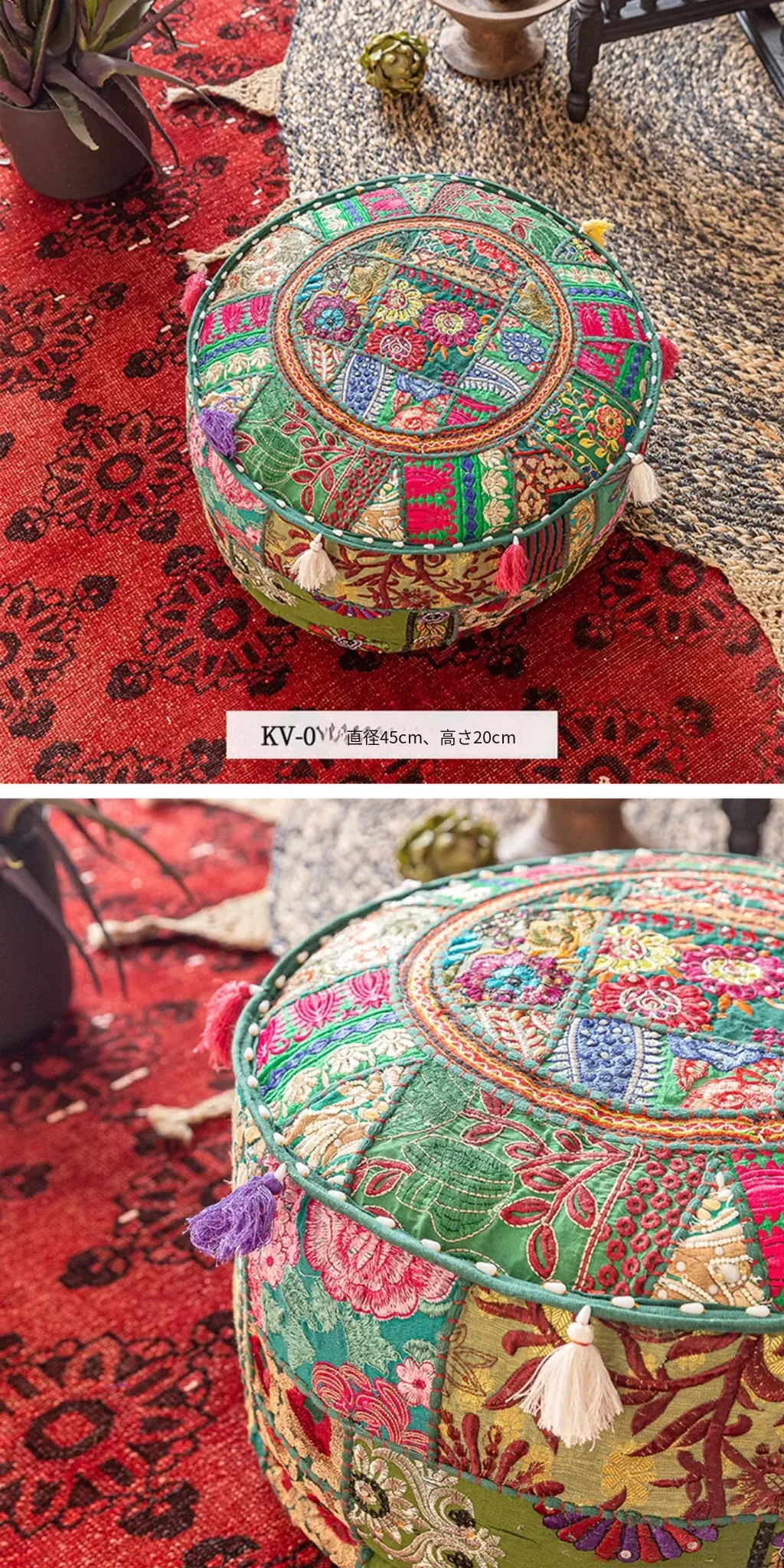 ビジュアルテイストの輸入手作り刺繍クッション、アメリカン民族風デザイン!タタミスタイルの座布団で、リビングやバルコニー、窓辺にぴったりのインテリアアイテムです。快適さとスタイルを両立させたおしゃれな一品をお見逃しなく!