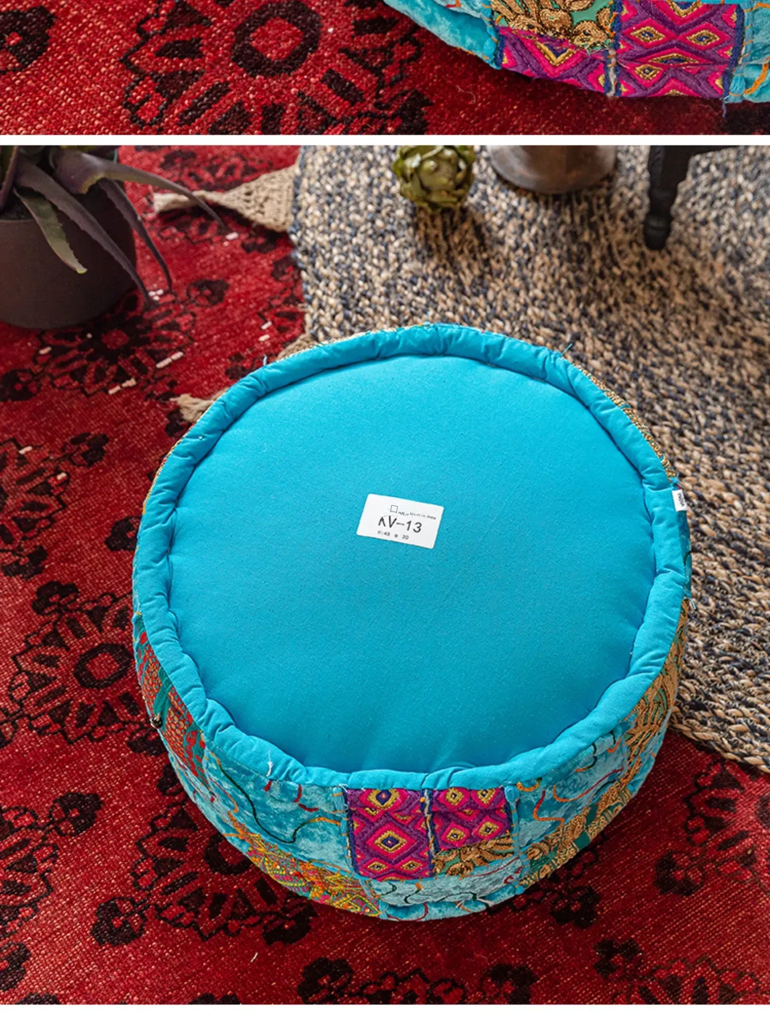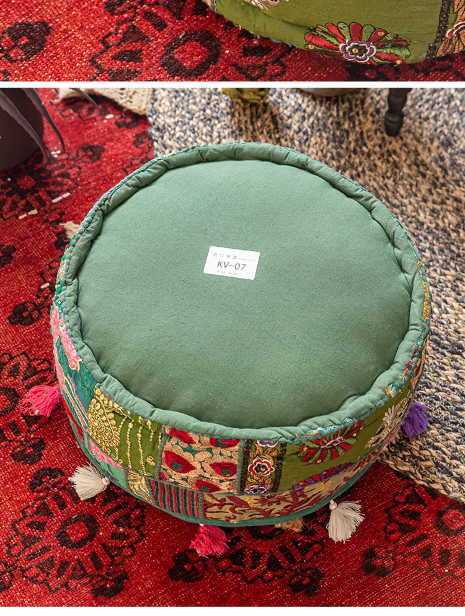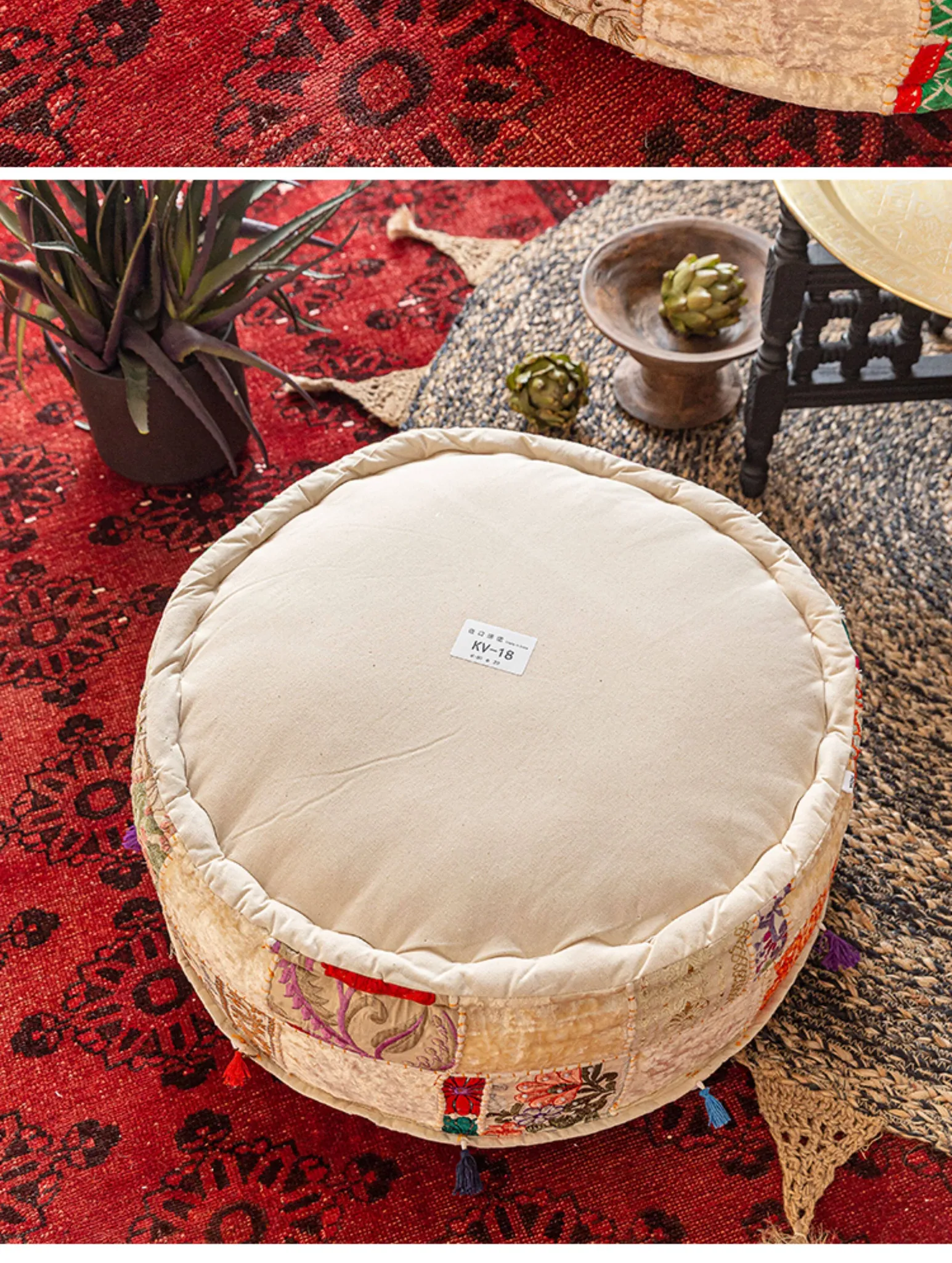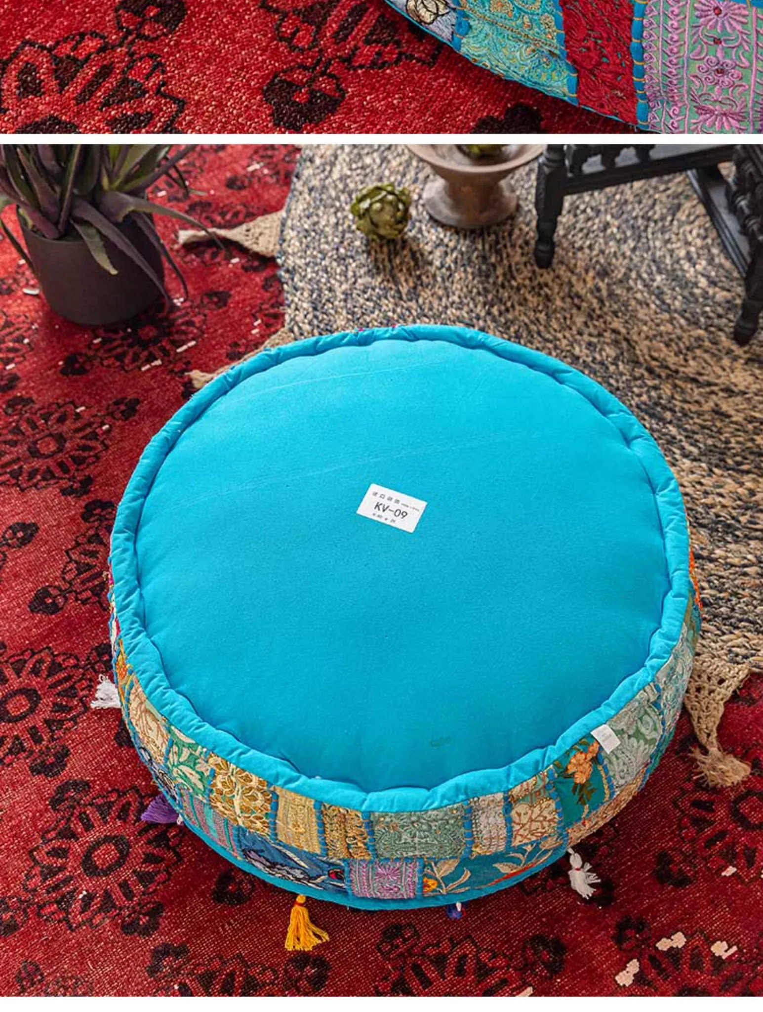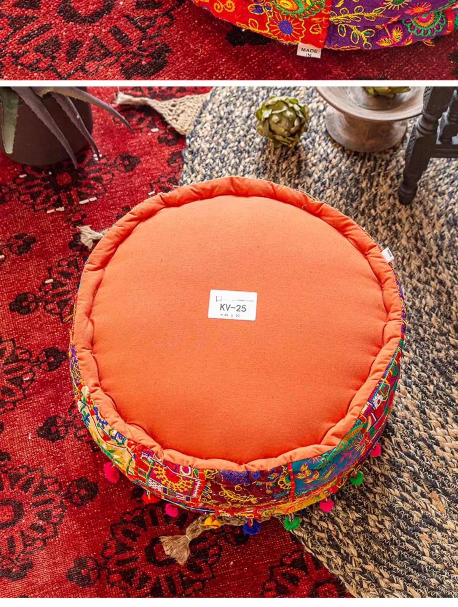 ビジュアルテイストの輸入手作り刺繍クッション、アメリカン民族風デザイン!タタミスタイルの座布団で、リビングやバルコニー、窓辺にぴったりのインテリアアイテムです。快適さとスタイルを両立させたおしゃれな一品をお見逃しなく!