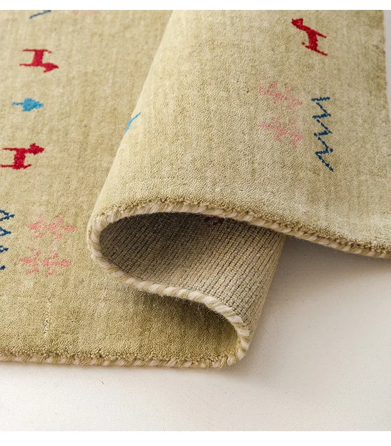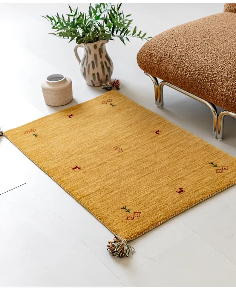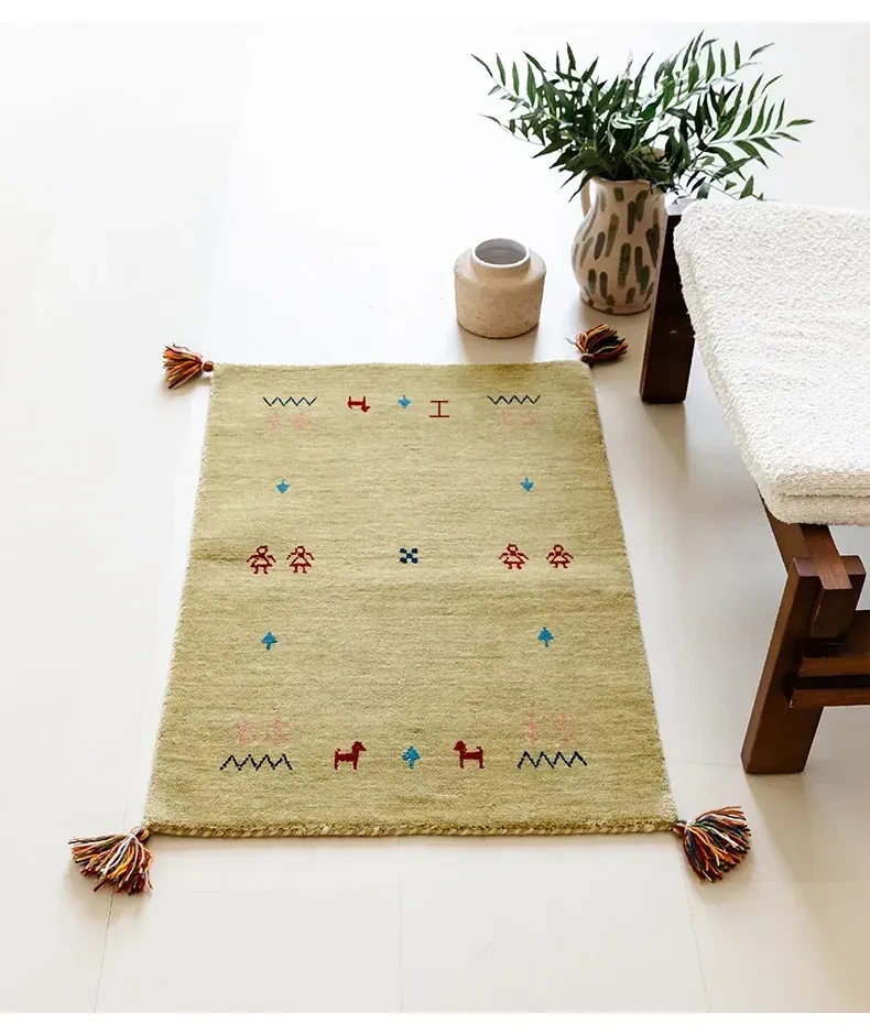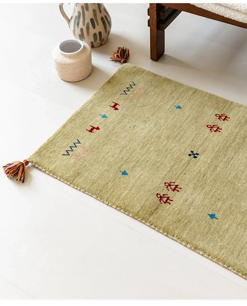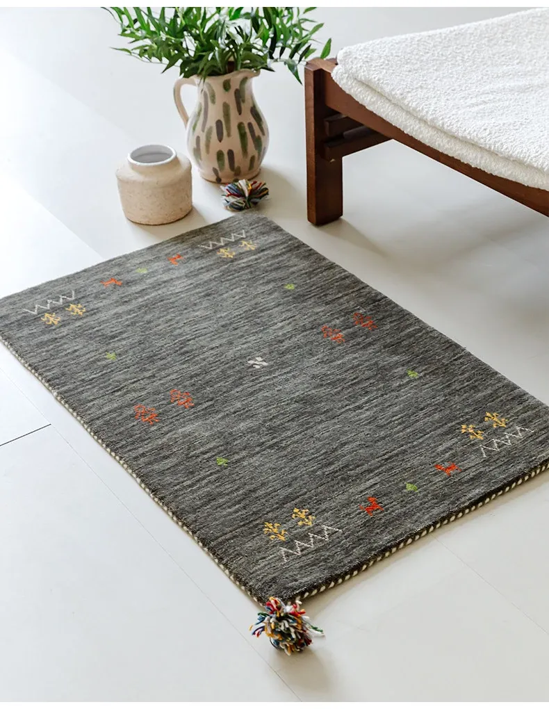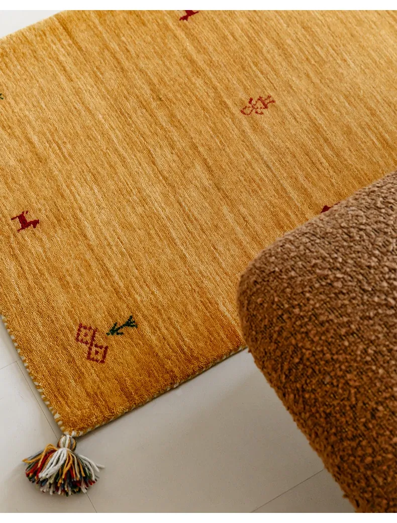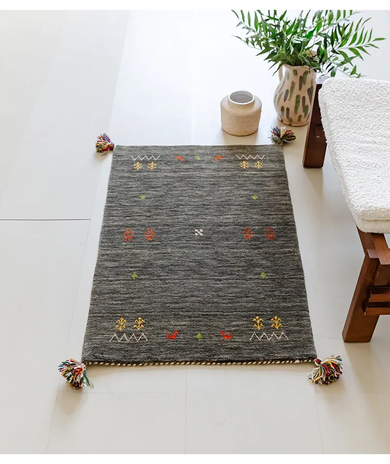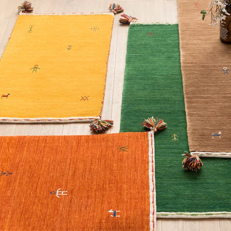 視覚と味覚の融合!インド直輸入のシンプルな手作りウールGabbehラグ。上品なファジー仕上げで、リビングやベッドルームにぴったりのティーテーブルマット。おしゃれな空間を演出します!