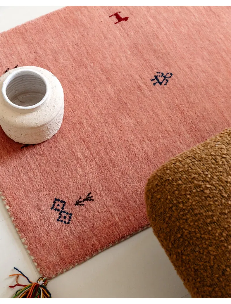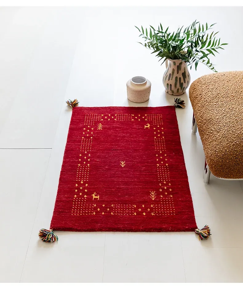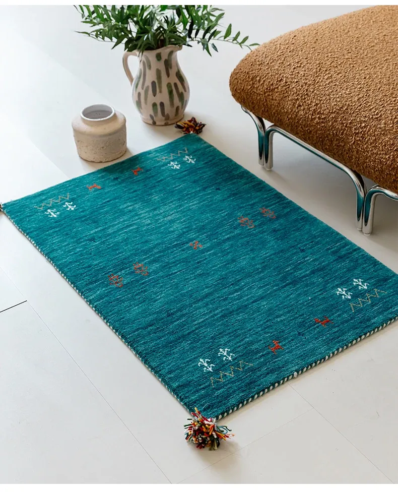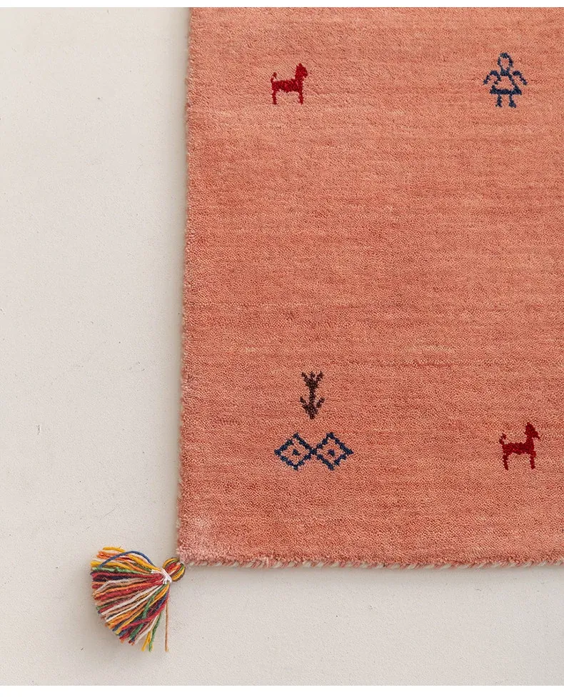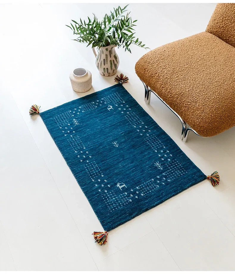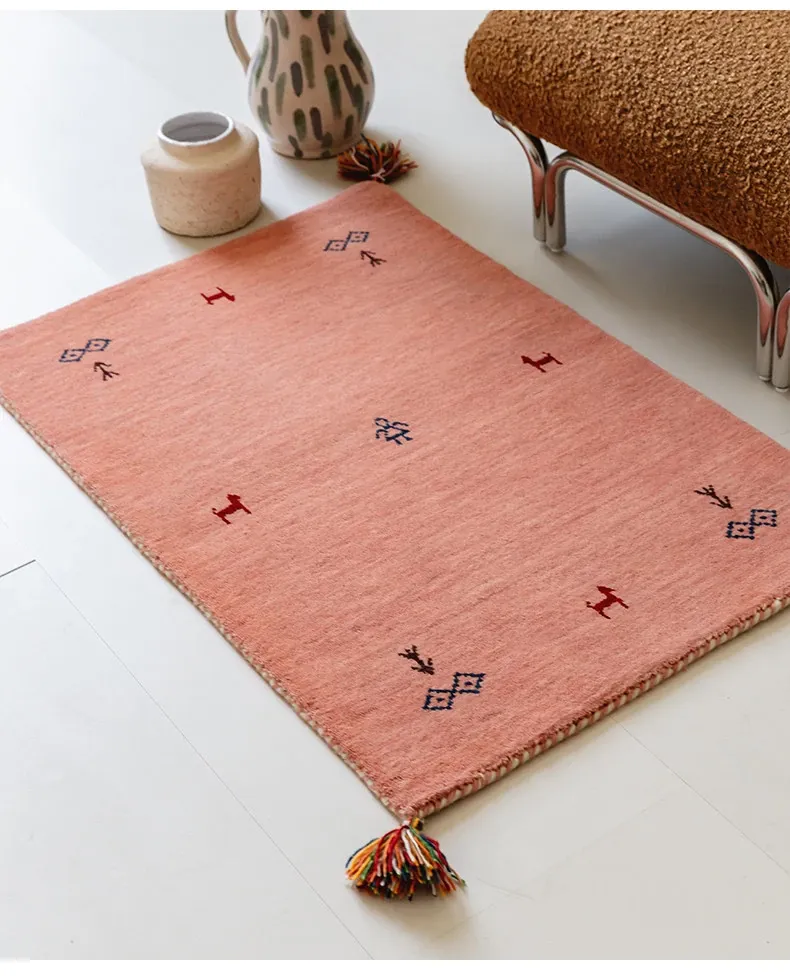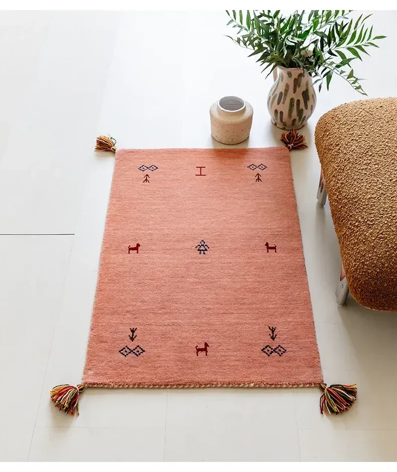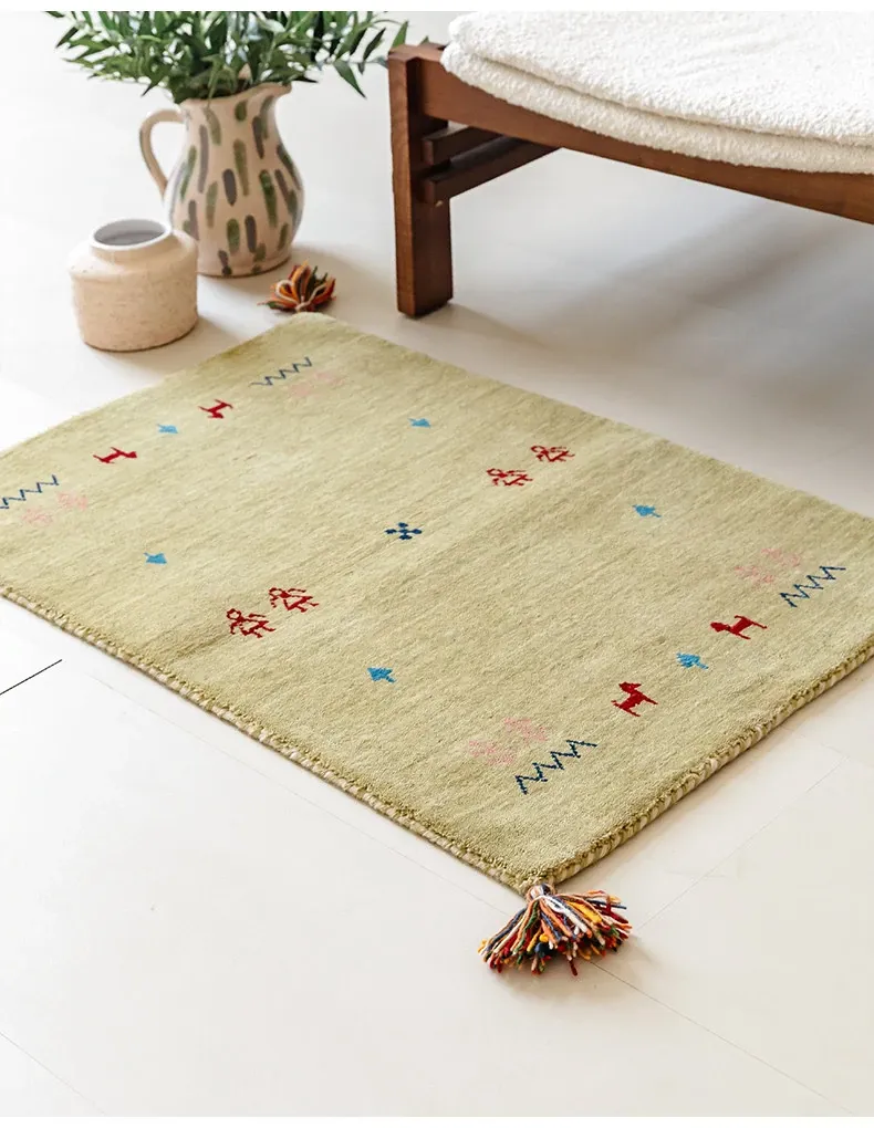 視覚と味覚の融合!インド直輸入のシンプルな手作りウールGabbehラグ。上品なファジー仕上げで、リビングやベッドルームにぴったりのティーテーブルマット。おしゃれな空間を演出します!