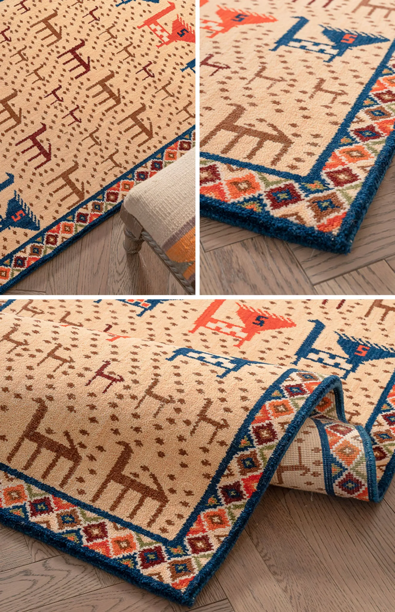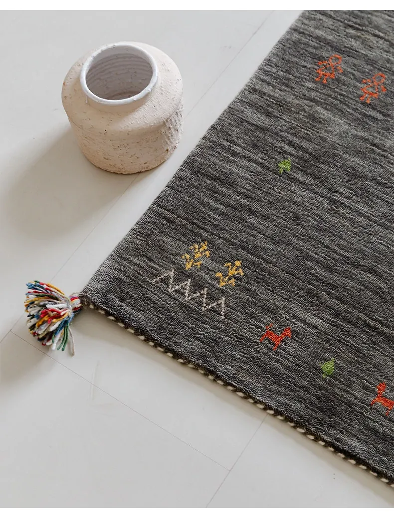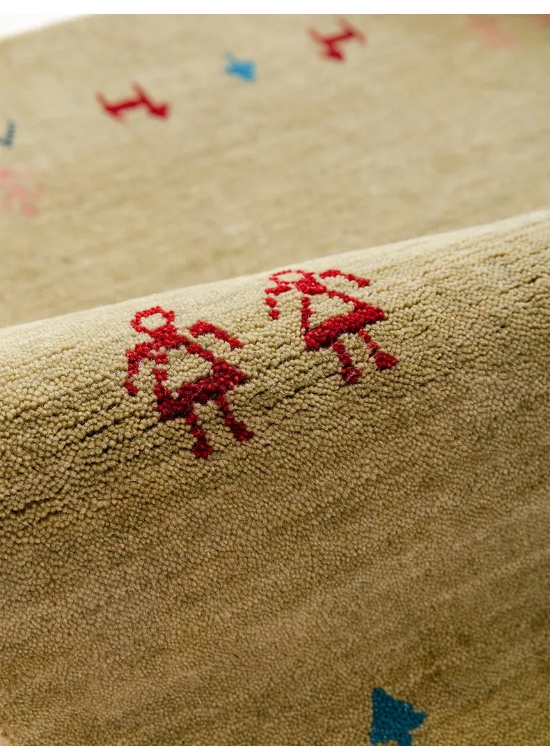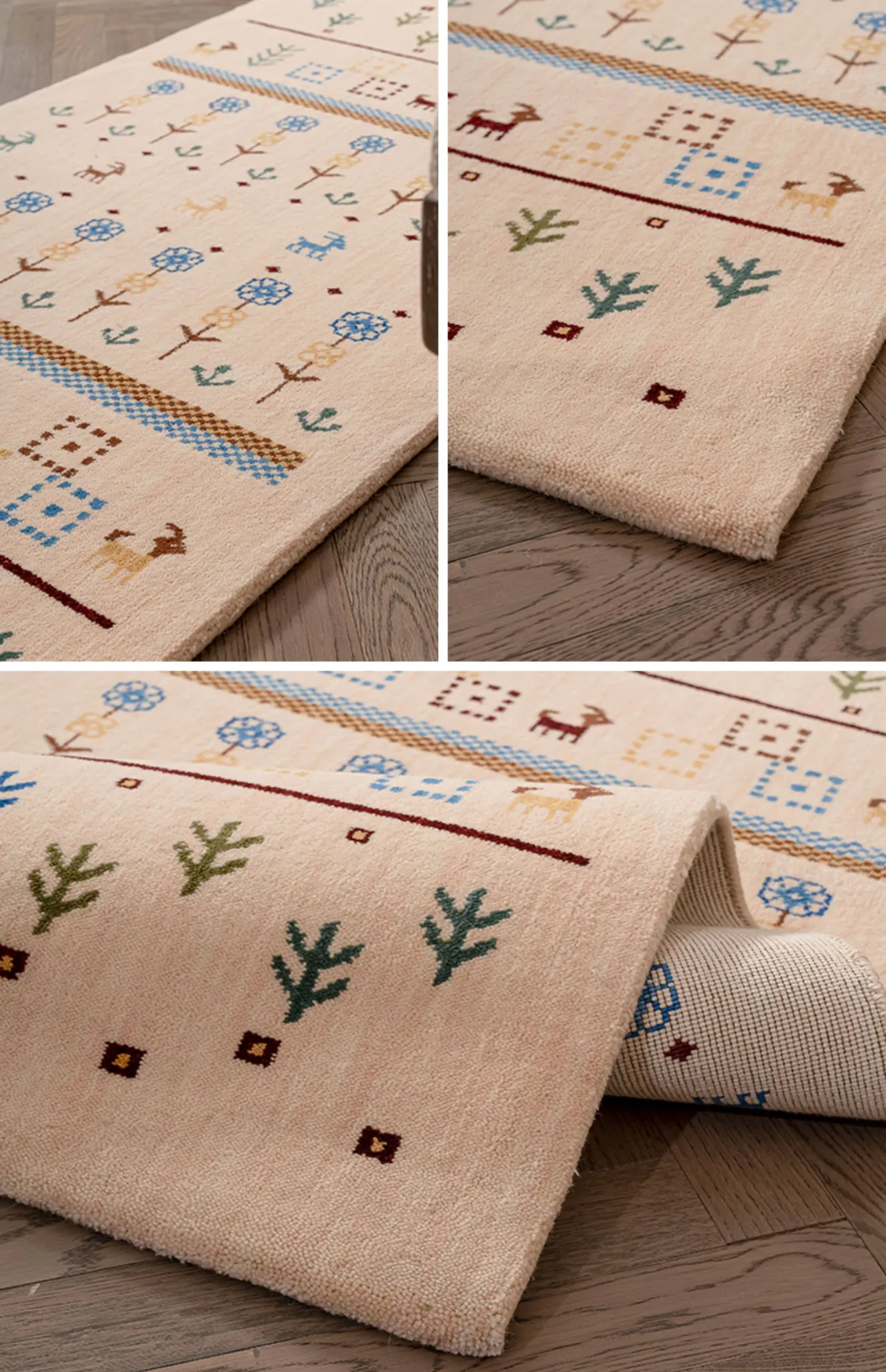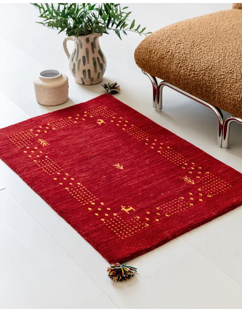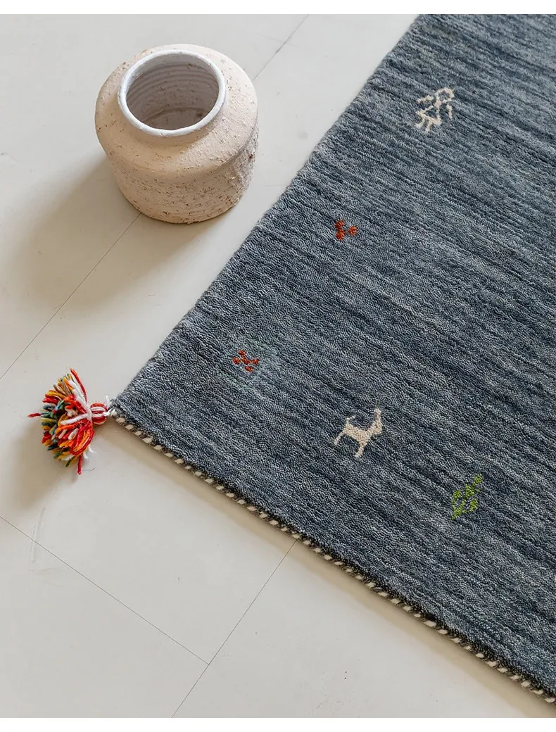 視覚と味覚の融合!インド直輸入のシンプルな手作りウールGabbehラグ。上品なファジー仕上げで、リビングやベッドルームにぴったりのティーテーブルマット。おしゃれな空間を演出します!