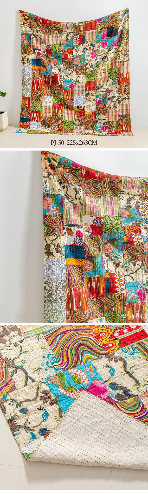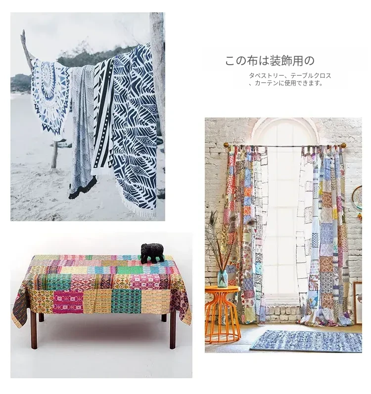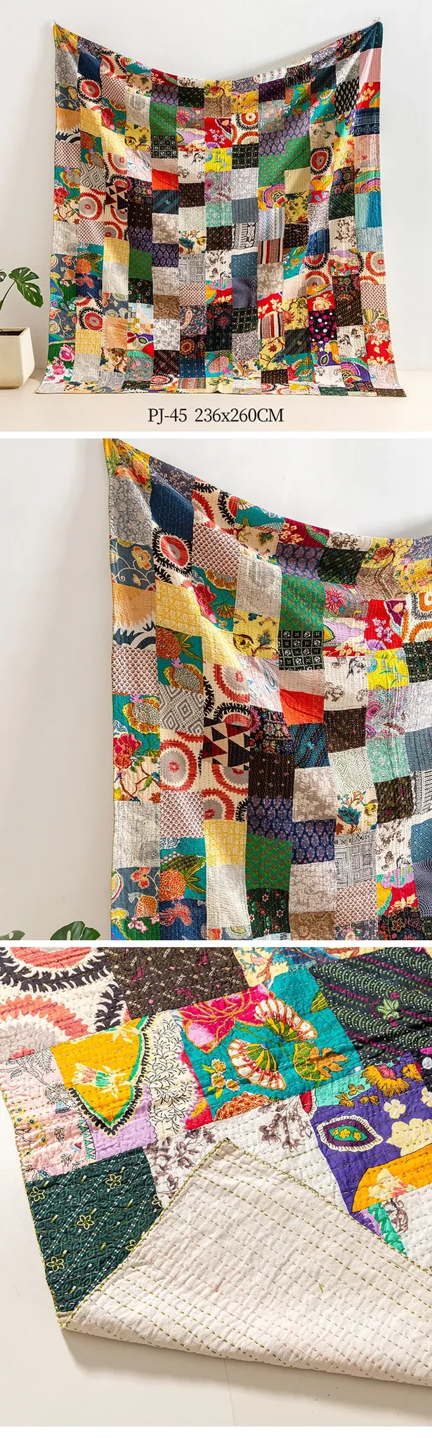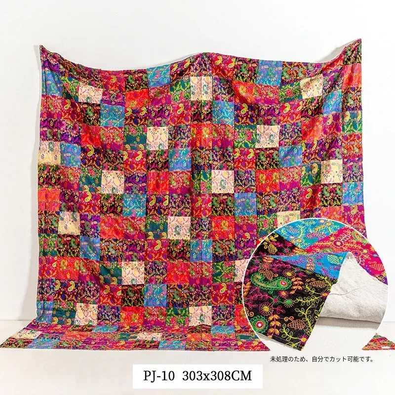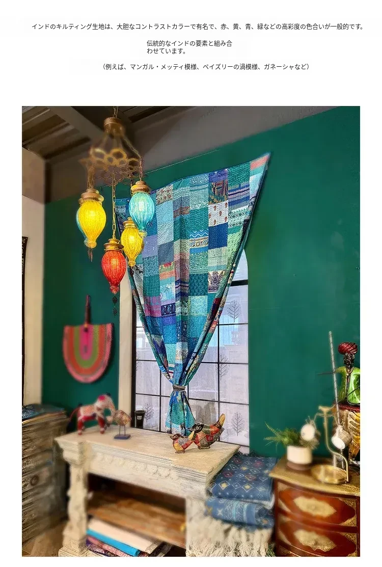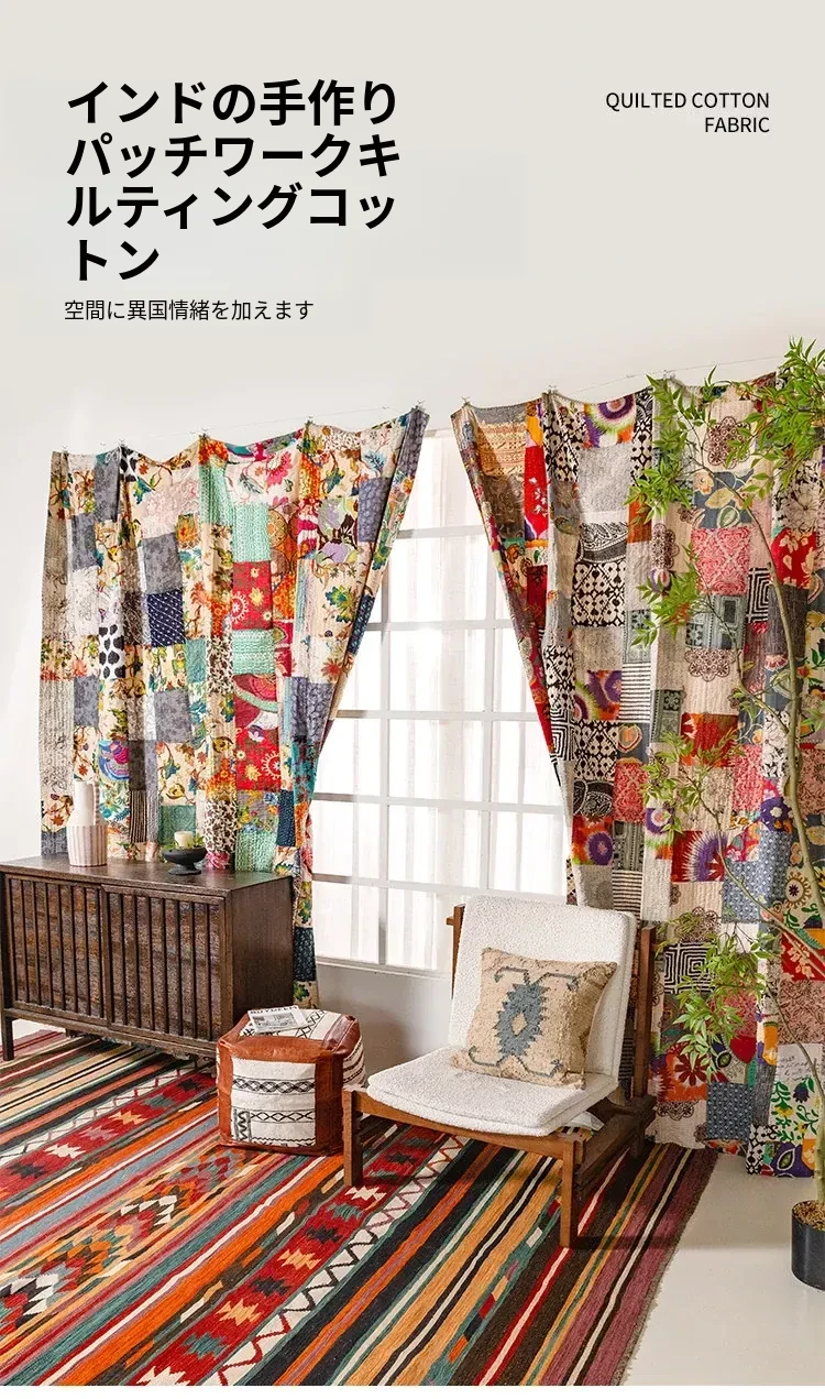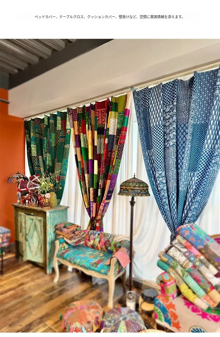 インド製手作りパッチワークキルトカバー - DIYカーテン、クッション、民族風ファッション、テーブルクロス、ソファカバーに最適!あなたの空間を華やかに彩るアイテムです。
