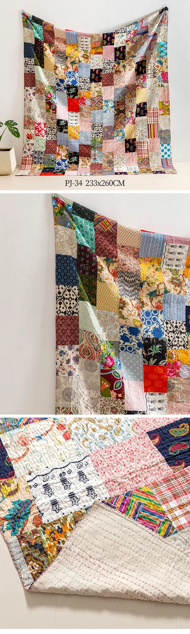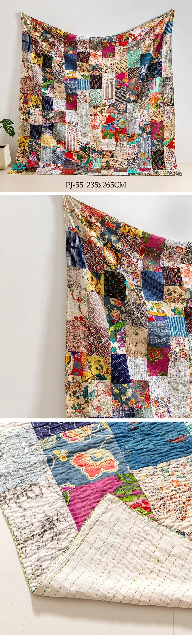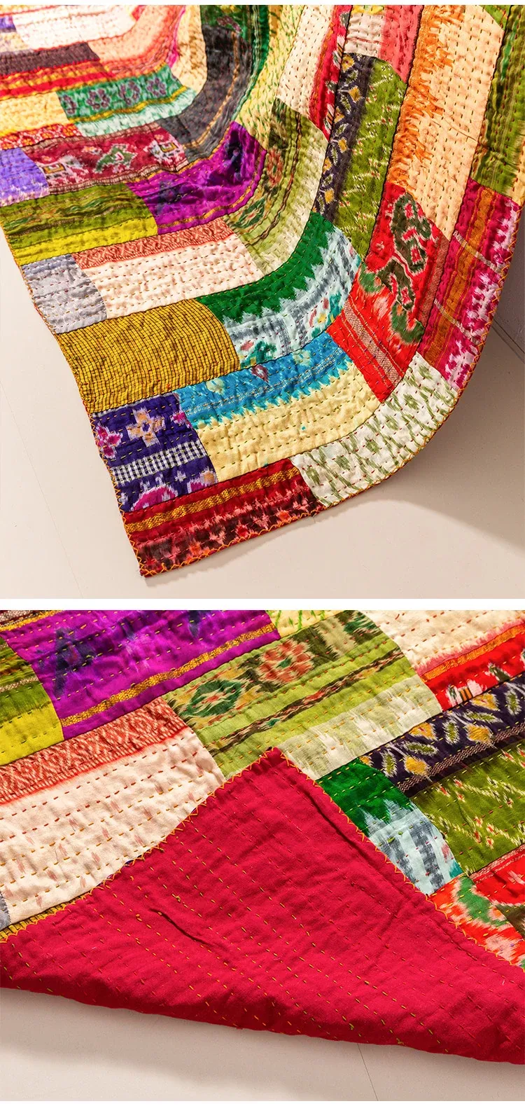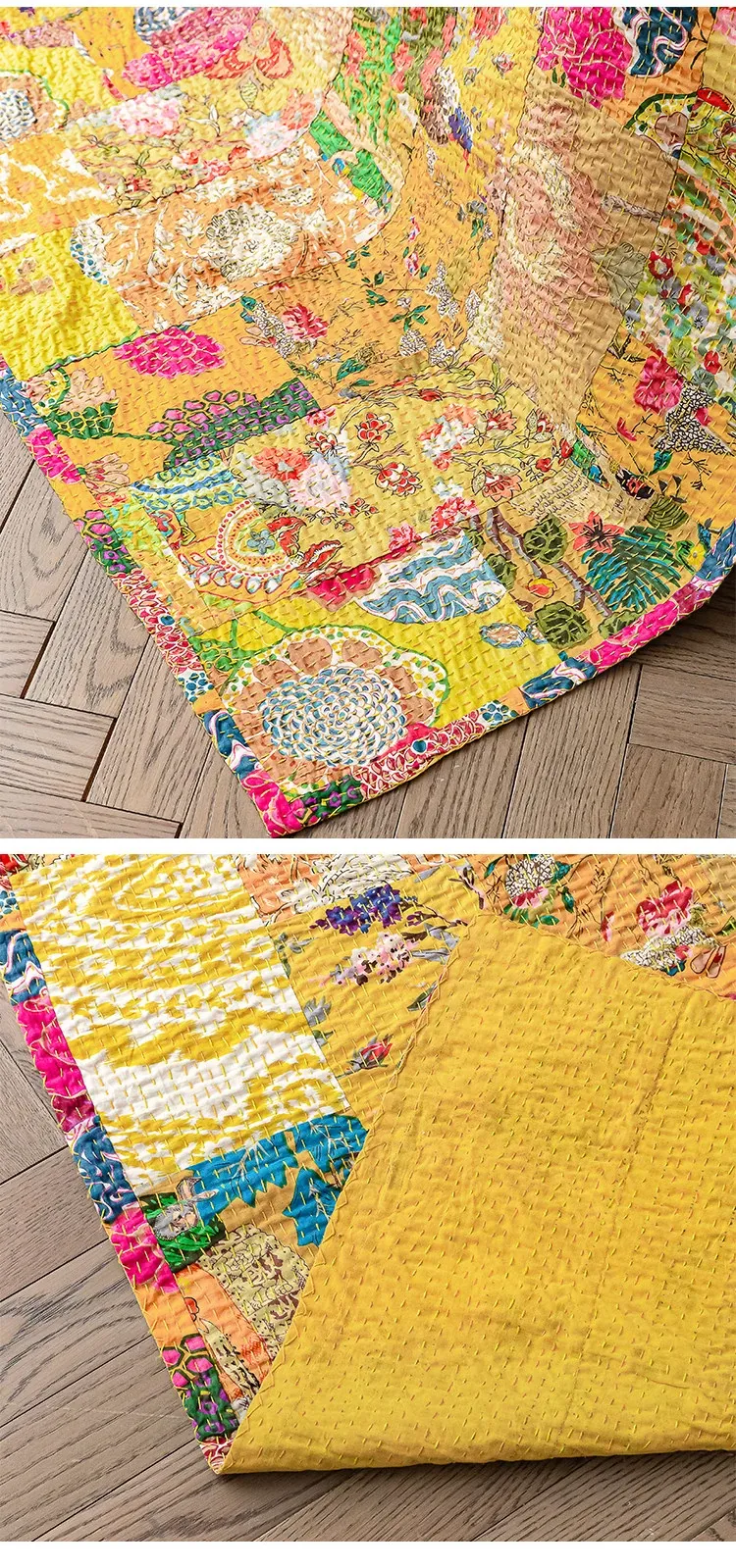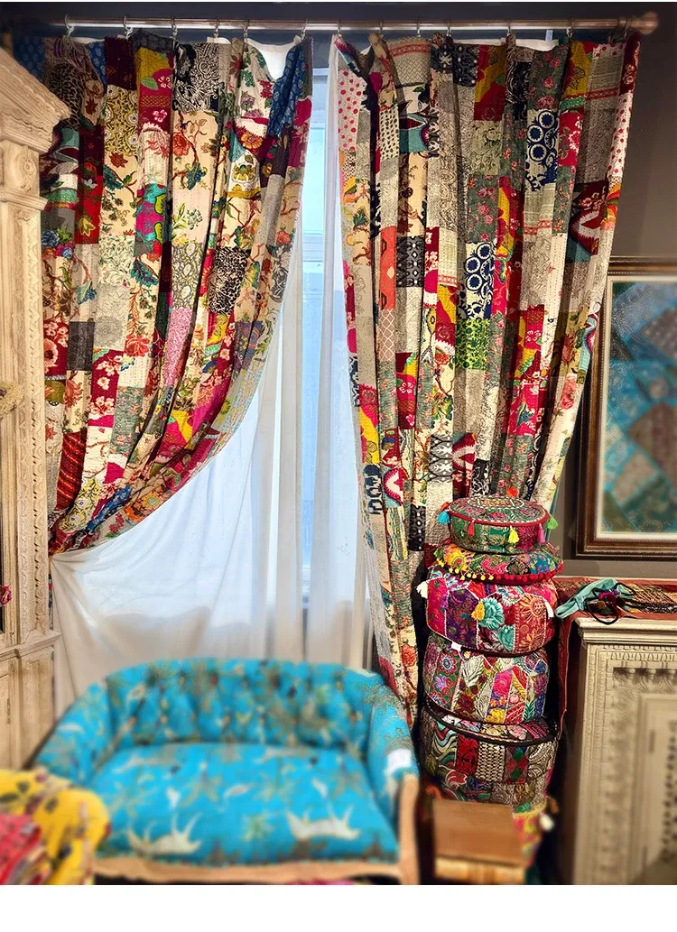 インド製手作りパッチワークキルトカバー - DIYカーテン、クッション、民族風ファッション、テーブルクロス、ソファカバーに最適!あなたの空間を華やかに彩るアイテムです。